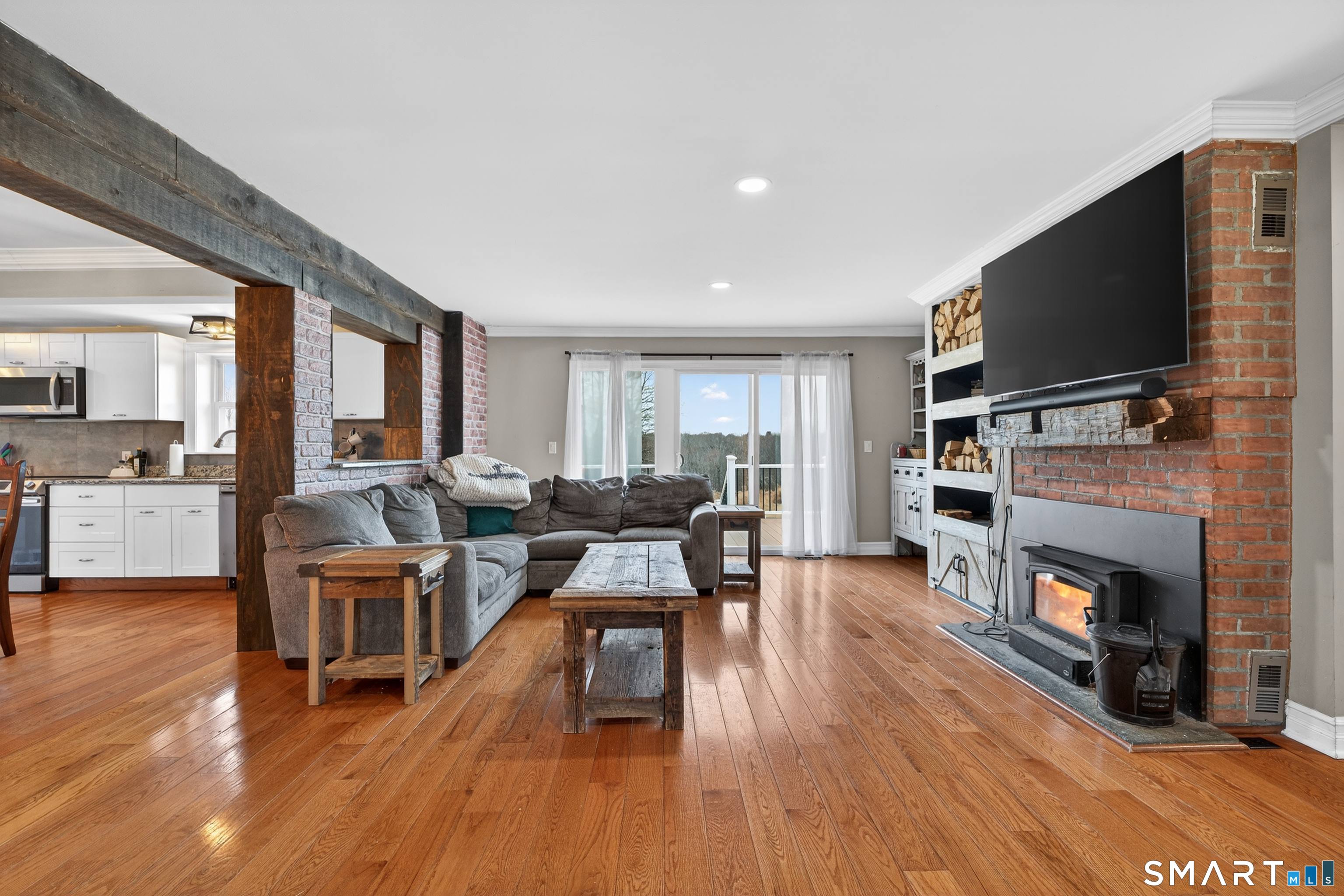 Welcome to this beautifully updated 3-4 bedroom, 2-bath ranch nestled in the heart of Litchfield County's peaceful countryside. Set on nearly 5 cleared acres, this property offers the perfect blend of comfort, space, and rural charm. Step inside to an inviting open floor plan featuring gleaming hardwood floors and abundant natural light throughout. The spacious living area is anchored by a cozy wood stove, creating a warm and welcoming atmosphere ideal for relaxing or entertaining. The flexible layout allows for 3 to 4 bedrooms, perfect for accommodating guests, a home office, or growing needs. The home also includes an attached 2-car garage for convenience, along with a newer roof (2022) outfitted with solar panels for energy efficiency and long-term savings. Outside, the property truly shines. A brand-new barn offers endless possibilities, whether you're looking to create a horse property, hobby farm, or simply enjoy extra storage or workspace. The open land is ideal for animals or agriculture-just add fencing to bring your vision to life. Enjoy the tranquility of country living while still being within reach of local amenities. This is a rare opportunity to own a versatile property with modern updates and wide-open potential. Don't miss your chance to make this special property your own.
