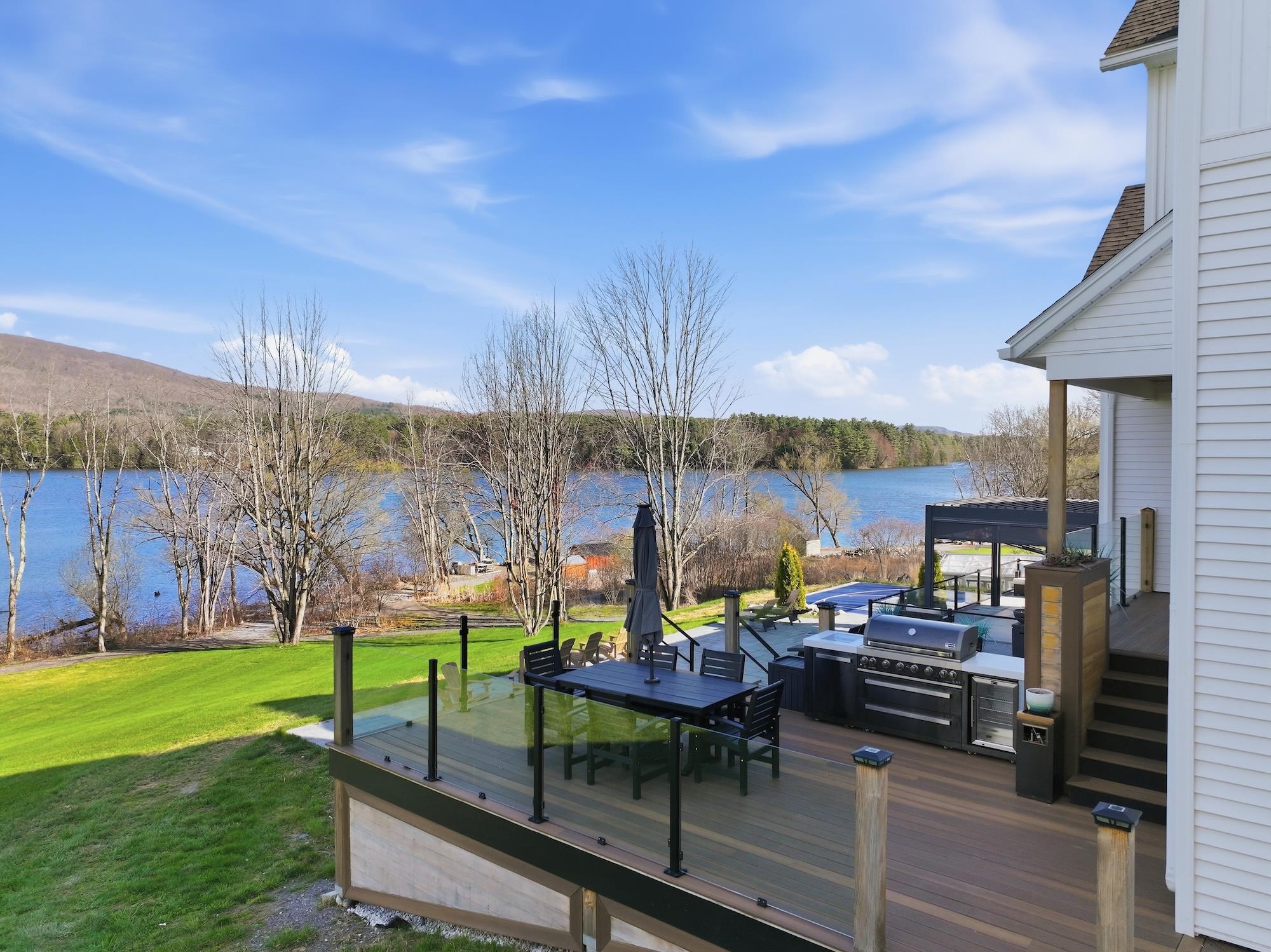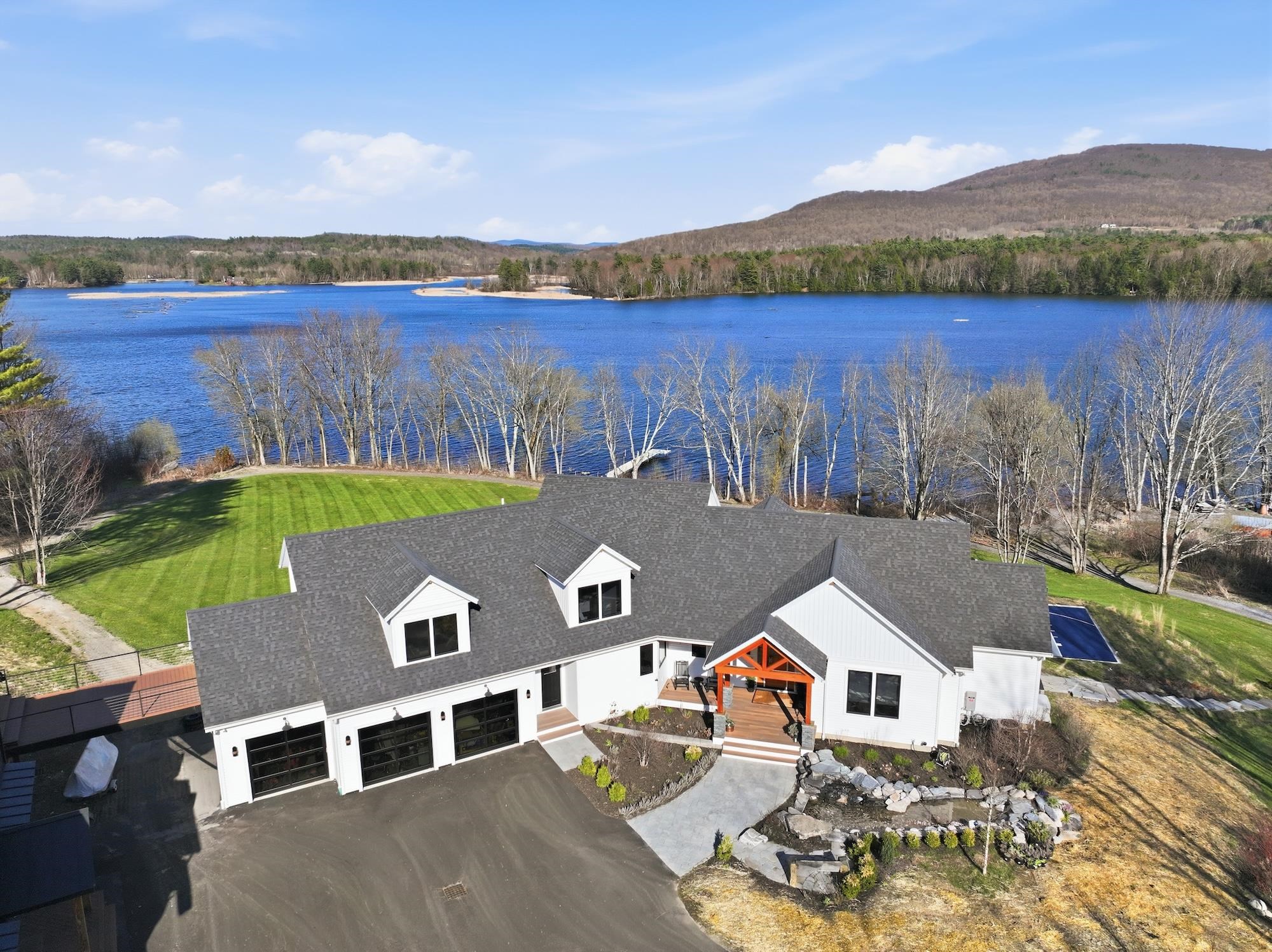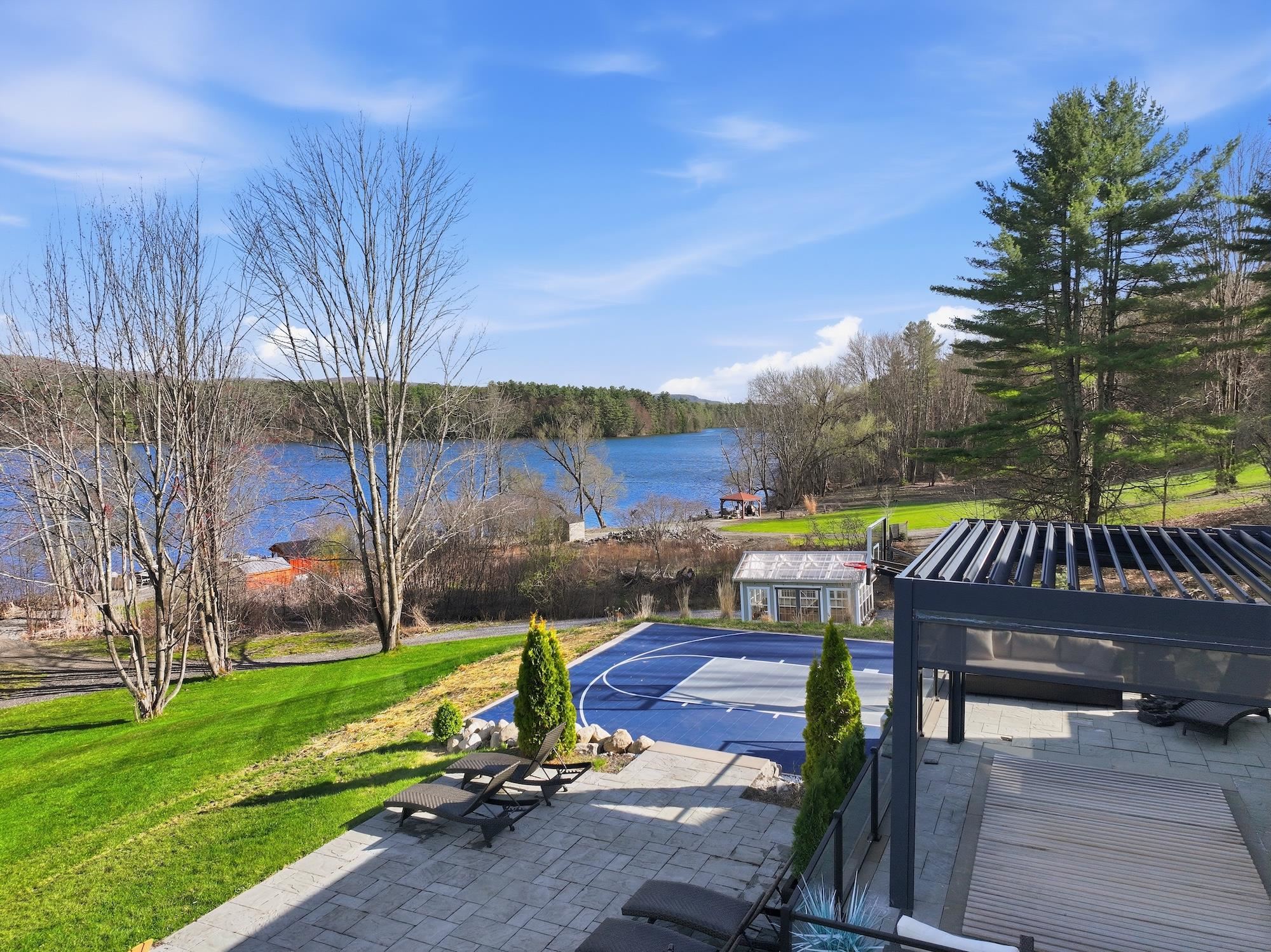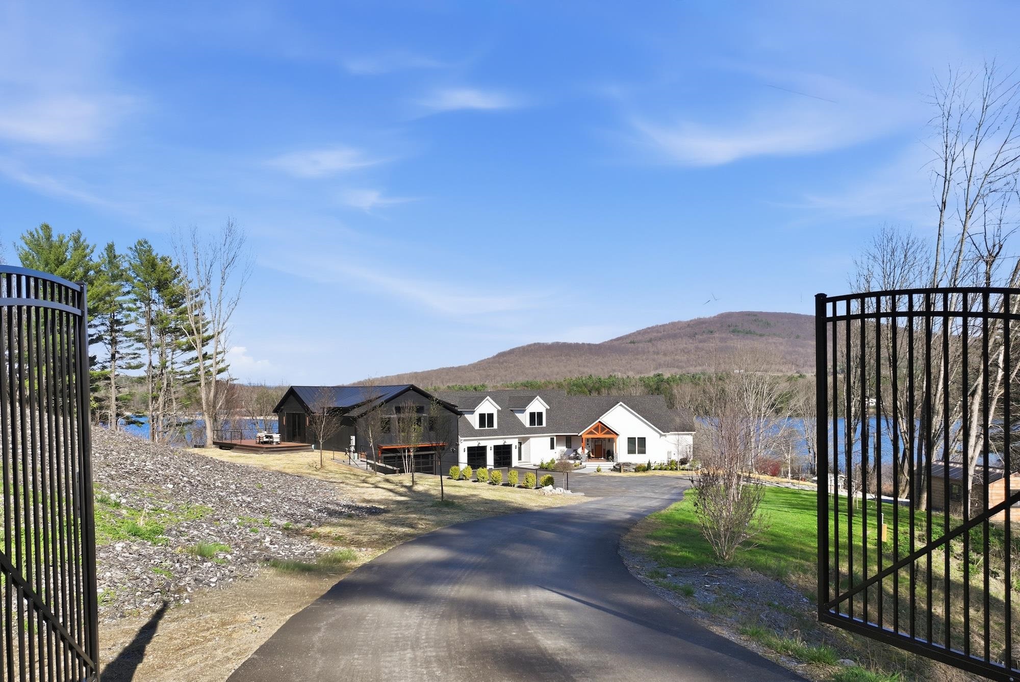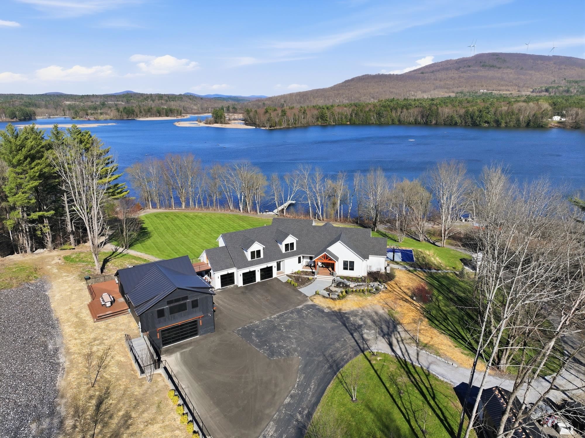 Set along the peaceful shores of Lake Arrowhead in Milton, Vermont, this exceptional lakefront property offers a rare combination of privacy, craftsmanship, and modern convenience—just minutes from everyday amenities while feeling tucked away in a serene setting. This three-bedroom, three-and-a-half-bathroom, custom-built modern farmhouse features approximately 200 feet of shoreline, sweeping water views, and thoughtfully landscaped grounds with apple trees, walking paths, hydrangea-lined lakefront, and expansive 1, 500 sq ft stone patios designed for both comfortable living and entertaining. Inside, the home showcases handcrafted Amish-built cabinetry throughout, a double chef’s kitchen with premium appliances including a Dacor Modernist 48” range and dual refrigerators, and a spacious living and dining area highlighted by timberframe ceilings. The primary suite includes a walk-down closet of 485 square foot, a spa-inspired bath with jetted chromatherapy tub, steam shower with multiple body jets and rain heads, and a private flex space suitable for an office or a fourth bedroom space. A detached 1, 100 square foot executive office and theatre space is connected by a catwalk and includes three additional garages, a gym space and workshop. No detail is missed in this home's advanced smart technology, with a whole-home generator, Tesla Powerwalls, air and water purification systems, and a 90-head irrigation system with mosquito control. Additional features include a library, basement recreation space with custom loft and foam pit, greenhouse, and a dock with power and water. Outdoor living centers around a year-round saltwater pool with automated systems, a custom pergola with powered louvers, lighting, and screens, plus a high-end sport court and gated driveway. Convenient to I-89 yet offering a tranquil lakefront setting, this thoughtfully designed property showcases a wide range of unique features and quality finishes, with additional details available upon request.