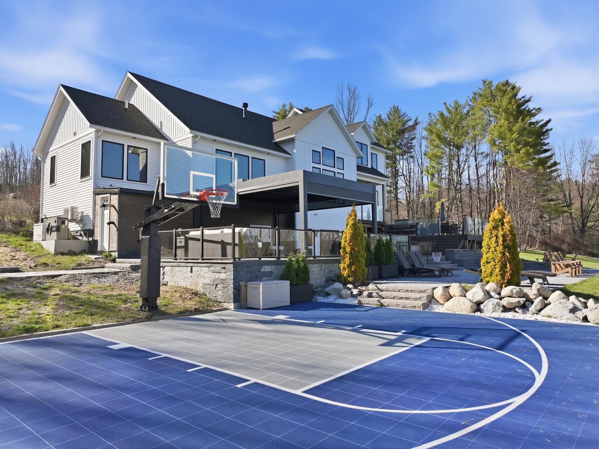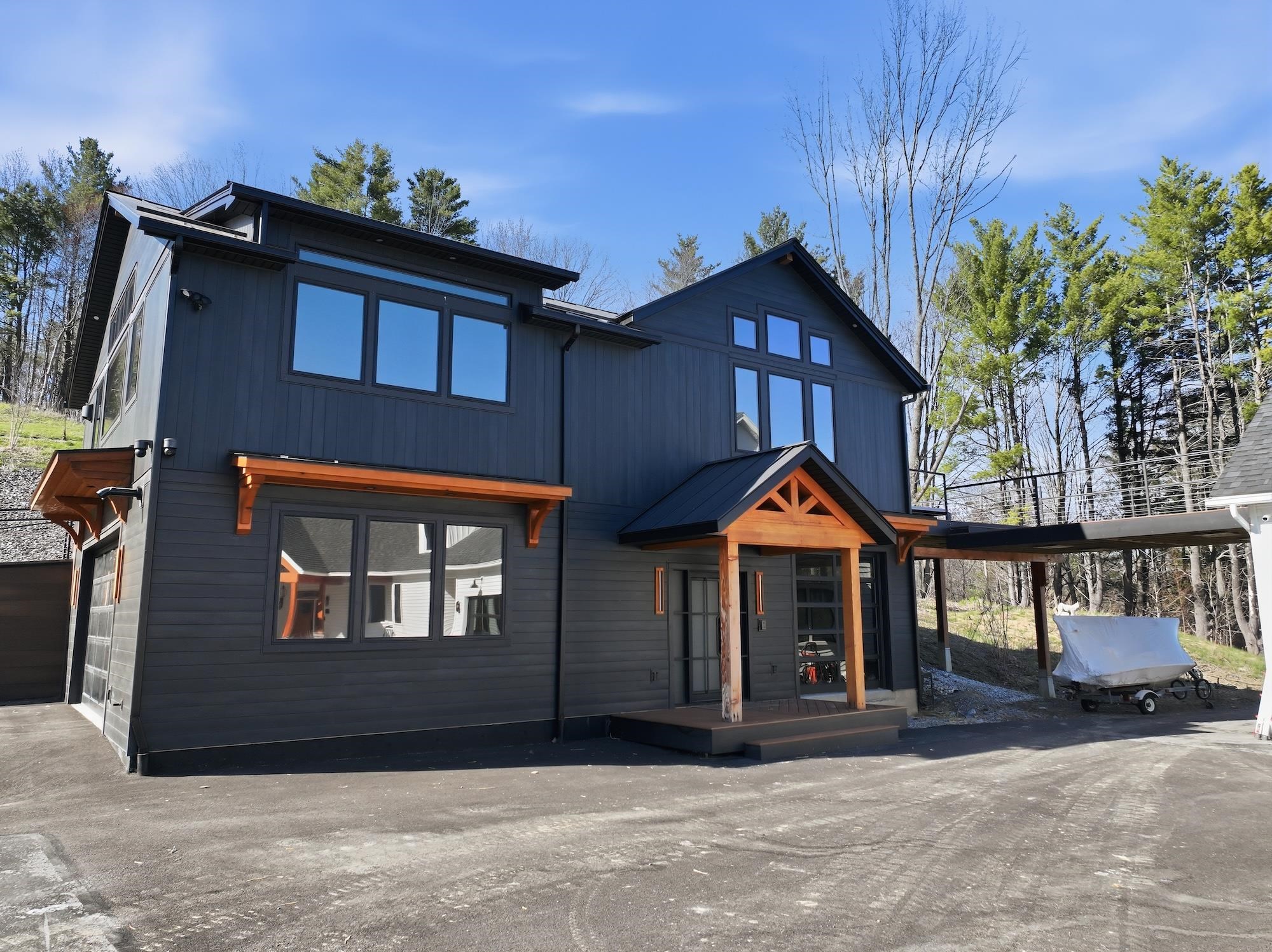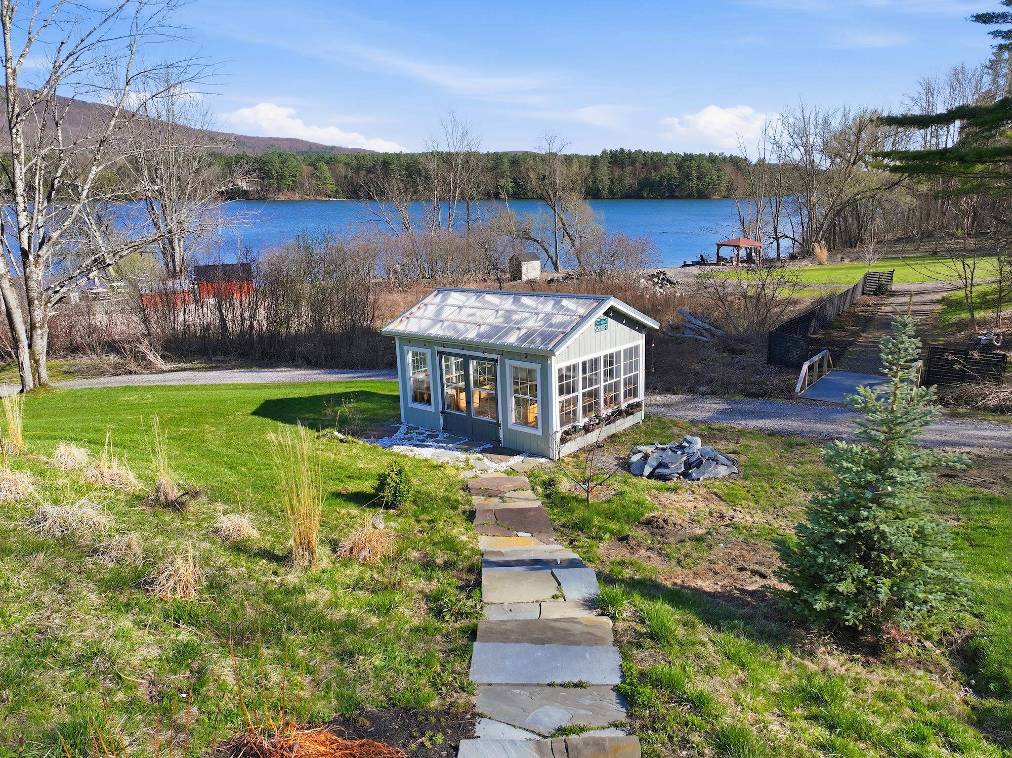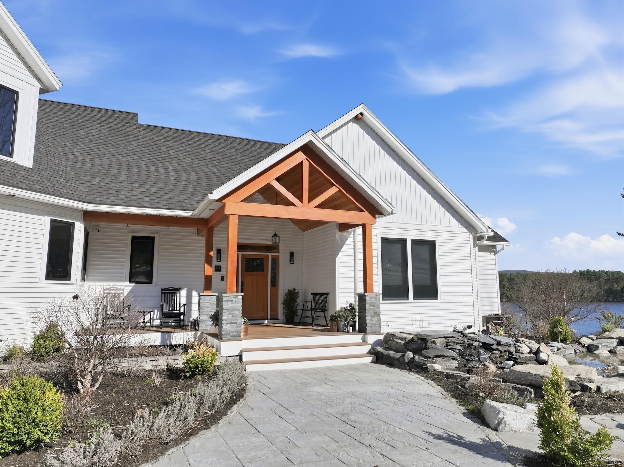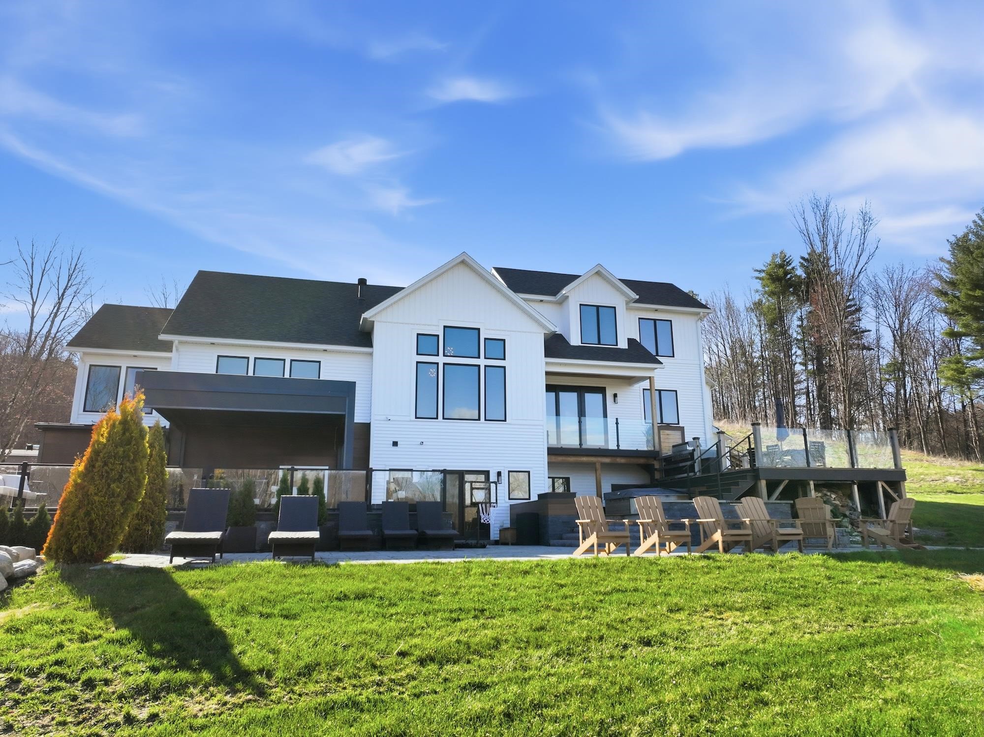 Set along the peaceful shores of Lake Arrowhead in Milton, Vermont, this exceptional lakefront property offers a rare combination of privacy, craftsmanship, and modern convenience—just minutes from everyday amenities while feeling tucked away in a serene setting. This three-bedroom, three-and-a-half-bathroom, custom-built modern farmhouse features approximately 200 feet of shoreline, sweeping water views, and thoughtfully landscaped grounds with apple trees, walking paths, hydrangea-lined lakefront, and expansive 1, 500 sq ft stone patios designed for both comfortable living and entertaining. Inside, the home showcases handcrafted Amish-built cabinetry throughout, a double chef’s kitchen with premium appliances including a Dacor Modernist 48” range and dual refrigerators, and a spacious living and dining area highlighted by timberframe ceilings. The primary suite includes a walk-down closet of 485 square foot, a spa-inspired bath with jetted chromatherapy tub, steam shower with multiple body jets and rain heads, and a private flex space suitable for an office or a fourth bedroom space. A detached 1, 100 square foot executive office and theatre space is connected by a catwalk and includes three additional garages, a gym space and workshop. No detail is missed in this home's advanced smart technology, with a whole-home generator, Tesla Powerwalls, air and water purification systems, and a 90-head irrigation system with mosquito control. Additional features include a library, basement recreation space with custom loft and foam pit, greenhouse, and a dock with power and water. Outdoor living centers around a year-round saltwater pool with automated systems, a custom pergola with powered louvers, lighting, and screens, plus a high-end sport court and gated driveway. Convenient to I-89 yet offering a tranquil lakefront setting, this thoughtfully designed property showcases a wide range of unique features and quality finishes, with additional details available upon request.