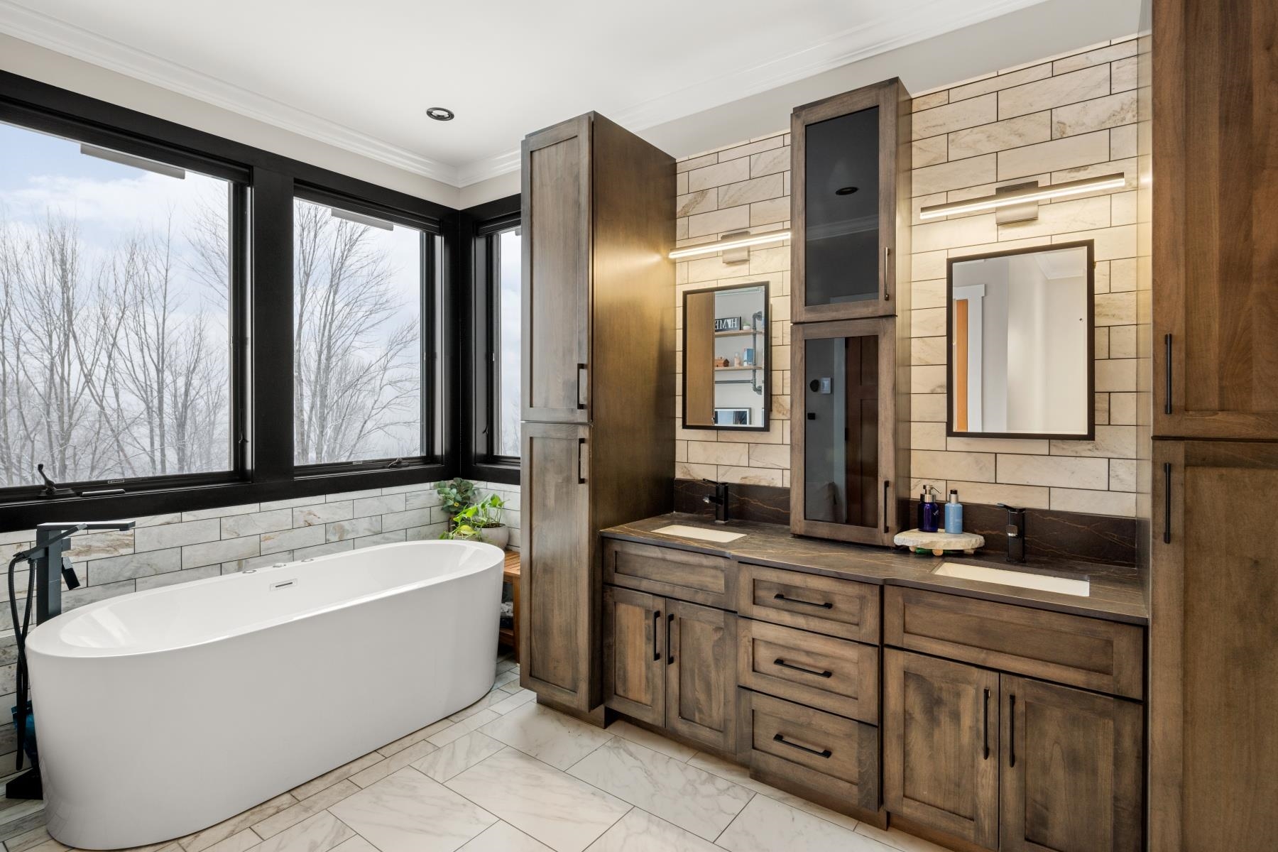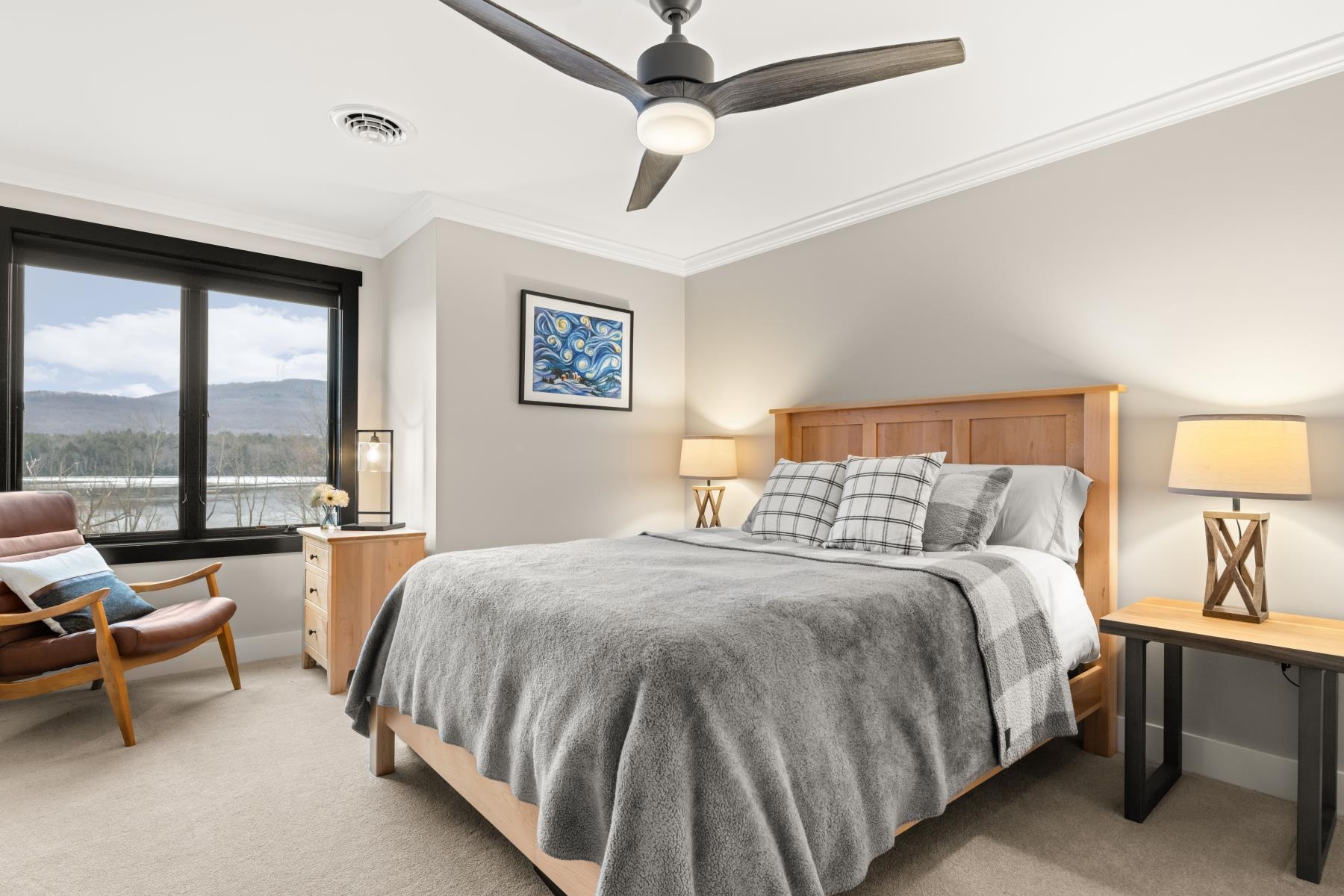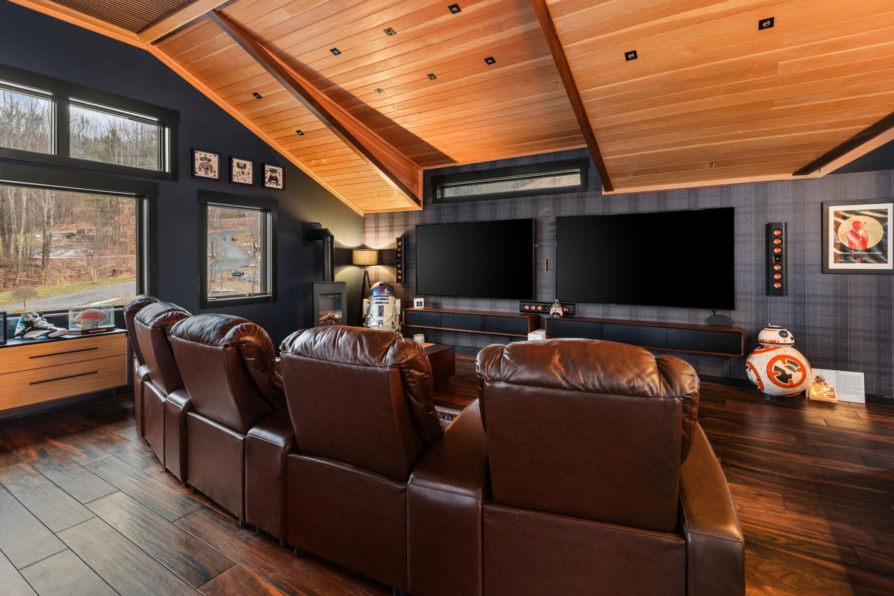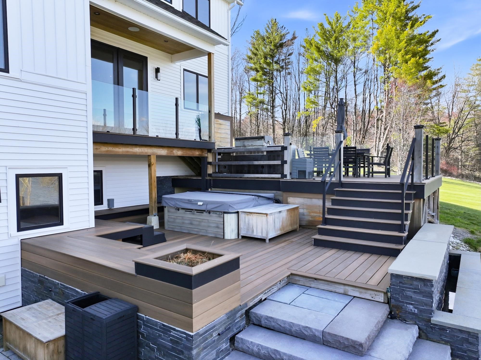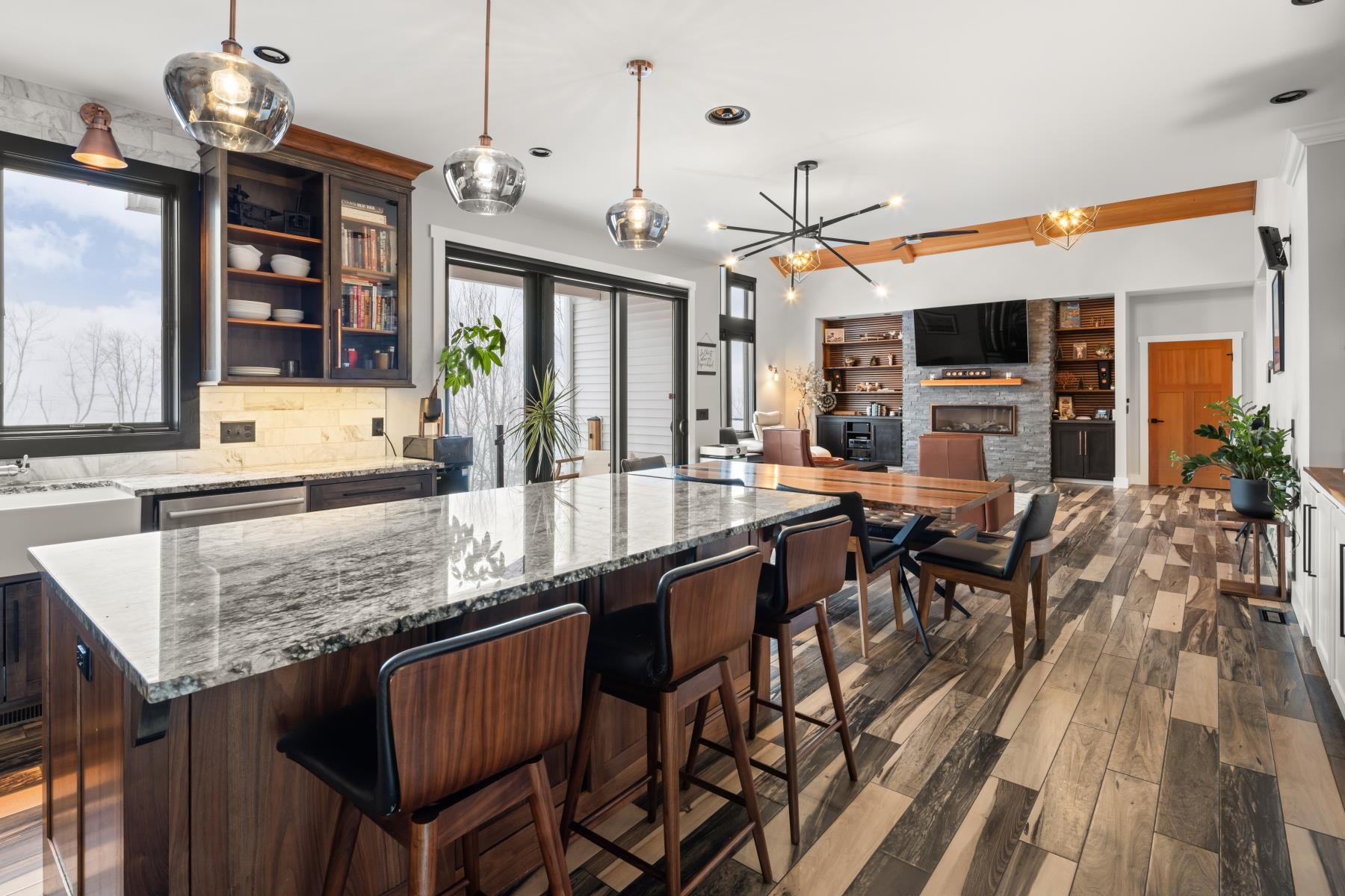 Set along the peaceful shores of Lake Arrowhead in Milton, Vermont, this exceptional lakefront property offers a rare combination of privacy, craftsmanship, and modern convenience—just minutes from everyday amenities while feeling tucked away in a serene setting. This three-bedroom, three-and-a-half-bathroom, custom-built modern farmhouse features approximately 200 feet of shoreline, sweeping water views, and thoughtfully landscaped grounds with apple trees, walking paths, hydrangea-lined lakefront, and expansive 1, 500 sq ft stone patios designed for both comfortable living and entertaining. Inside, the home showcases handcrafted Amish-built cabinetry throughout, a double chef’s kitchen with premium appliances including a Dacor Modernist 48” range and dual refrigerators, and a spacious living and dining area highlighted by timberframe ceilings. The primary suite includes a walk-down closet of 485 square foot, a spa-inspired bath with jetted chromatherapy tub, steam shower with multiple body jets and rain heads, and a private flex space suitable for an office or a fourth bedroom space. A detached 1, 100 square foot executive office and theatre space is connected by a catwalk and includes three additional garages, a gym space and workshop. No detail is missed in this home's advanced smart technology, with a whole-home generator, Tesla Powerwalls, air and water purification systems, and a 90-head irrigation system with mosquito control. Additional features include a library, basement recreation space with custom loft and foam pit, greenhouse, and a dock with power and water. Outdoor living centers around a year-round saltwater pool with automated systems, a custom pergola with powered louvers, lighting, and screens, plus a high-end sport court and gated driveway. Convenient to I-89 yet offering a tranquil lakefront setting, this thoughtfully designed property showcases a wide range of unique features and quality finishes, with additional details available upon request.