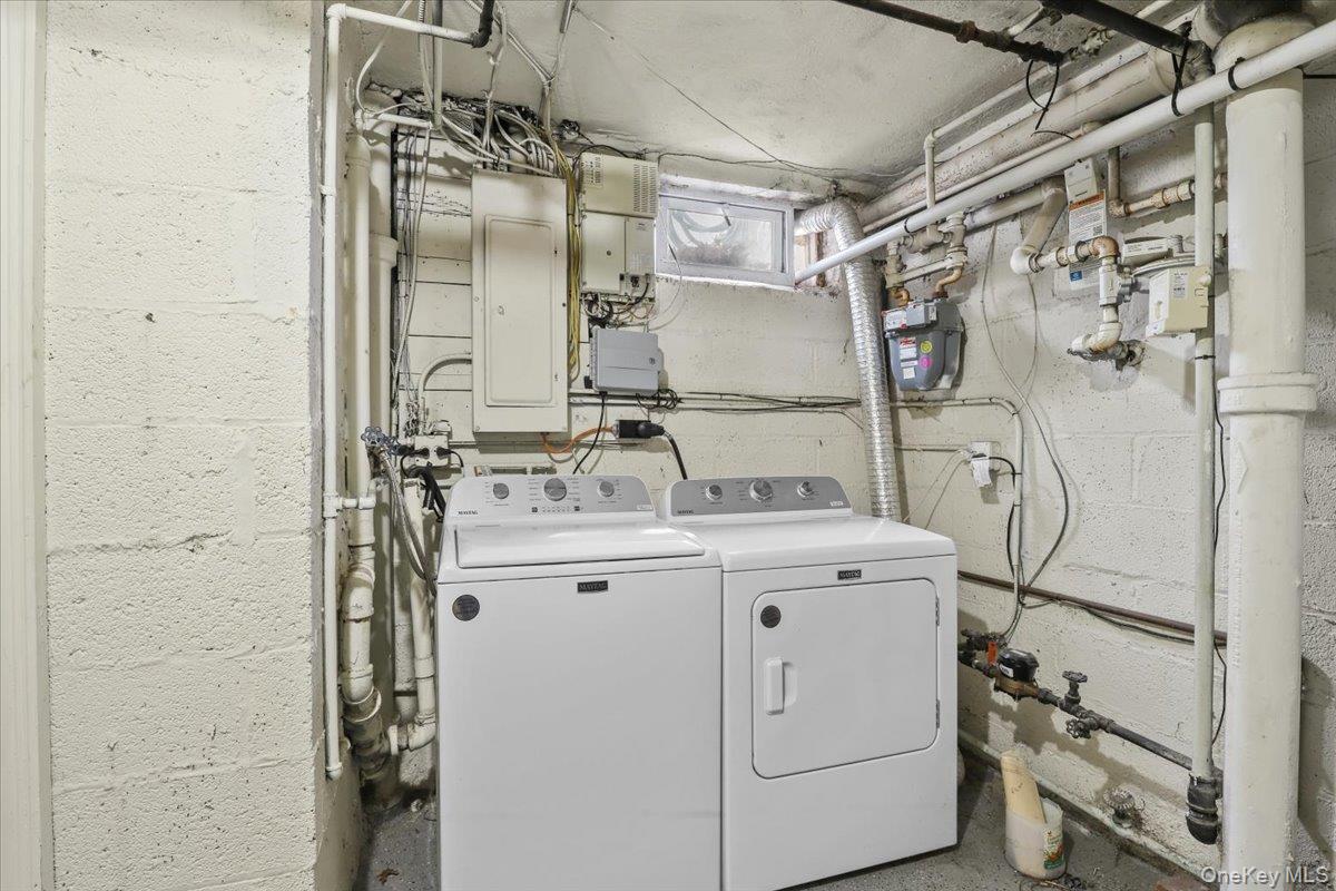 Perfectly nestled in a sought-after Scarsdale P. O. neighborhood within the coveted Eastchester School District, this handsome brick colonial blends timeless architectural character with thoughtful modern updates throughout. A sun-drenched living room anchored by a wood-burning fireplace sets a warm, inviting tone from the moment of entry. An adjoining sitting room with wet bar makes effortless work of entertaining, while painted exposed brick walls add texture. The formal dining room flows naturally into a beautifully remodeled eat-in kitchen appointed with stainless-steel appliances, custom wood cabinetry, and quartz countertops. A first-floor bedroom, equally suited as a private home office, is paired with an updated full bath, offering exceptional flexibility. A 290 SF raised patio off the kitchen and office extends the living space outdoors, while an attached two-car garage with interior mudroom entry adds seamless everyday functionality. The second level is built around a generous primary suite, complemented by a bedroom with its own sitting area, two additional well-proportioned bedrooms, and a modern full bath, all scaled for comfortable daily living. Hardwood floors throughout further enhance the home's charming appeal. The partially finished lower level delivers even more usable space, featuring a 432 SF finished den with a wood-burning brick fireplace, powder room, and laundry. Dedicated storage and workshop rooms can be combined with the existing den to create a large recreation room, offering further possibilities for expansion and customization. A home of this depth and flexibility, in one of Scarsdale P. O. 's most desirable communities, does not come along often.