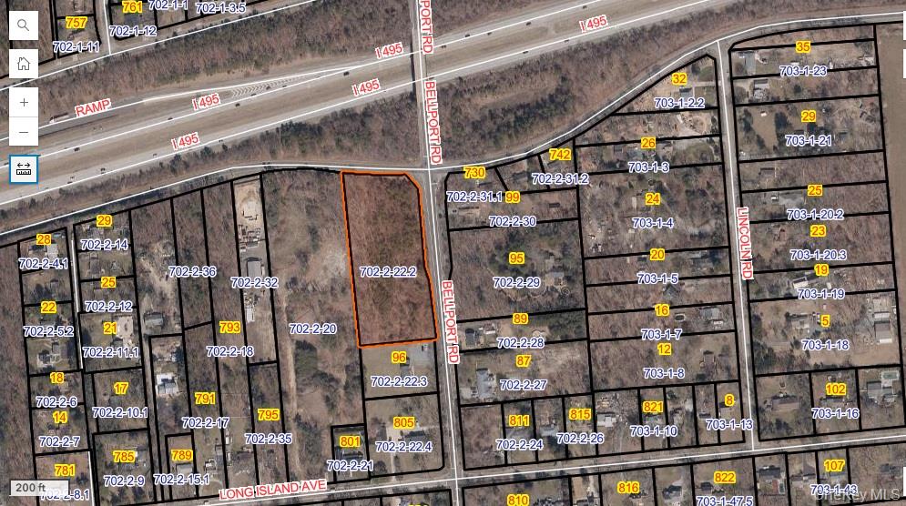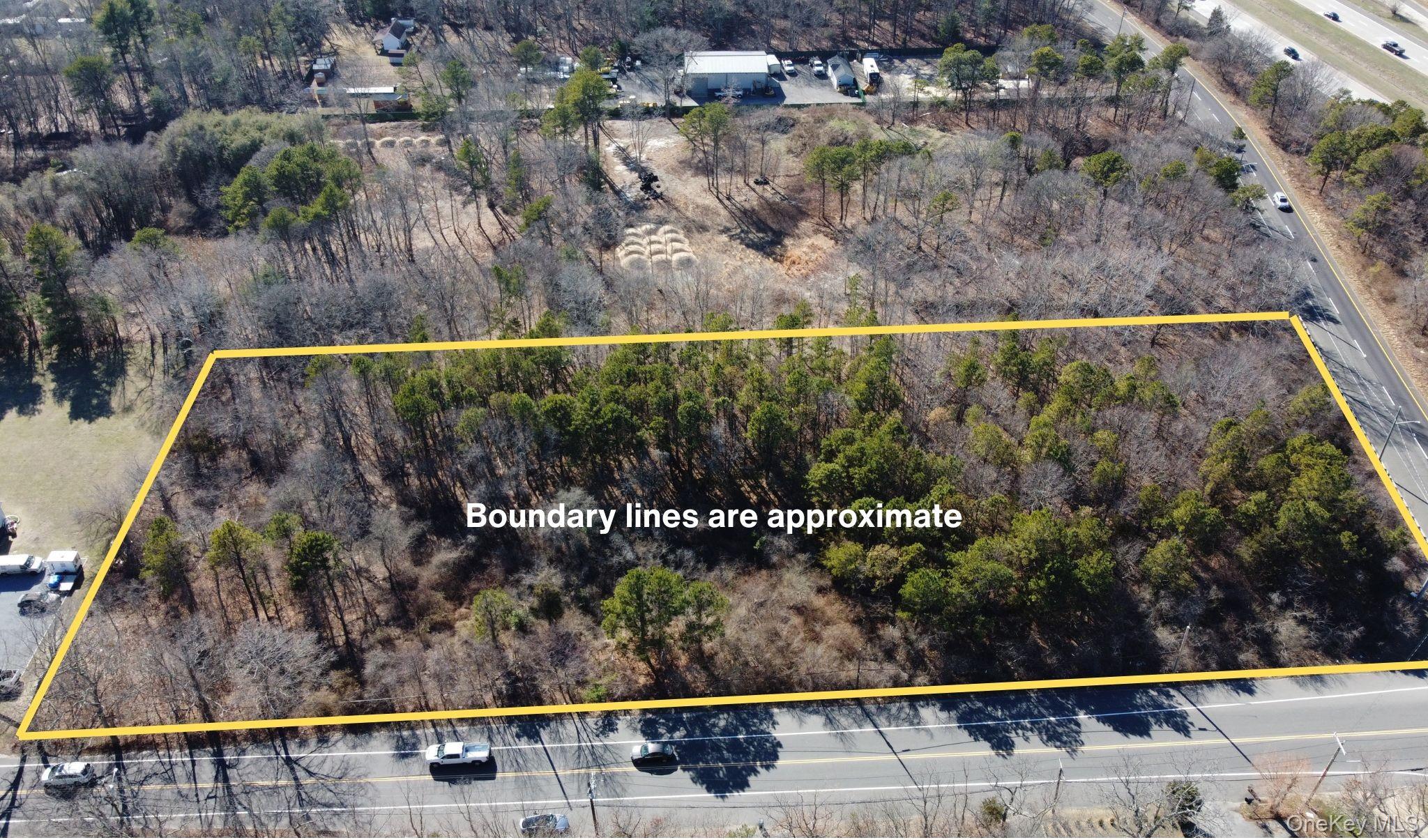 Corner of Long Island Expressway S Service Road and Bellport Rd. 3. 14 acres of uncleared, unimproved land. Zoning currently is A1 residential. Zoning change would need to be cleared with the town. Possible potential for housing development, convenience store, public storage or gas station with zone change. May be subdivided into 3 lots. Proper address is Long Island Ave, but the location is not actually on that road.
