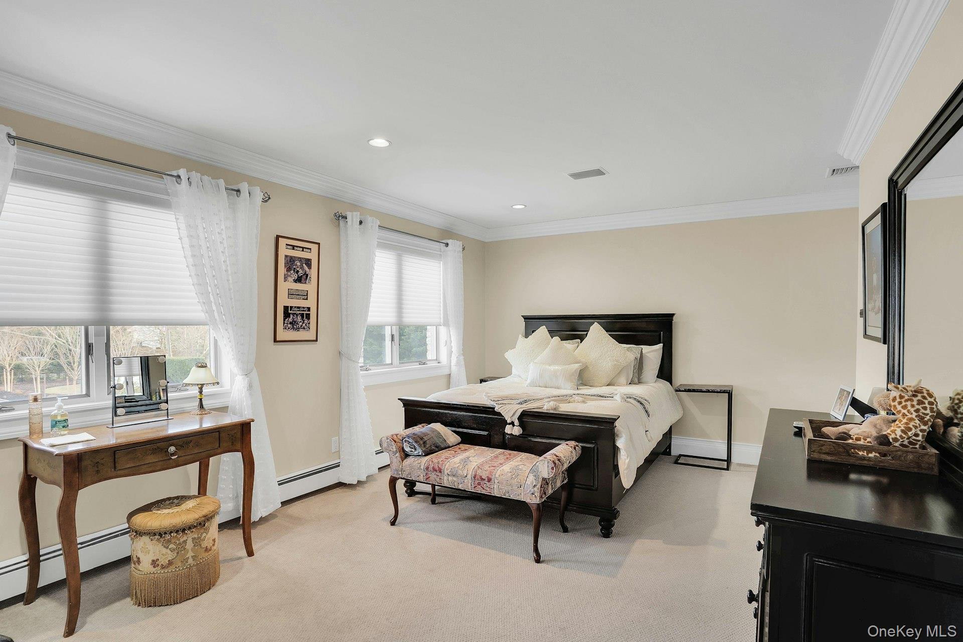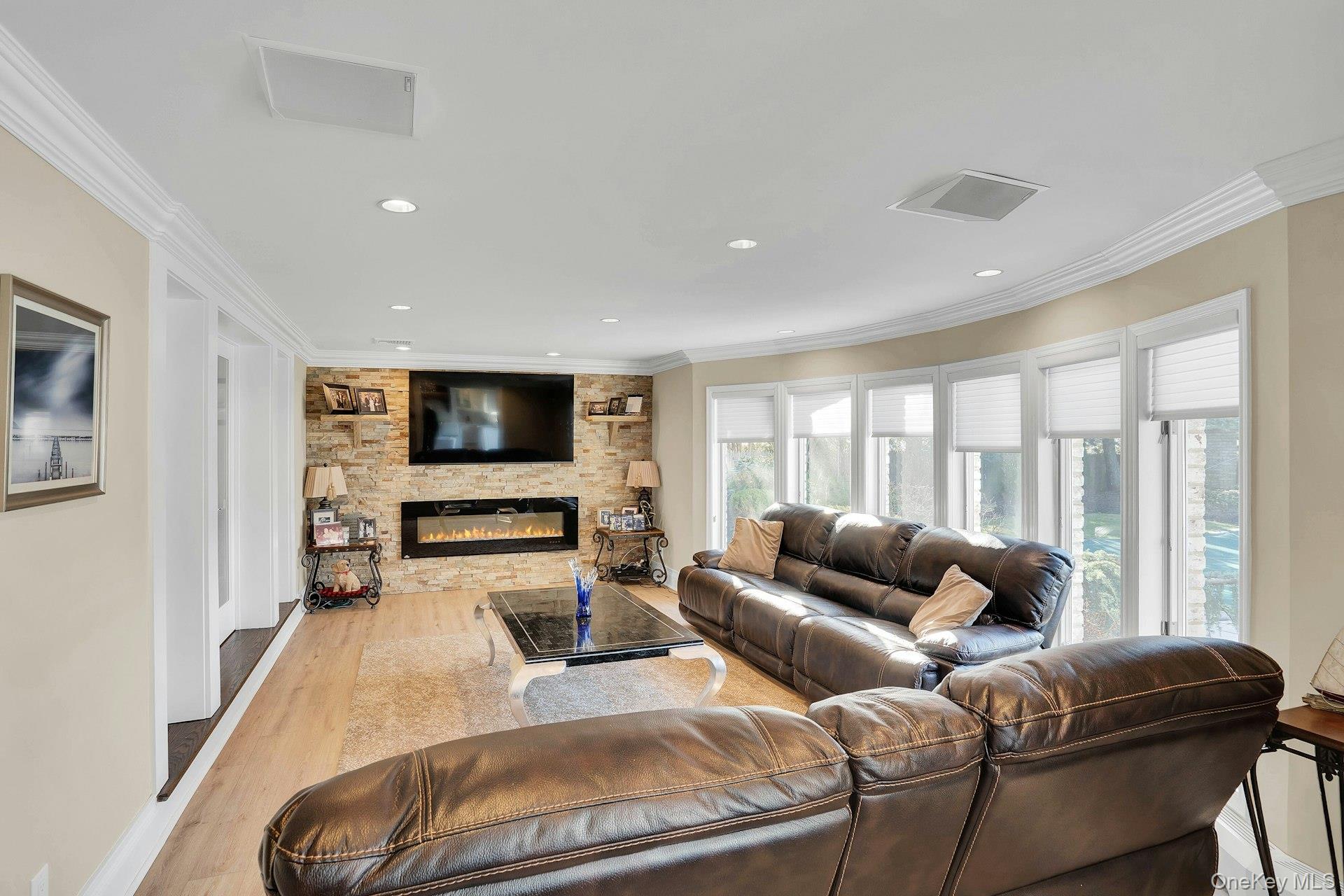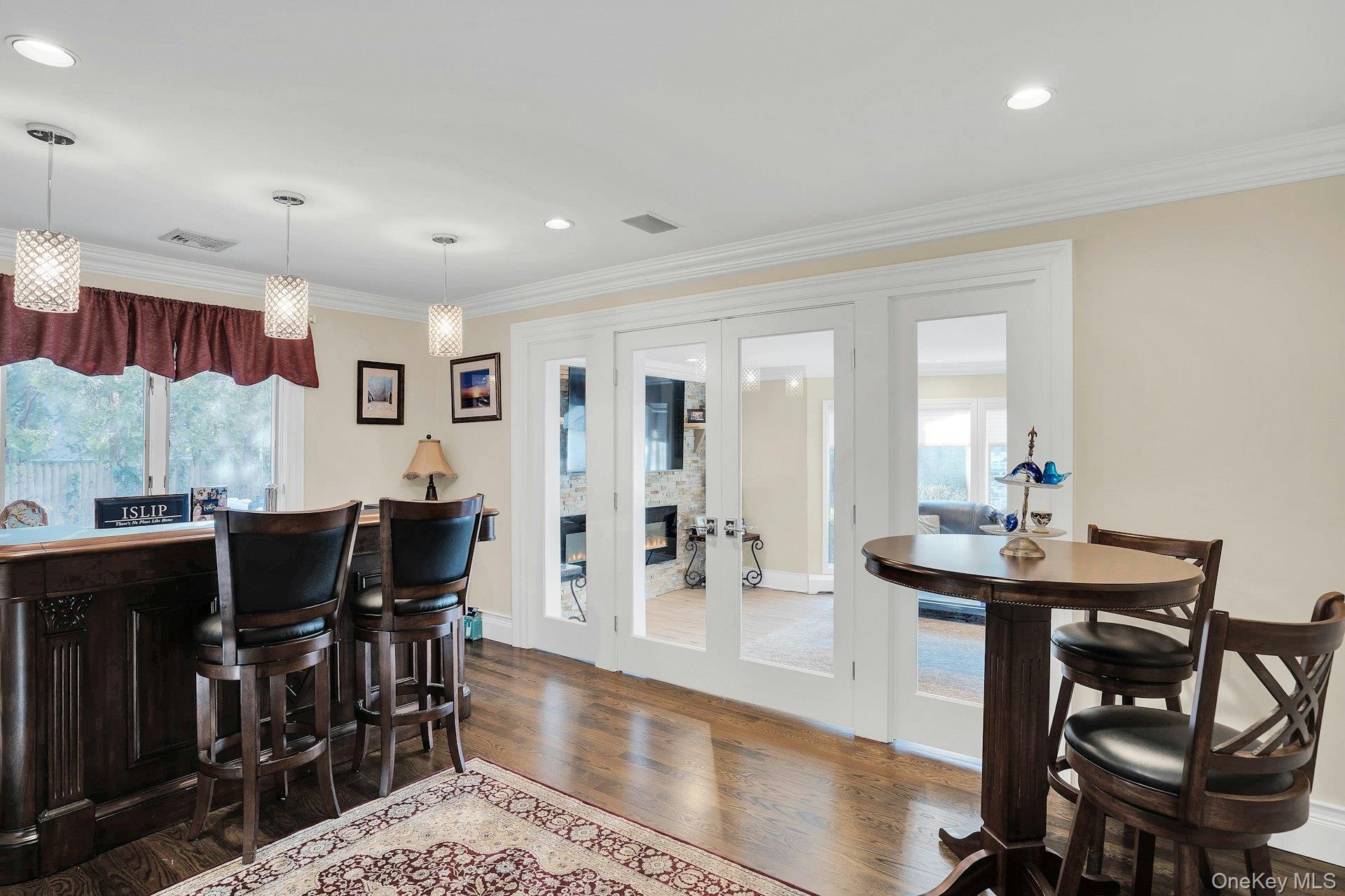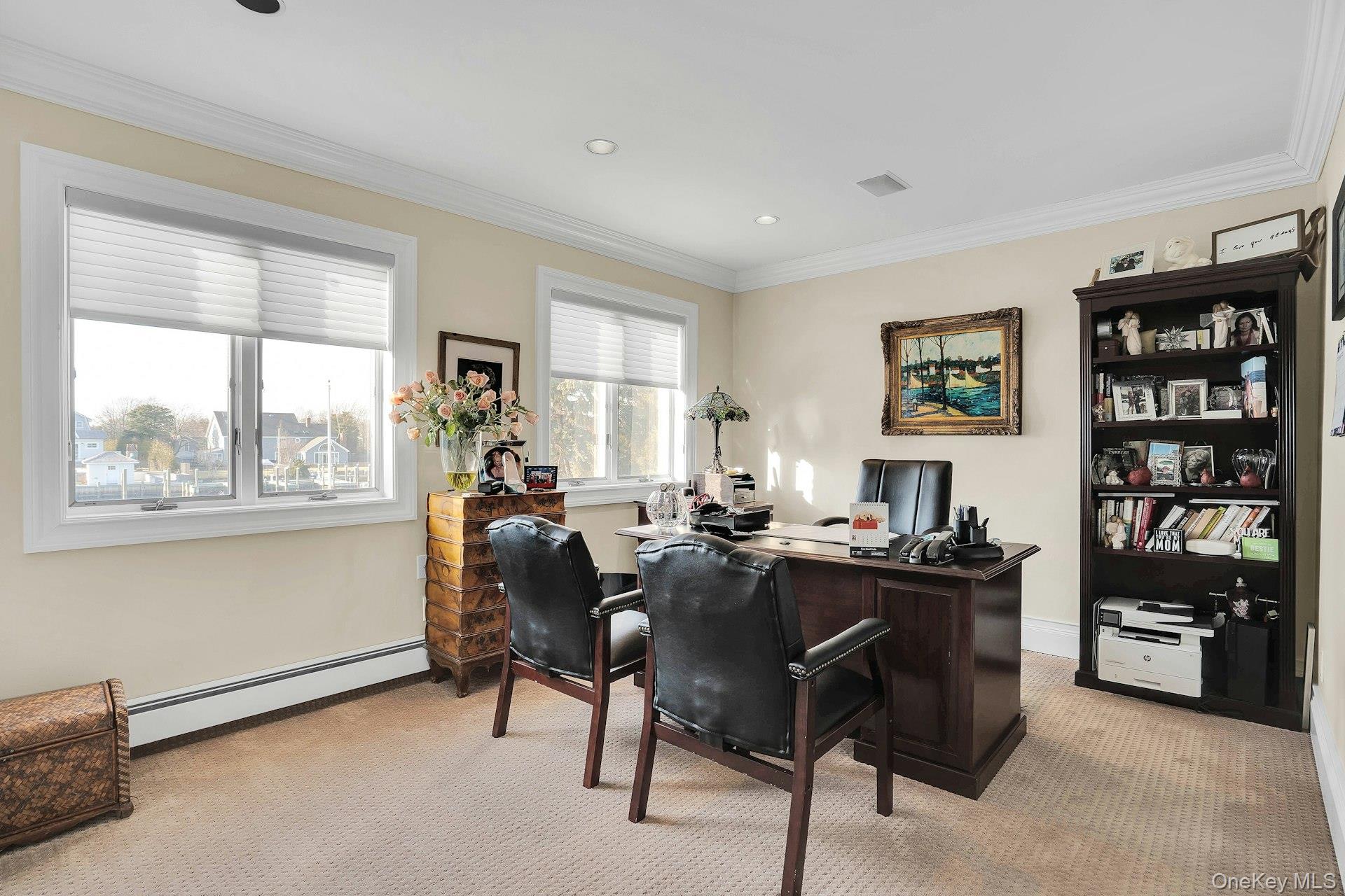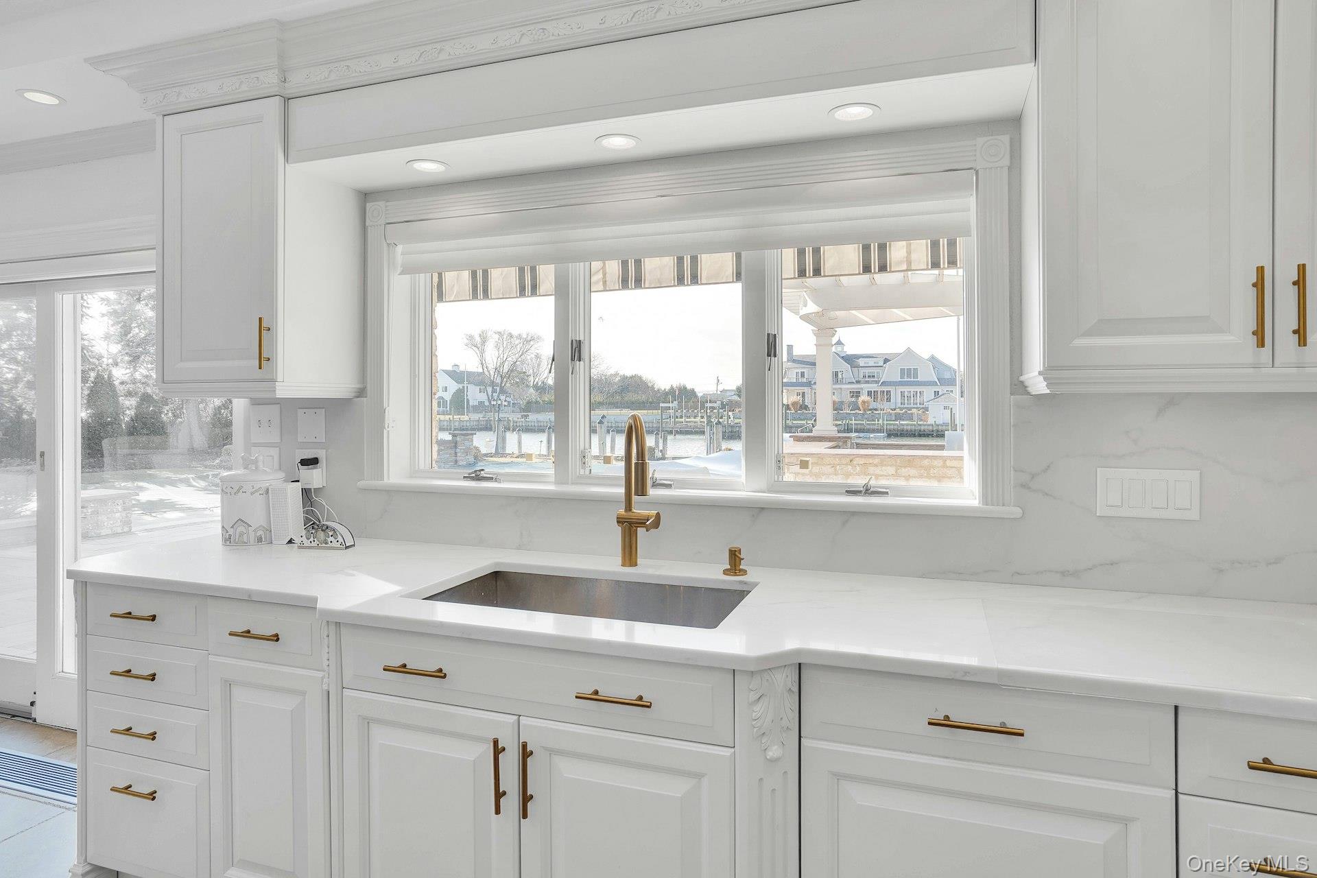 Privately gated, prestigious waterfront home in the heart of Bayberry Point Estates. Drive up the tree lined driveway and around the beautiful fountain to be greeted by new 10' mahogany entry doors, a two story entrance, marble floors, custom iron banisters and crystal Murano chandelier. From the moment you step inside this beautiful home you have a view of the flowing waterways. Windows, doors and skylights all around really brings the outside in. Newly renovated gourmet kitchen features radiant heated floors, fabulous center island with new custom granite counter, newly painted cabinets with designer hardware, 6 burner Wolf stove with grill, Wolf double ovens, Subzero refrigerator/freezer, wine cooler, refrigerator drawers and more! Custom wainscoting, gas fireplace with custom mantle & hardwood floors are an elegant touch. FDR features new coffered ceiling to add to the elegance. Den with attached bar room is a full entertainment space with big screen TV, electric fireplace and full bar overlooking the pool. Newly decorated first floor bedroom with full bath for guests. The Primary Bedroom has an amazing view of the canal and a balcony to enjoy it from. It also features 3 walk-in-closets and an ensuite bathroom. The ensuite bath is newly renovated with soaking tub, new double vanities with make-up area, beautiful chandelier and separate shower. The crown jewel of the home is the stunning yard with beautiful views and the widest canal in Bayberry for the avid boater. Sit in your pool with a cocktail and wave to the boats going by. The pool is a Gibbons gunite, salt water with waterfall and jacuzzi and brand new heater. The outdoor kitchen has new gas barbecue. Main dock is a U-Shape walk around that fits up to a 55' boat and the 2nd dock fits up to a 25' boat and can be converted to a launch. Boat house and shed in yard for extra storage. Lutron Lighting, 6 Vivant Camera Alarm System, CAC, Anderson Windows, New Interior Doors, New Washer & Dryer, All TV's Stay, New Boiler, New Custom Gutters, Garage has new custom flooring and cabinets and New Garage Doors. This is lifestyle living. X Flood Zone!! No flood insurance required. Sellers want to close in August preferably.
