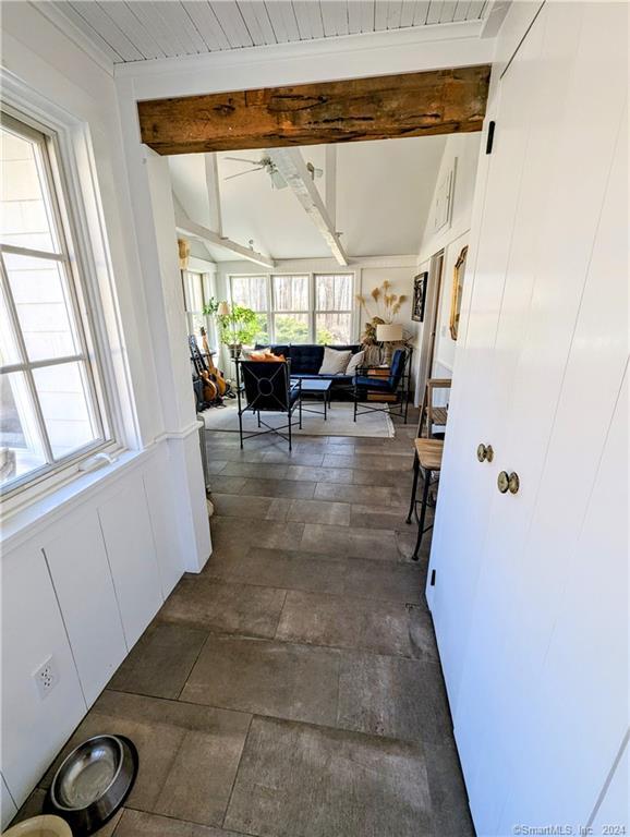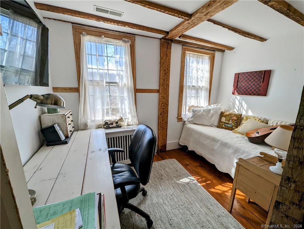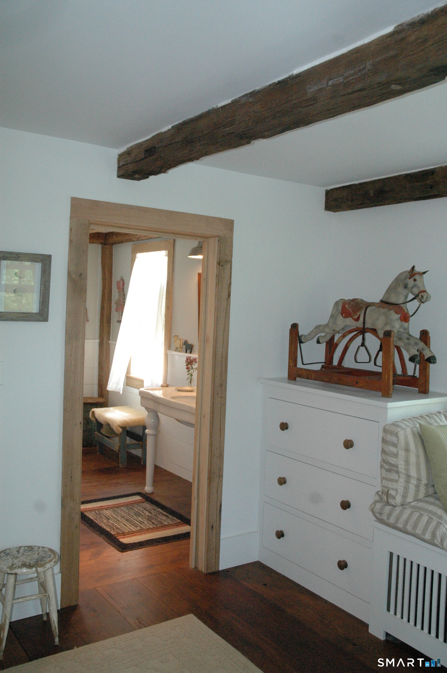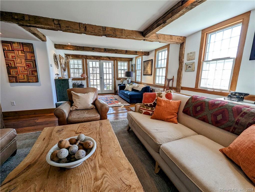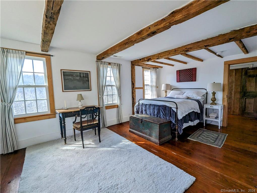 Summer will be here sooner than you think!! SUMMER RENTAL AVAILABLE FROM JUNE 1st TO END OF AUGUST . This 3. 5 bedroom 1790s farmhouse is a quiet, rural property along a quiet, historic scenic road. It has original beamed ceilings throughout, with a living room centered on a stone hearth including a bread oven and iron details. The house opens onto two lawns and a stone patio, with new outdoor grill. Across one lawn is a vegetable garden, and beyond the back stone wall is a wildflower meander through a field on the property. All rooms are furnished with antiques. Each bedroom has a full bed, and there is an additional single bed in an entertainment room. The main bedroom suite with a queen bed has an adjoining office/tv screen room, and a marble glass shower with Waterworks sink and fixtures. The kitchen has a professional stove, farmhouse sink and soapstone counters. The property is landscaped with exotic trees and ancient stone walls, and the pool is furnished with teak steamer lounge chairs. It is 1. 5 hrs from Grand Central Station by train (Redding Station just up the road, or a 15 min. drive to Brewster Station) and 1 hour 10 minutes by car to Manhattan. 10 min. drive to large Supermarkets, entertainment, and restaurants in Ridgefield, Wilton, Bethel, Danbury. The house sits across from a sheep meadow and abuts - both in the front and back, hundreds of acres of wildlife preserve with fields and hiking trails. *** WIFI and central air conditioning included *** Older, well-behaved dogs are allowed on a case-by-case basis with a pet fee. NO cats, please.