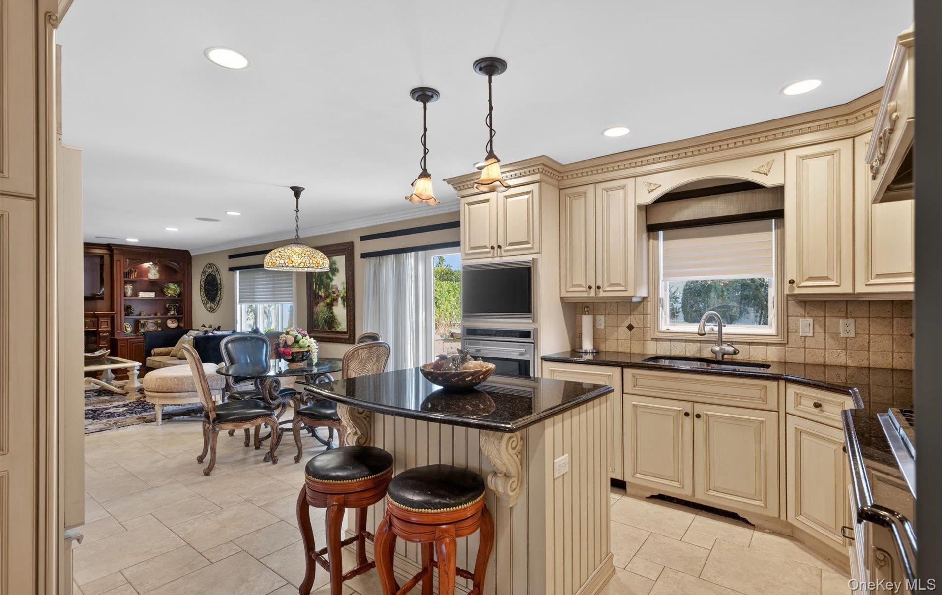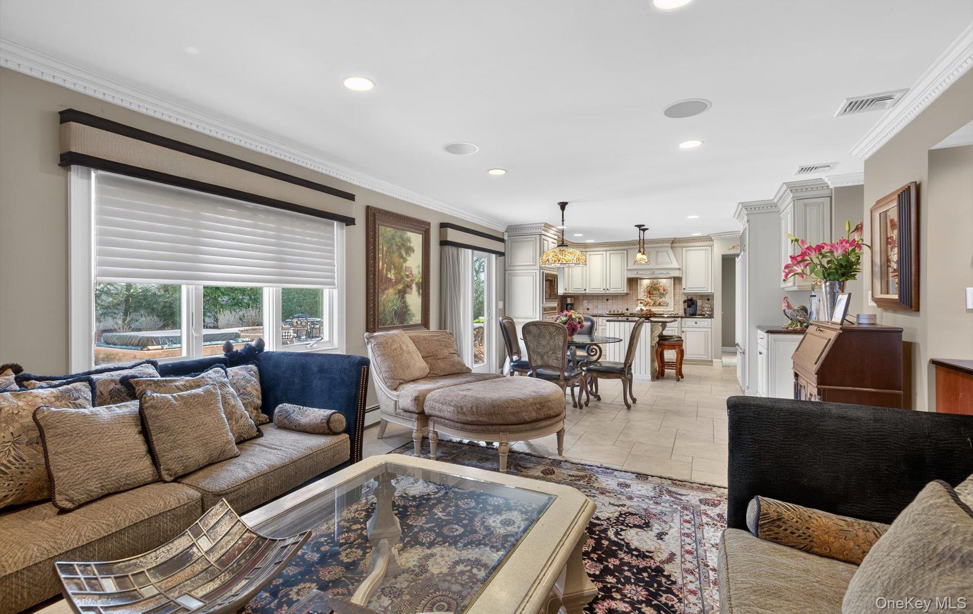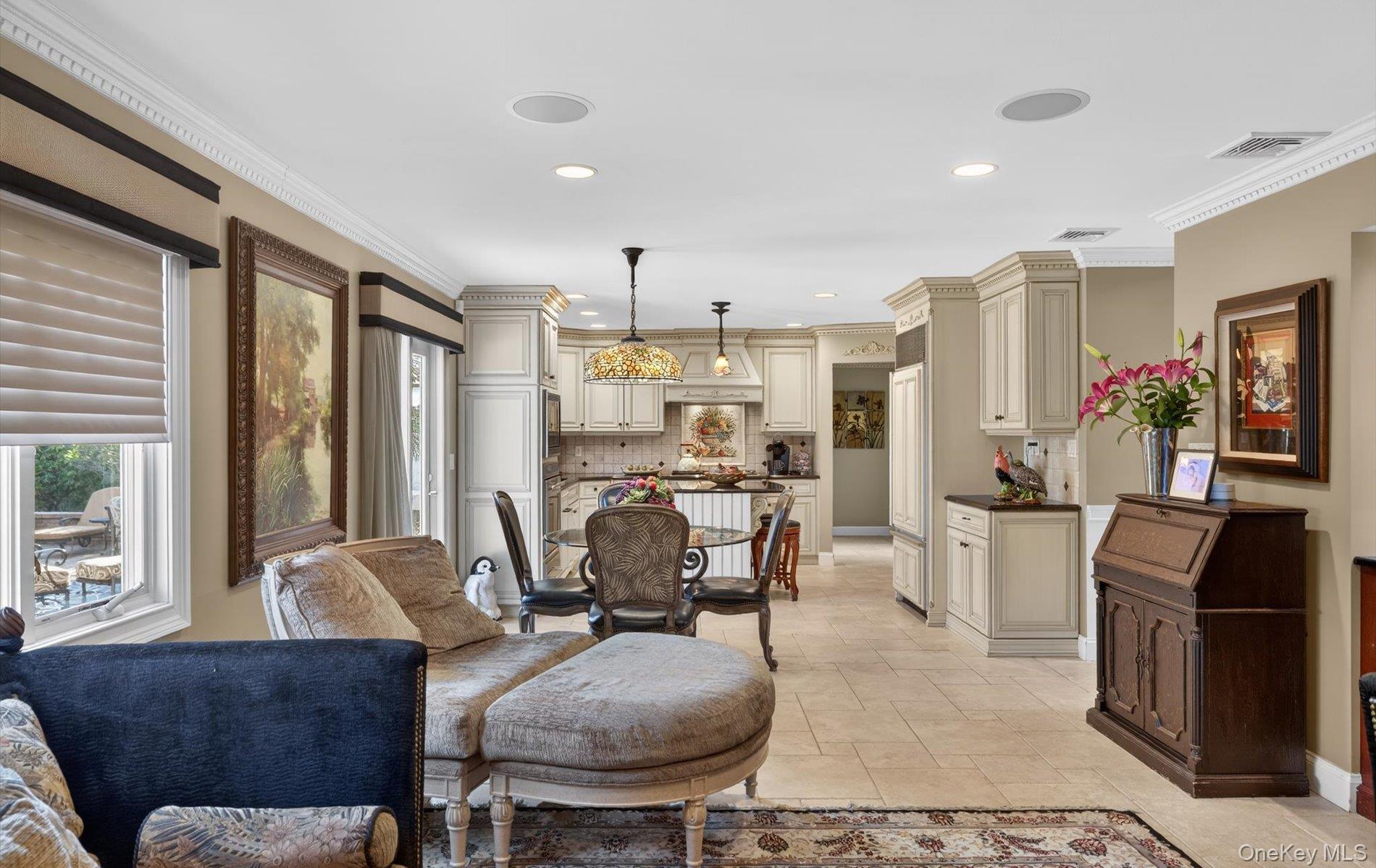PRISTINE, One-of-a-Kind 5-Bedroom Colonial in Country Woods! This beautifully designed home blends timeless elegance with modern-day comfort, offering a truly elevated living experience. From the moment you enter, the grand two-story foyer with soaring ceilings creates a stunning first impression and sets the tone for the refined finishes found throughout, including detailed wainscoting and custom window treatments that add sophistication to every room. At the center of the home is a newly updated, custom chef’s kitchen featuring rich granite countertops, high-end stainless steel appliances, and sleek recessed lighting — perfectly designed for both everyday living and entertaining. The inviting family room showcases custom-built cabinetry, adding warmth, character, and functional living space. A dramatic staircase with custom iron railings further highlights the craftsmanship and attention to detail that make this home stand out. The primary suite offers a peaceful retreat with a beautifully renovated full bathroom and an oversized custom walk-in his-and-hers closet. Every inch of this home has been thoughtfully curated with custom finishes and design elements that enhance both style and practicality. Step outside to a private, resort-style setting — a meticulously landscaped backyard perfect for relaxing or entertaining. Enjoy outdoor gatherings with the built-in BBQ. The fully paved driveway adds an additional layer of curb appeal and convenience. Located in the heart of Country Woods community with Commack Schools, this exceptional home offers luxury, comfort, and detail at every turn. Truly a rare opportunity — schedule your private showing today!