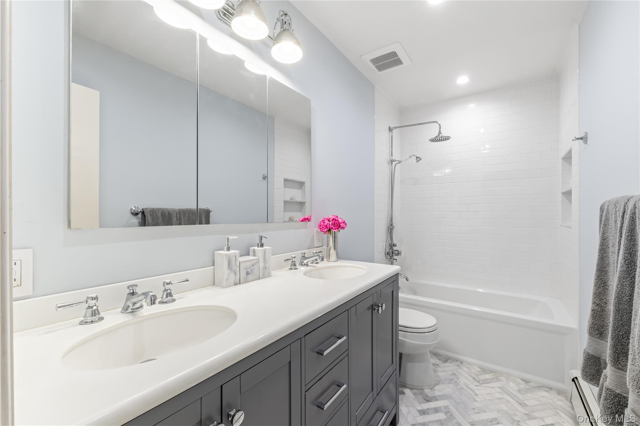 This home truly has it all. Set midblock on a quiet tree-lined block in the prestigious Jericho Union Free School District, this stunning 6-bedroom, 4-bathroom residence delivers space, elegance, and versatility in one incredible package. The crown jewel is the fully independent Private First Floor Suite with its own separate entrance, bedroom, half bath, bonus living space, and flexible area—ideal for multigenerational living, guests, or in-law use. Sun-drenched living spaces with oak hardwood floors, a welcoming foyer, and thoughtful flow create warmth throughout. The show-stopping Chef’s Kitchen features luxurious Carrara marble countertops, top-of-the-line Fisher & Paykel appliances, and beautiful Visual Comfort lighting, flowing seamlessly to a formal dining room perfect for unforgettable celebrations. Step outside to your own private backyard retreat featuring a heated 18’ x 38’ in-ground pool, ideal for entertaining, play, and relaxation. Smart-home technology, fiber-optic readiness, and brand-new central air complete this move-in-ready gem. Nothing left to do but move in and start making memories. Extraordinary space. Timeless elegance. Private showings by appointment. Some images are virtually staged. Pool photos from last summer.