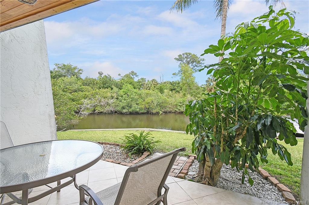 Discover your waterfront paradise with this Key West Style townhouse offering scenic views of Willoughby Creek and direct ocean access. This 2-bed, 1. 5-bath condo is perfectly matched for those who appreciate the boating lifestyle, boasting its own deeded dock and access to the St Lucie River, Manatee Pocket's restaurants, and the open ocean within minutes. The upgraded interior features granite countertops, stainless steel appliances, and tile floors throughout, accentuated by vaulted ceilings that create an expansive atmosphere. Enjoy convenience with an in-unit washer/dryer. Experience outdoor living with towering coconut palms and a beautiful community pool. One fixed bridge at 8' ft clearance. Tesla Charger installed.
