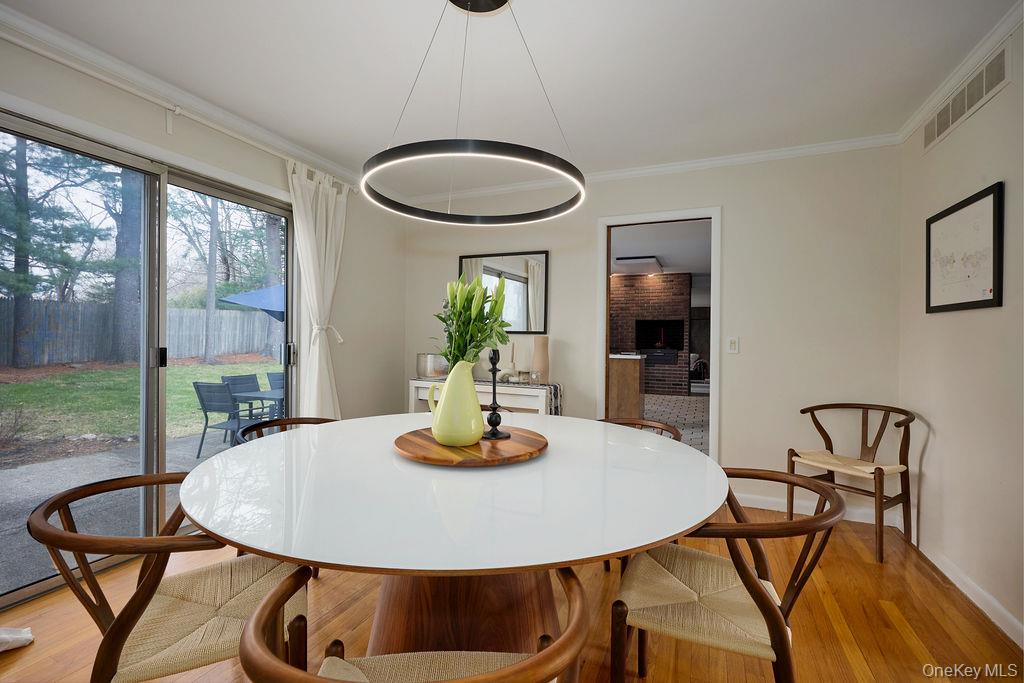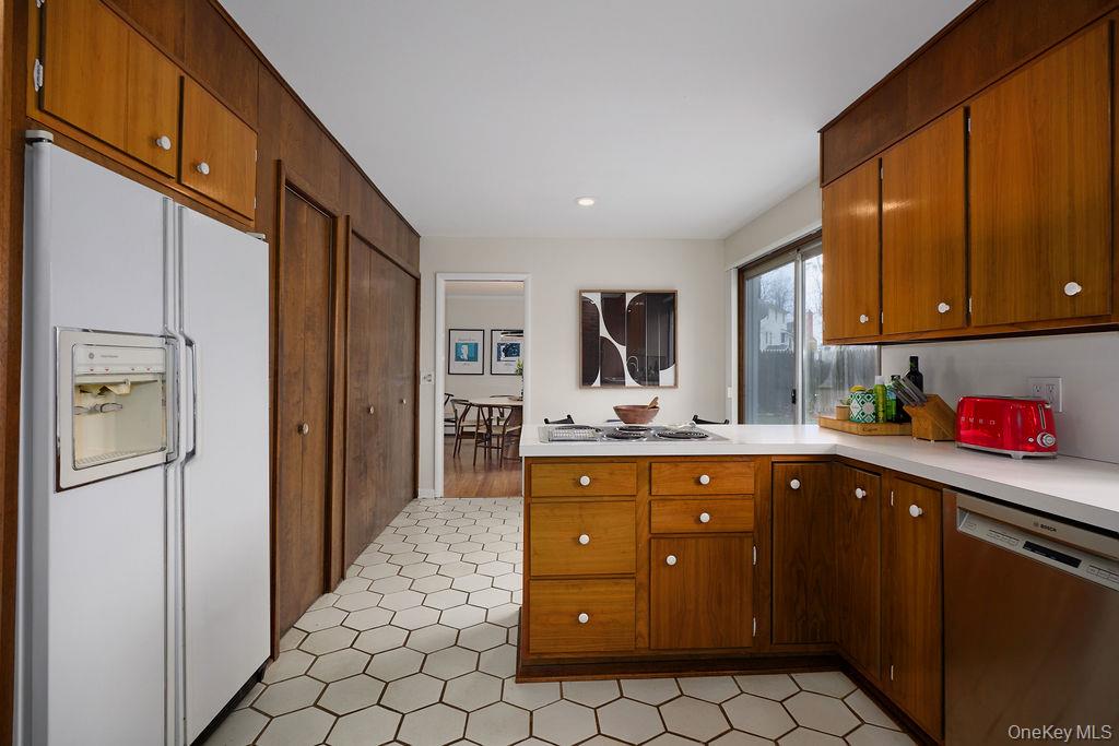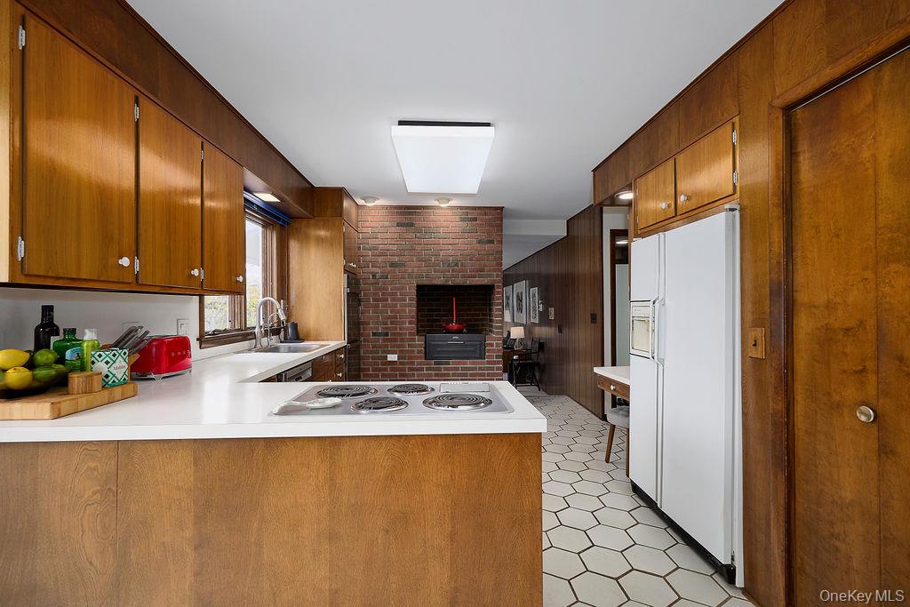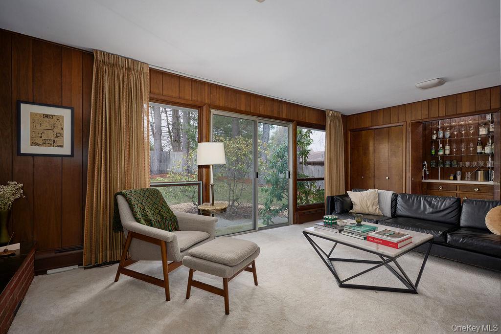 Located on one of the South Side’s most desirable, tree-lined streets, this beautifully maintained modern home sits perched on a lovely landscaped property with a level, private rear yard—perfect for gardening, entertaining, or simply enjoying peaceful outdoor living. A stone patio and privacy fencing create an ideal backdrop for gatherings or quiet relaxation. Designed with a true modern aesthetic, this home offers a seamless blend of tranquility, sophistication, and effortless living. The sun-drenched interiors are enhanced by oversized windows and sliders capture both neighborhood charm and serene natural views. The living room serves as a striking focal point, featuring a gorgeous floor-to-ceiling stone fireplace wall and abundant natural light. A modern dining room with a stylish light fixture flows easily into the kitchen, which includes a dining area, classic range top, newer stainless steel wall ovens, and a unique brick indoor grill. Rich solid wood cabinetry, a built-in counter desk area, and sliders leading to the rear patio make this space both functional and inviting. The family room is equally impressive, showcasing thoughtful built-in cabinetry and shelving, walls of windows and sliders overlooking the tranquil yard, a built-in bar, and a stunning brick wood-burning fireplace—perfect for entertaining or cozy evenings at home. The main level also features a convenient laundry area with a new gas dryer, a mudroom off the garage, and a half bath. Upstairs, the primary bedroom offers a step-in closet with a dressing area and a newly updated full bathroom. Three additional spacious bedrooms share a classic modern full bath with a double vanity and a unique hallway laundry chute. The lower level provides even more versatility with a walk-out to the oversized 2 garage and mostly finished spaces including storage areas, a home office, den, and workout area—ideal for today’s flexible lifestyle needs. Throughout the home, you’ll find all-natural paint tones, beautiful hardwood floors on both levels, minimalist design elements, and statement wood-burning fireplaces in both the living and family rooms. Thoughtful built-ins and multiple work-from-home spaces add to the home’s functionality. Additional features include city water and sewer, natural gas, central air, and updated electric. Conveniently located just minutes from golf courses, walking trails, parks, and a community pool, and only five minutes to Metro North and everyday amenities, this home offers the perfect balance of comfort, style, and accessibility. Also, ideally located near shopping, medical facilities, and restaurants, this home combines comfort, convenience, and quality in an exceptional setting. Enjoy the Hudson Valley —vineyards, farm-to-table dining, rail trails, antique shops, and more. Showings by confirmed appointment only. Pre-Approval/POF required to show. Showing Request Notice Please.