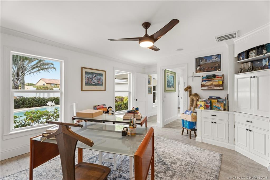 Enjoy breathtaking wide water views and stunning sunrises from this custom-built courtyard pool home in one of Martin County’s most desirable communities.