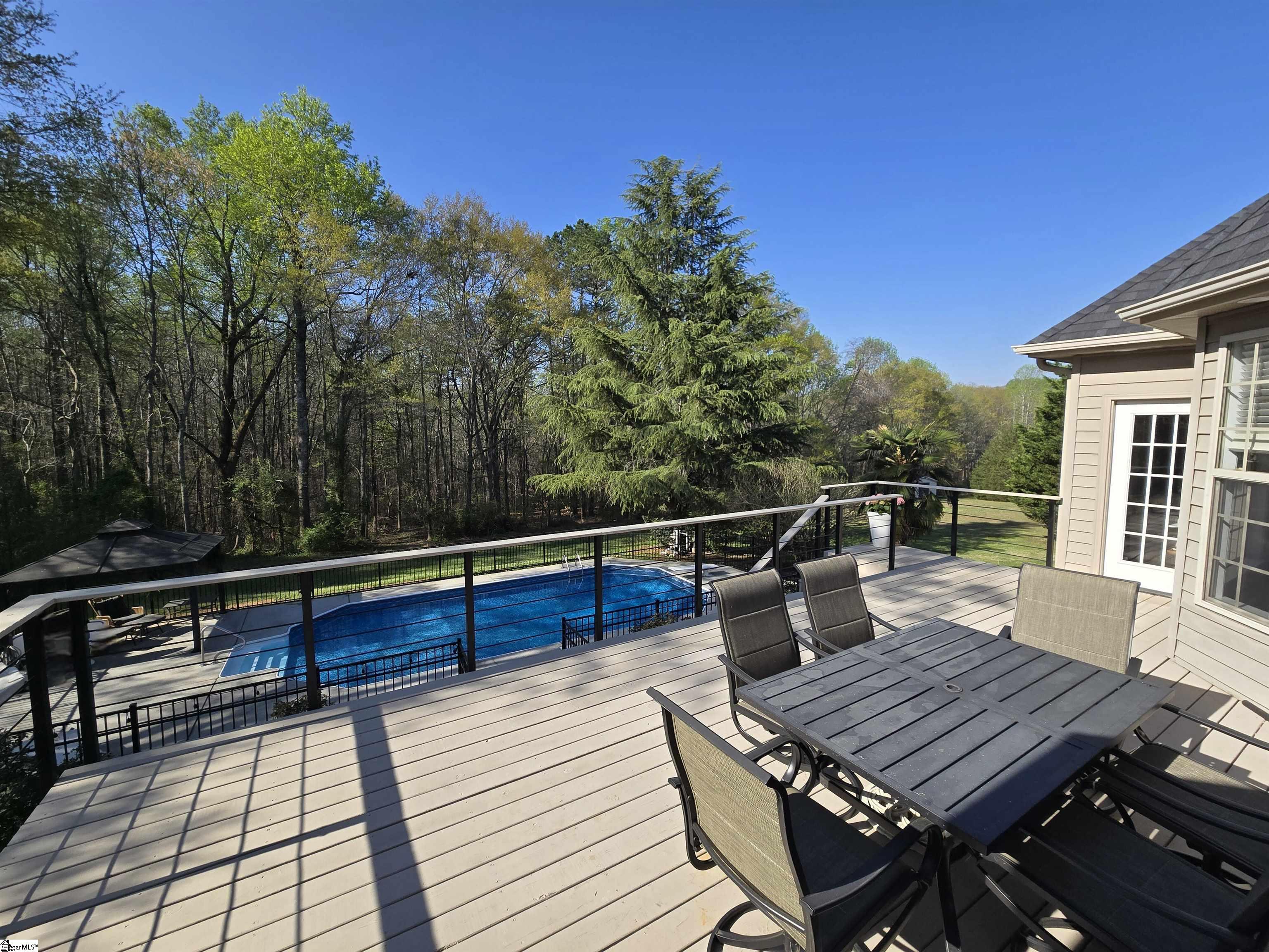 Located on a secluded cul-de-sac in a desirable neighborhood within the Wren School District, this house is a must-see. This move-in ready home sits on a 0. 79-acre lot and has 3, 124 sqft of well-designed living space. The backyard oasis features a fire pit and spacious pool with a new black fence and new energy-efficient pump (both 2025). A renovated extended deck (2025) overlooks the pool, which is beautifully illuminated at night. A wooded area behind the property ensures privacy. The main level of the house has new flooring (2024), fresh paint (2025/2026), high ceilings, and two fireplaces (one gas log and one wood-burning) with new tile surrounds (2024). The kitchen features granite tile counter tops, double sinks and a pantry, with a breakfast nook and a dining room nearby. Large windows throughout give stunning views of the backyard. The main-level primary suite includes a newly renovated bathroom (Dec 2024). A second bedroom and full bath is also located on the main floor. Upstairs includes three bedrooms, and a bathroom with double sinks and new shower (Dec 2024). A new roof was installed in 2021. The generous lot has the potential to build a pool house, additional garage, apartment, or a combination of all three. Friendly HOA at just $300 a year. The Wren schools are conveniently situated next to one another, and are just a 3-minute drive or 10 minute walk away. Pickle ball courts and sports fields are also within walking distance. The Wren Market Square with a grocery store is expected, and will be just a 3 minute drive. Convenient access to the mountains and coastal beaches. This move-in ready, thoughtfully updated home is ready for the next owners to create memories!