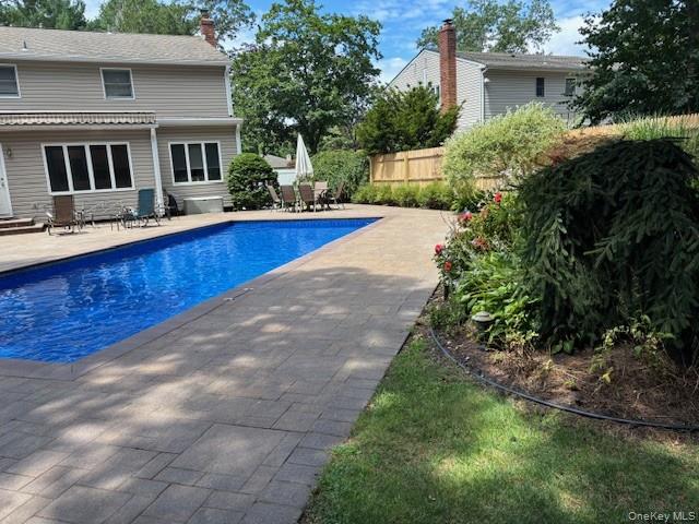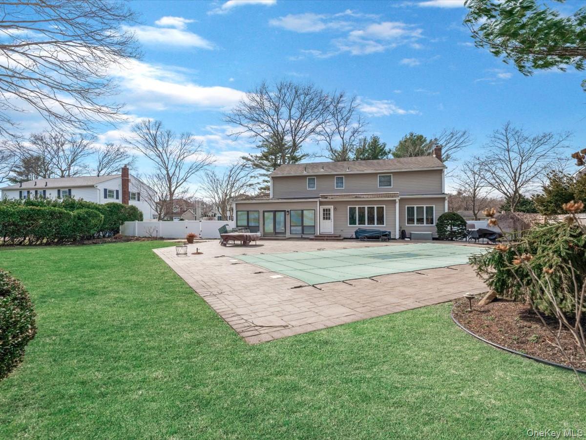 Beautiful Colonial with Amazing Country Club Backyard on Quiet Tree Lined Street! Four Bedroom, Two and a Half Baths with Primary Suite. EIK overlooking the Inground Salt Water Pool with New Liner 2025, Large Motorized Awning for Backyard Shade. Extraordinary Paver Patio resanded in 2024! Gleaming Hardwood Floors, Large Family Room with Sliders to Backyard, Covered Front Porch, Full Unfinished Basement with Laundry, Plenty of Storage and Utilities. Two Car Attached Garage, Central Air, Central Vac, Inground Sprinklers, Septic in Front and serviced in 2025. New Wood Fencing, Professional Landscaping and Impeccably Maintained by Original Owners. Smithtown Schools!