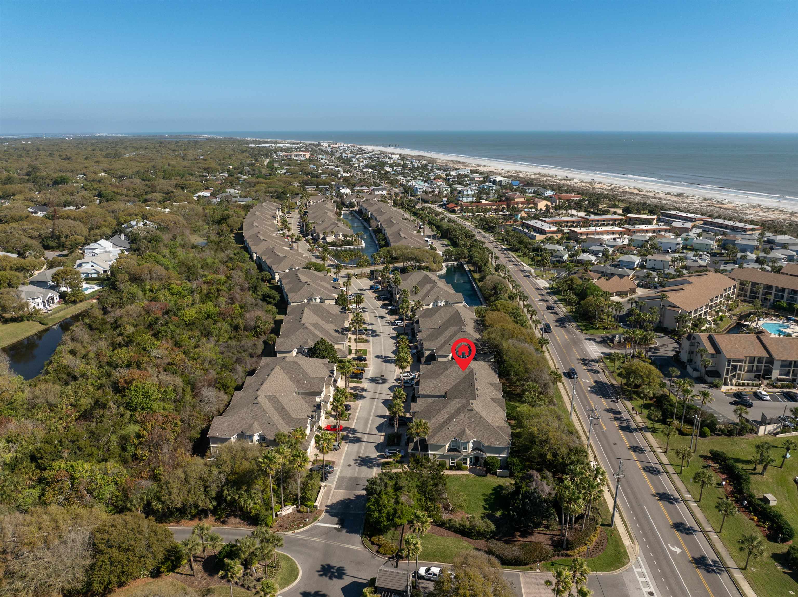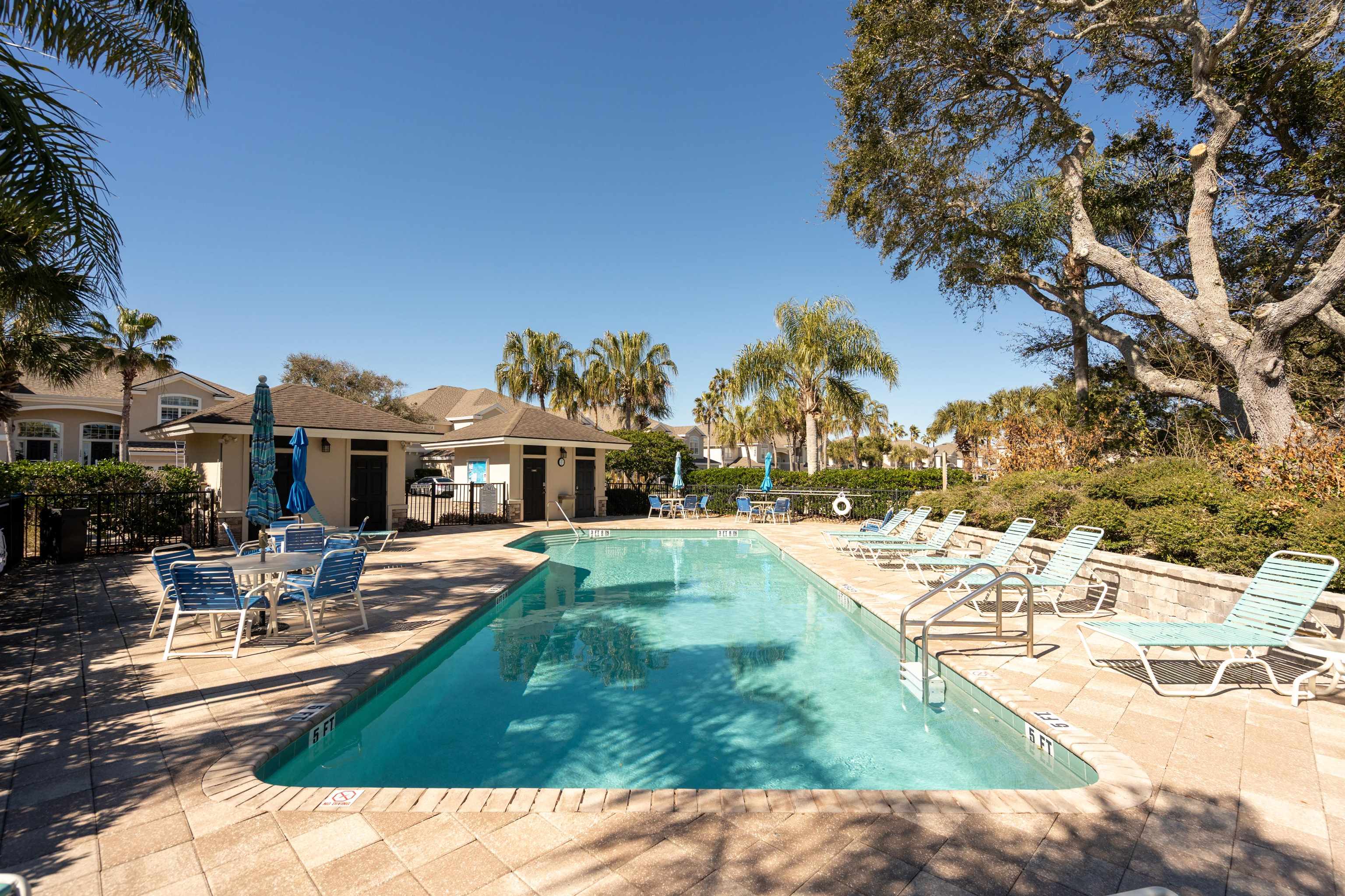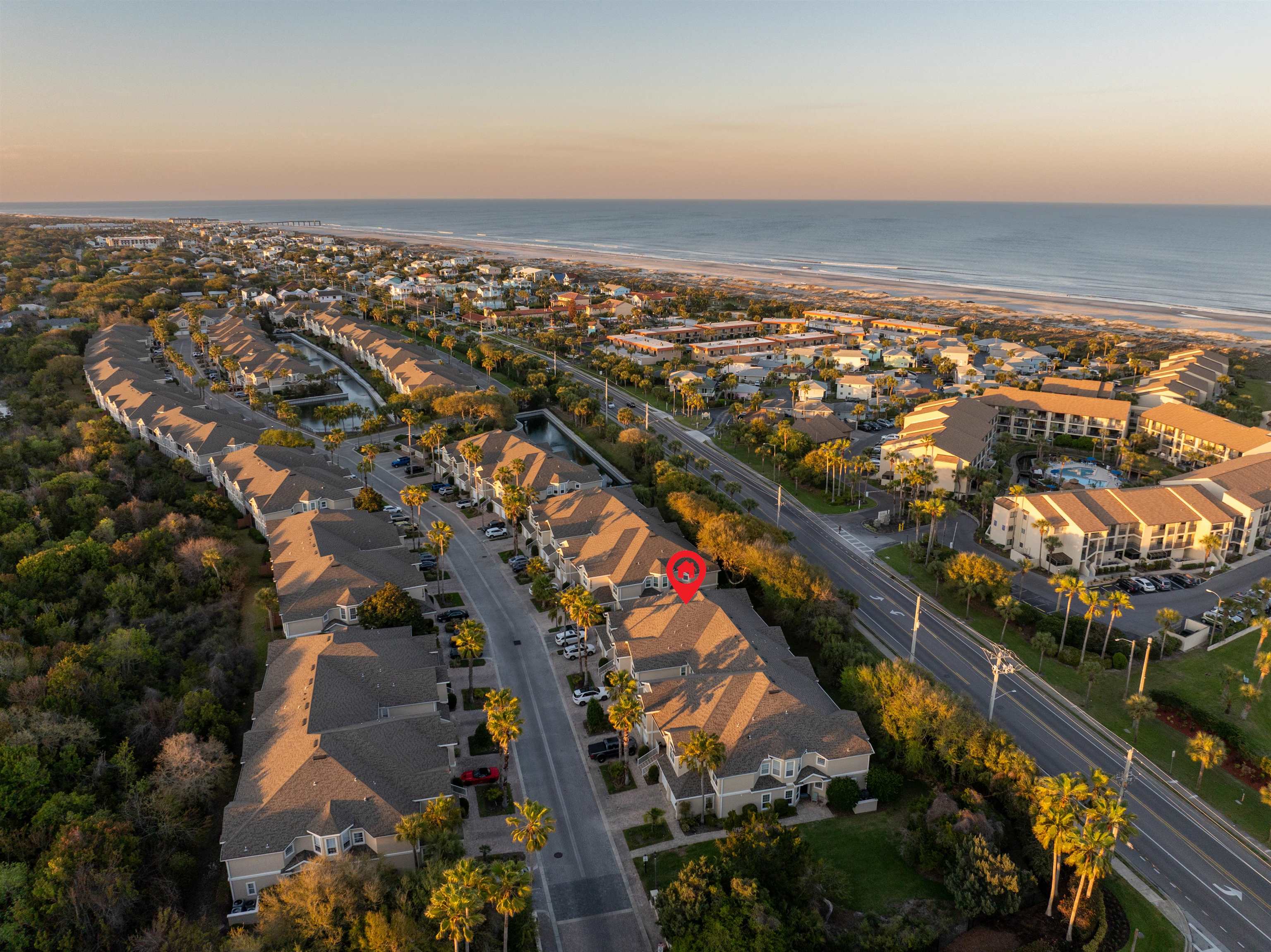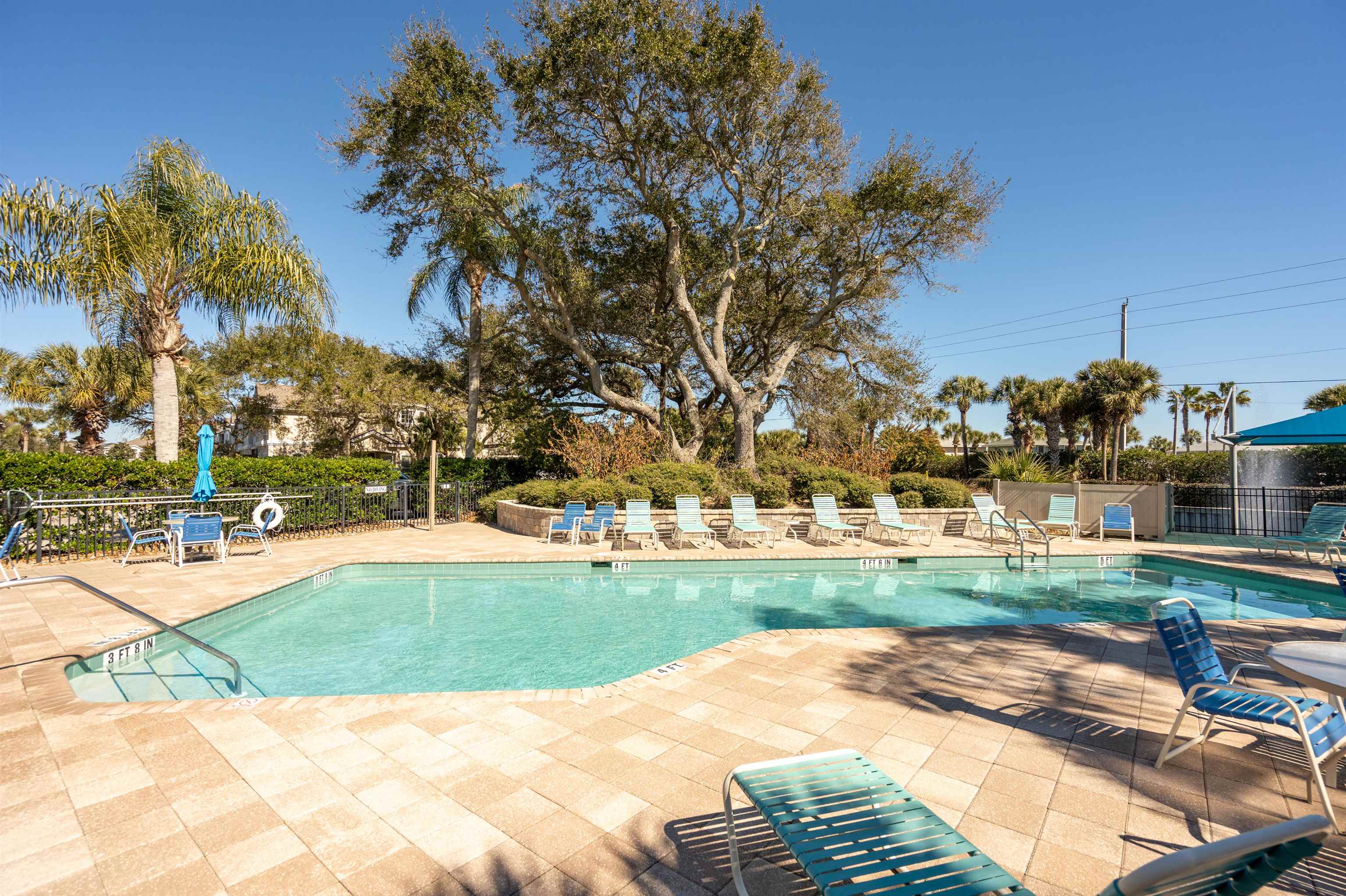 Welcome to the highly sought after Carriage Homes at Makarios - one of the most desirable gated communities on St. Augustine Beach. This beautifully maintained Dover floor plan offers the perfect blend of comfort, style, and coastal living, just steps from the ocean. This luxurious 3-bedroom, 2-bath residence has been meticulously cared for and recently painted, showcasing engineered oak flooring and a bright, open layout ideal for both everyday living and entertaining. The upgraded kitchen features stainless steel appliances, elegant tile countertops, a sunny breakfast nook, and a raised bar overlooking the formal dining area. The spacious living room boasts volume ceilings, abundant natural light, a fireplace, and access to a covered, screened balcony - perfect for enjoying your morning coffee while listening to the waves and coastal wildlife. The thoughtfully designed split-bedroom floor plan ensures privacy, with a serene owner’s suite featuring a walk-in closet, dual vanities, a tiled walk-in shower, and a separate tub. Additional highlights include a one-car garage, separate laundry room, generous storage, and spacious guest accommodations. Residents of Makarios enjoy resort-style amenities including two pools (one heated), a cabana for gatherings, beautifully maintained grounds, and ample guest parking. Walk or bike to the beach, the St. Augustine Beach Pier, local restaurants, shops, mini golf, concerts, and the popular farmers market. This pristine, move-in-ready home offers the ultimate beach lifestyle in a quiet, upscale community - you truly have to see it to appreciate it.