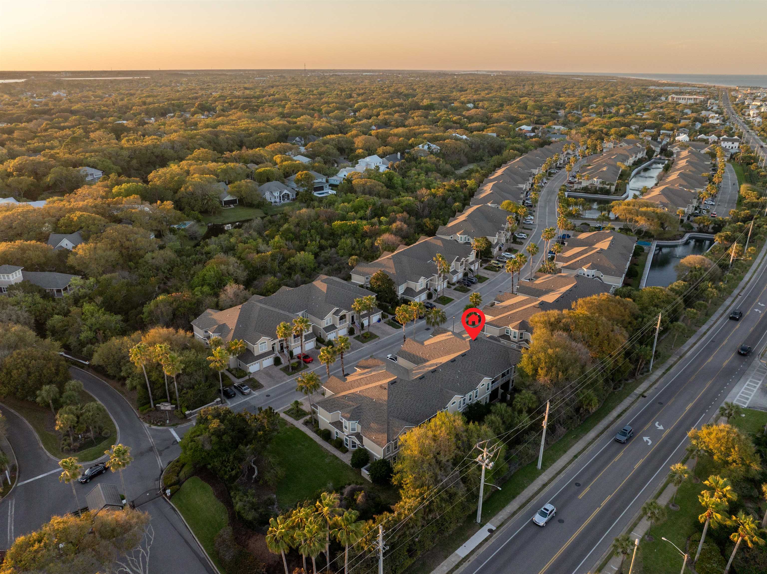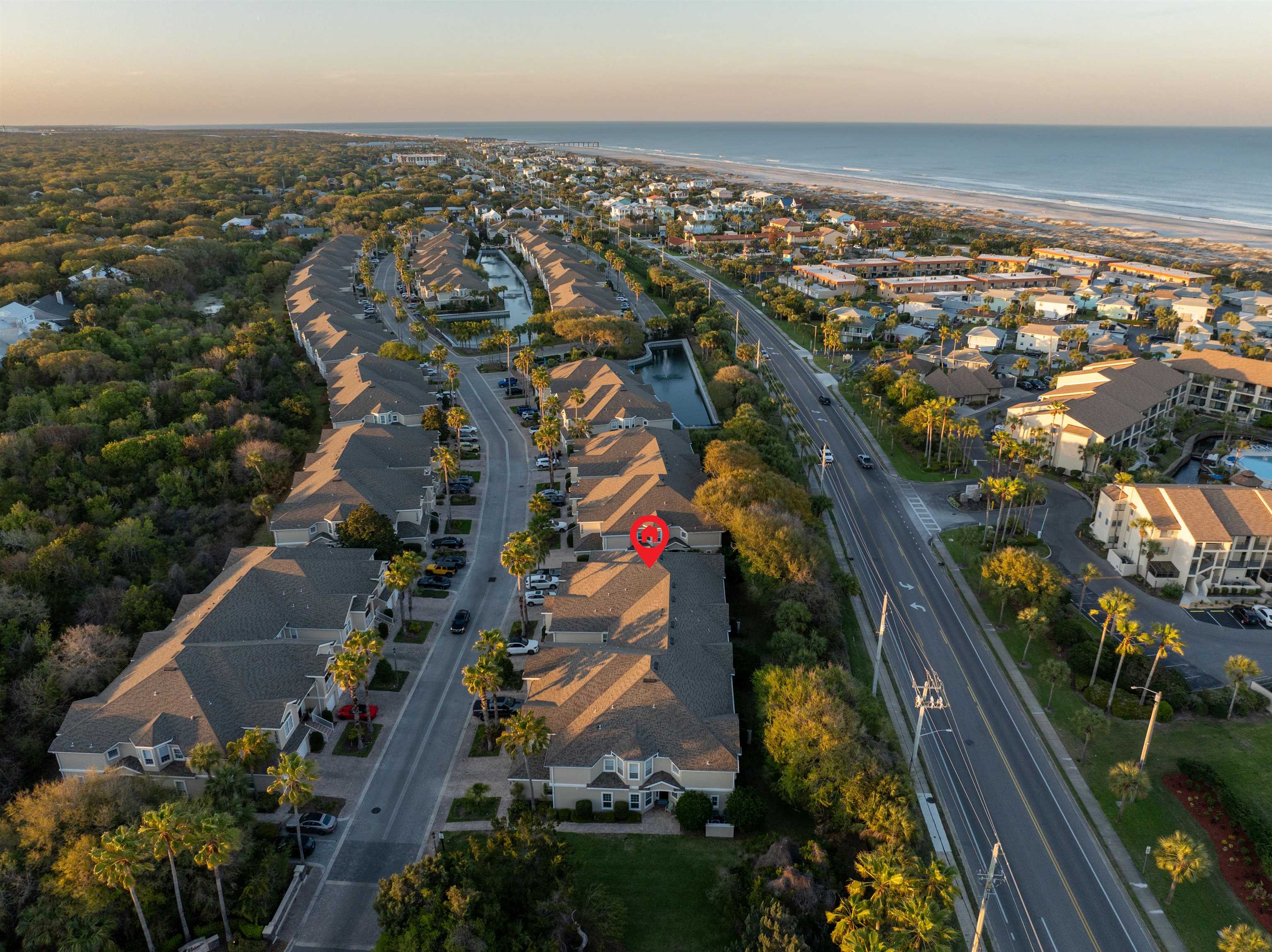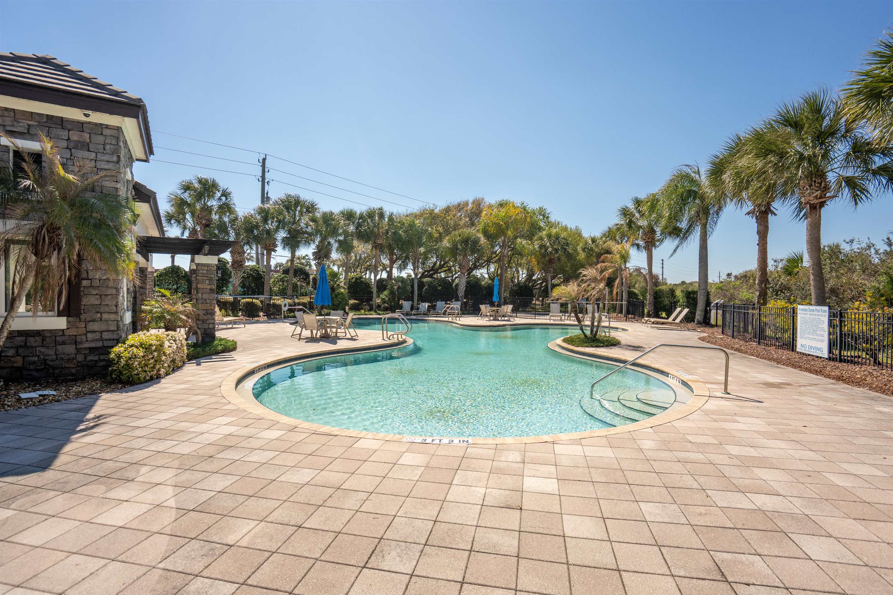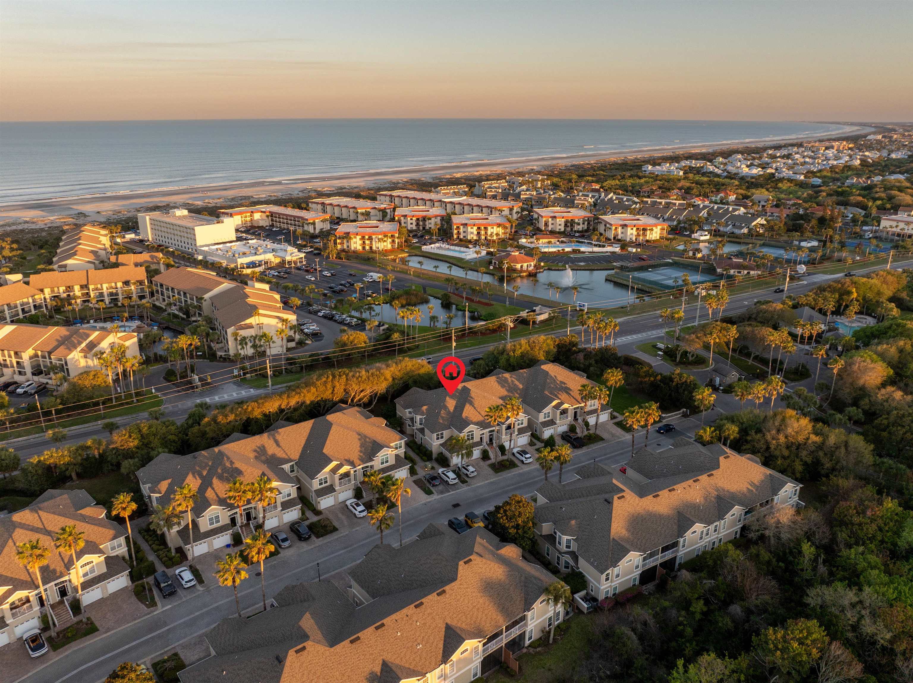 Welcome to the highly sought after Carriage Homes at Makarios - one of the most desirable gated communities on St. Augustine Beach. This beautifully maintained Dover floor plan offers the perfect blend of comfort, style, and coastal living, just steps from the ocean. This luxurious 3-bedroom, 2-bath residence has been meticulously cared for and recently painted, showcasing engineered oak flooring and a bright, open layout ideal for both everyday living and entertaining. The upgraded kitchen features stainless steel appliances, elegant tile countertops, a sunny breakfast nook, and a raised bar overlooking the formal dining area. The spacious living room boasts volume ceilings, abundant natural light, a fireplace, and access to a covered, screened balcony - perfect for enjoying your morning coffee while listening to the waves and coastal wildlife. The thoughtfully designed split-bedroom floor plan ensures privacy, with a serene owner’s suite featuring a walk-in closet, dual vanities, a tiled walk-in shower, and a separate tub. Additional highlights include a one-car garage, separate laundry room, generous storage, and spacious guest accommodations. Residents of Makarios enjoy resort-style amenities including two pools (one heated), a cabana for gatherings, beautifully maintained grounds, and ample guest parking. Walk or bike to the beach, the St. Augustine Beach Pier, local restaurants, shops, mini golf, concerts, and the popular farmers market. This pristine, move-in-ready home offers the ultimate beach lifestyle in a quiet, upscale community - you truly have to see it to appreciate it.