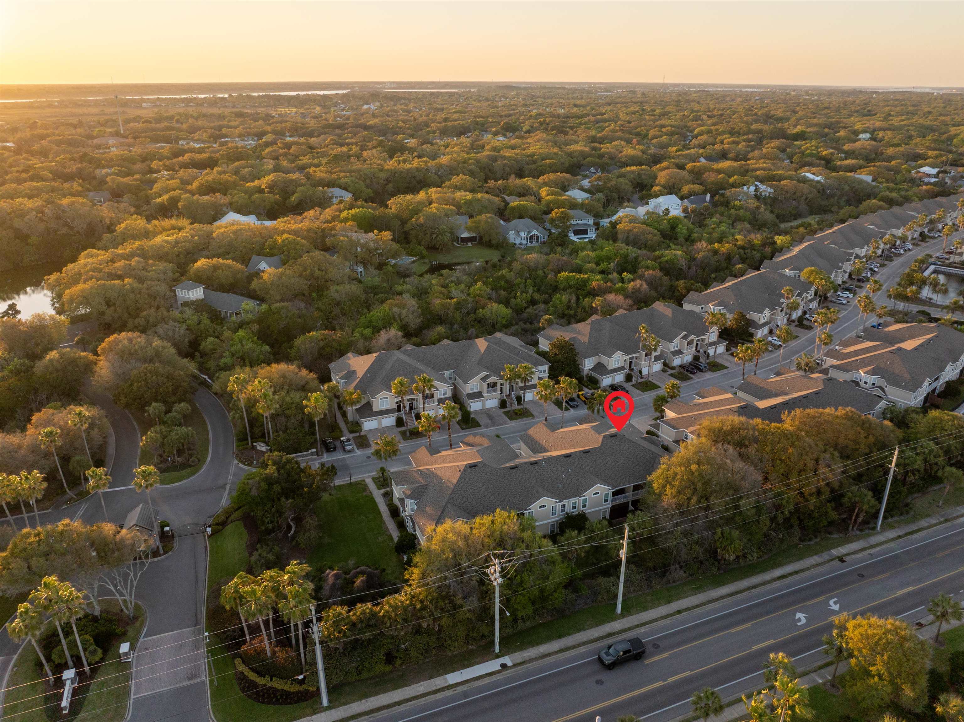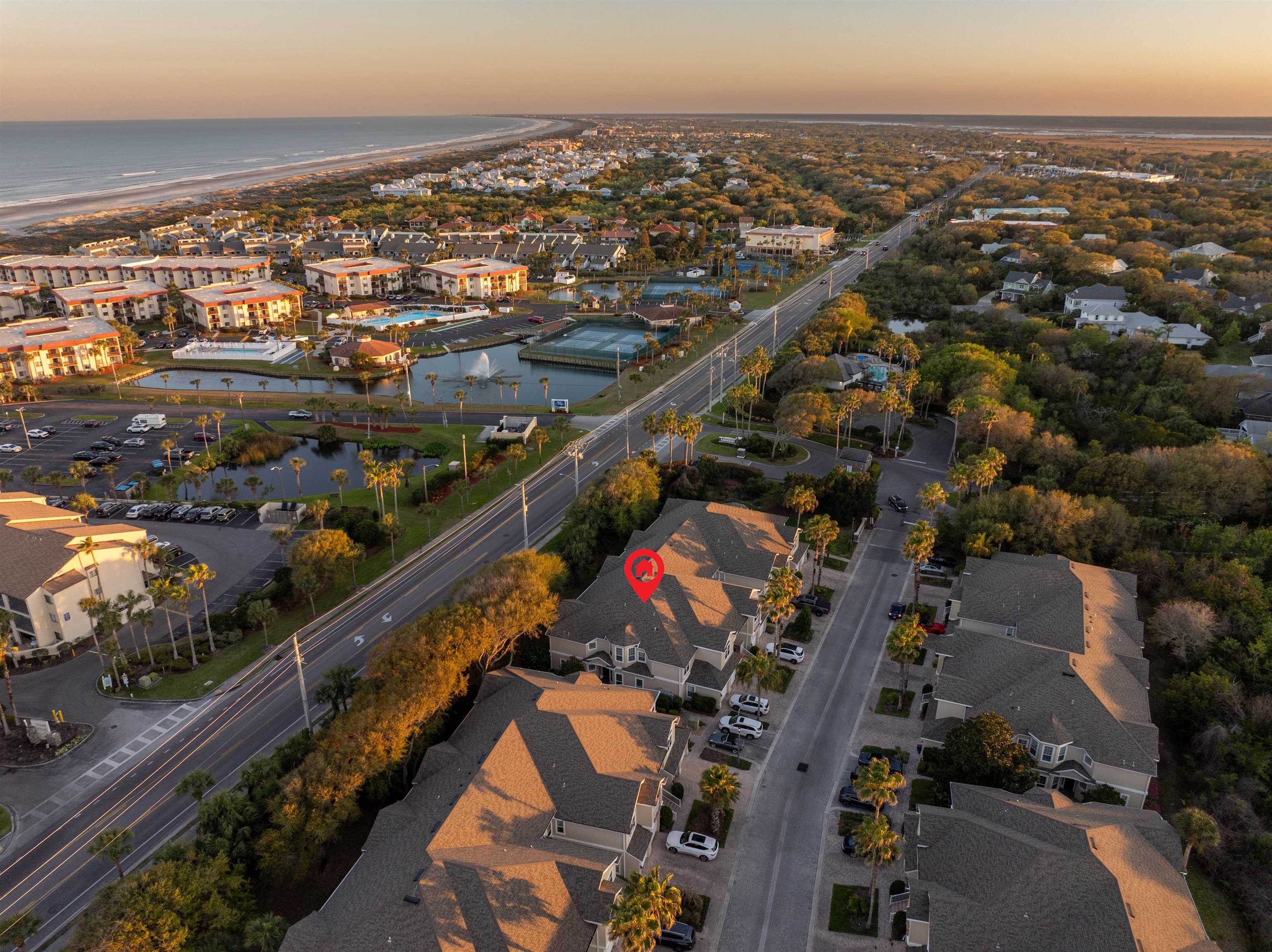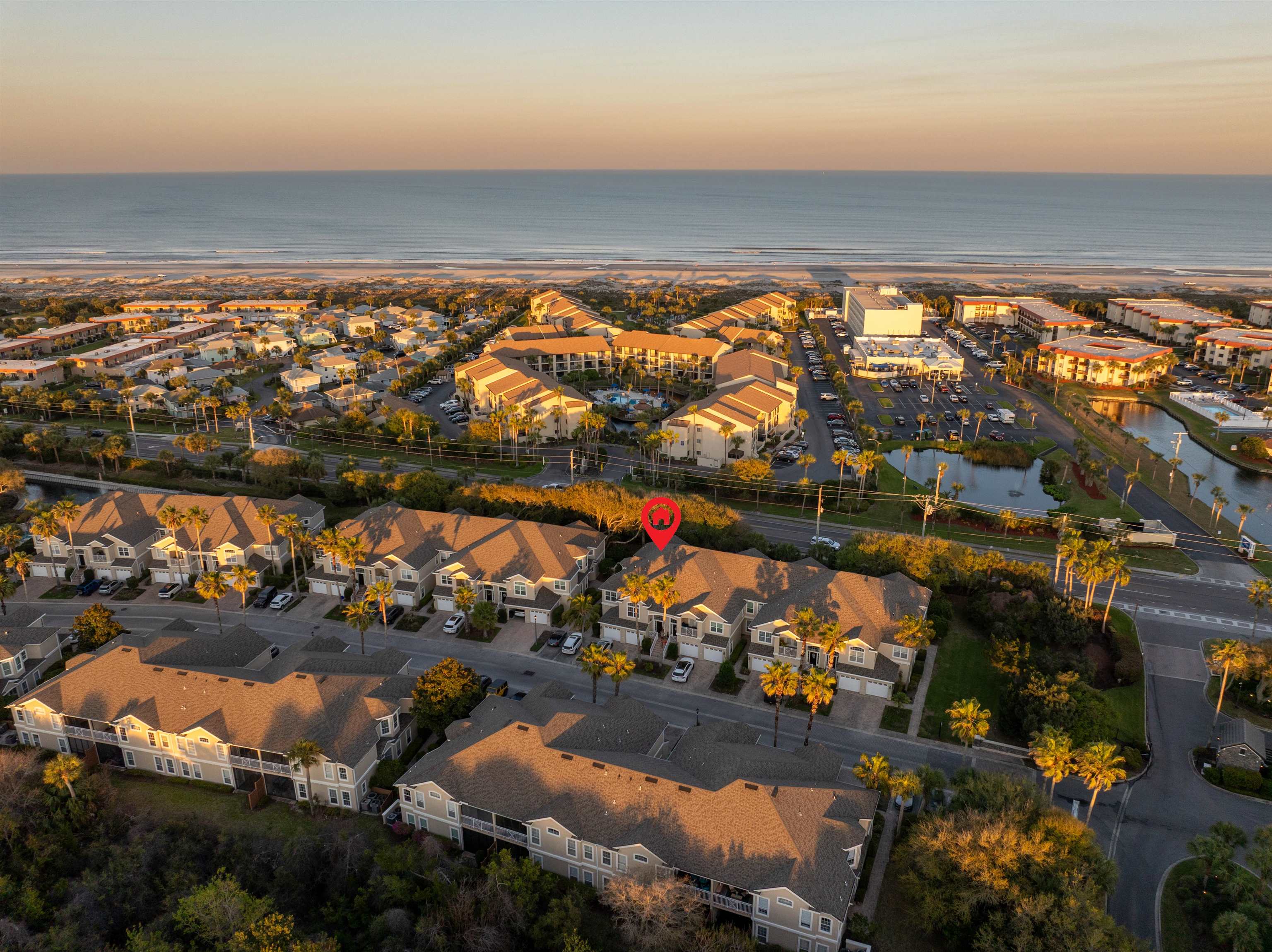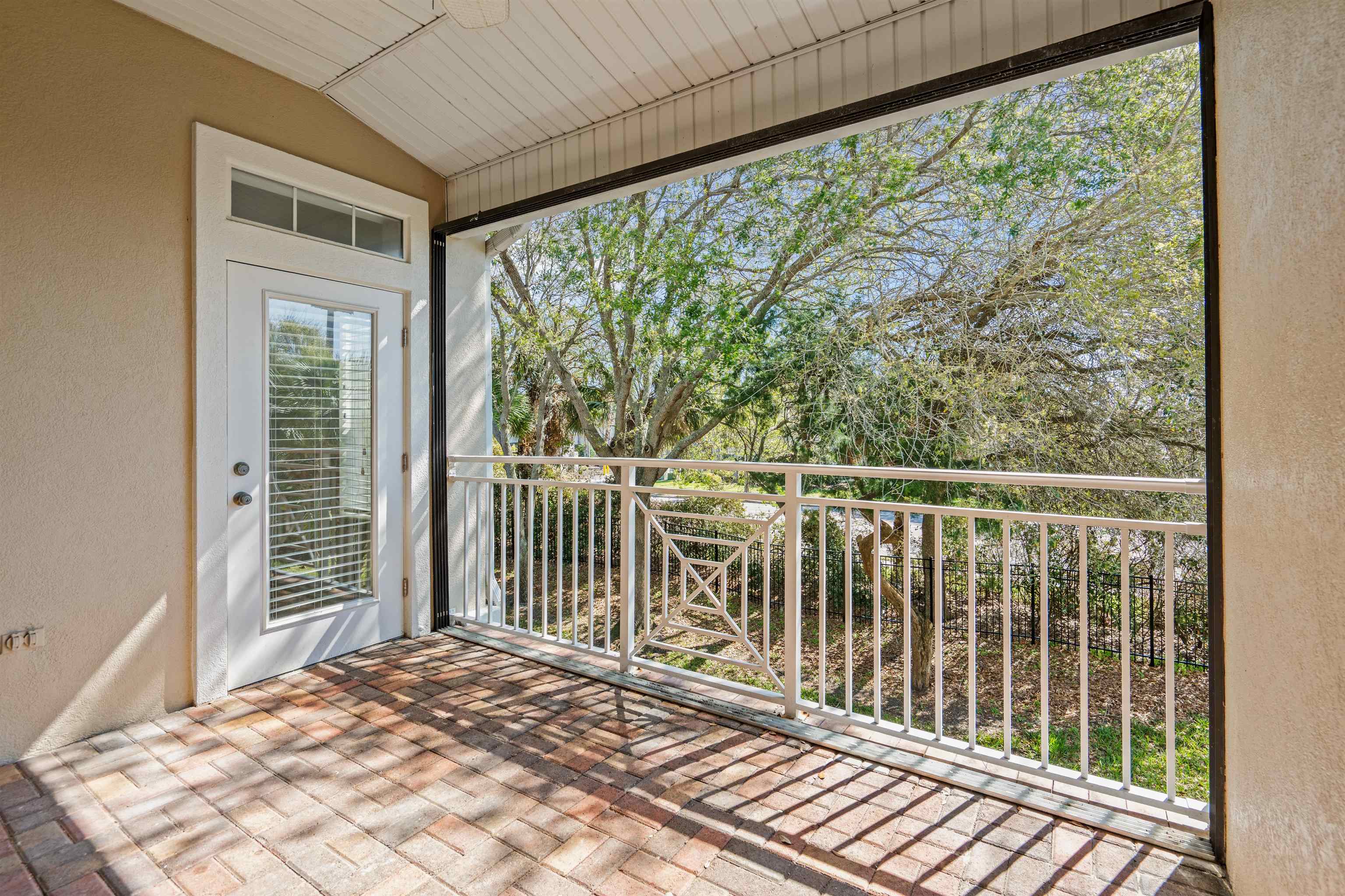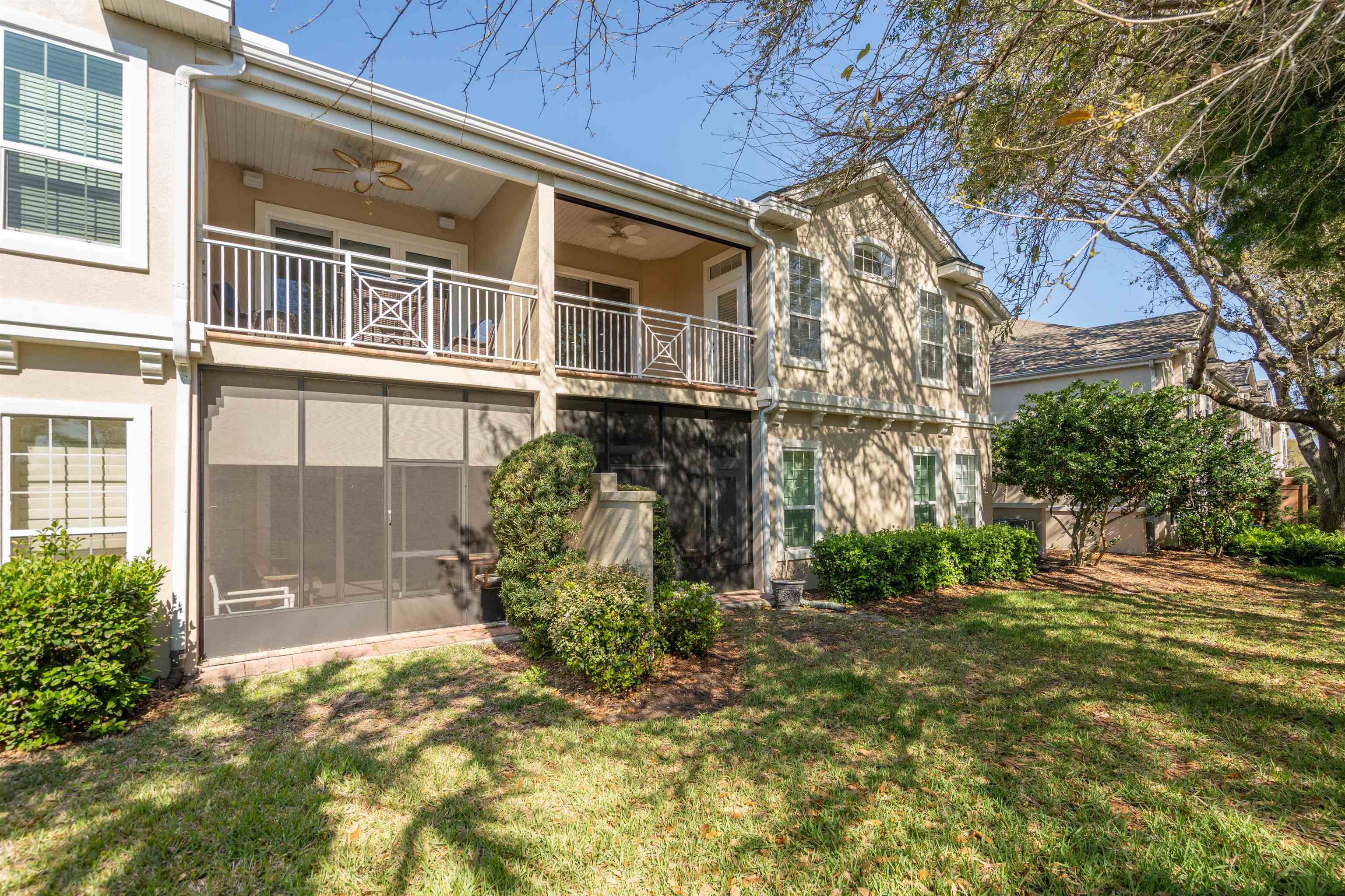 Welcome to the highly sought after Carriage Homes at Makarios - one of the most desirable gated communities on St. Augustine Beach. This beautifully maintained Dover floor plan offers the perfect blend of comfort, style, and coastal living, just steps from the ocean. This luxurious 3-bedroom, 2-bath residence has been meticulously cared for and recently painted, showcasing engineered oak flooring and a bright, open layout ideal for both everyday living and entertaining. The upgraded kitchen features stainless steel appliances, elegant tile countertops, a sunny breakfast nook, and a raised bar overlooking the formal dining area. The spacious living room boasts volume ceilings, abundant natural light, a fireplace, and access to a covered, screened balcony - perfect for enjoying your morning coffee while listening to the waves and coastal wildlife. The thoughtfully designed split-bedroom floor plan ensures privacy, with a serene owner’s suite featuring a walk-in closet, dual vanities, a tiled walk-in shower, and a separate tub. Additional highlights include a one-car garage, separate laundry room, generous storage, and spacious guest accommodations. Residents of Makarios enjoy resort-style amenities including two pools (one heated), a cabana for gatherings, beautifully maintained grounds, and ample guest parking. Walk or bike to the beach, the St. Augustine Beach Pier, local restaurants, shops, mini golf, concerts, and the popular farmers market. This pristine, move-in-ready home offers the ultimate beach lifestyle in a quiet, upscale community - you truly have to see it to appreciate it.