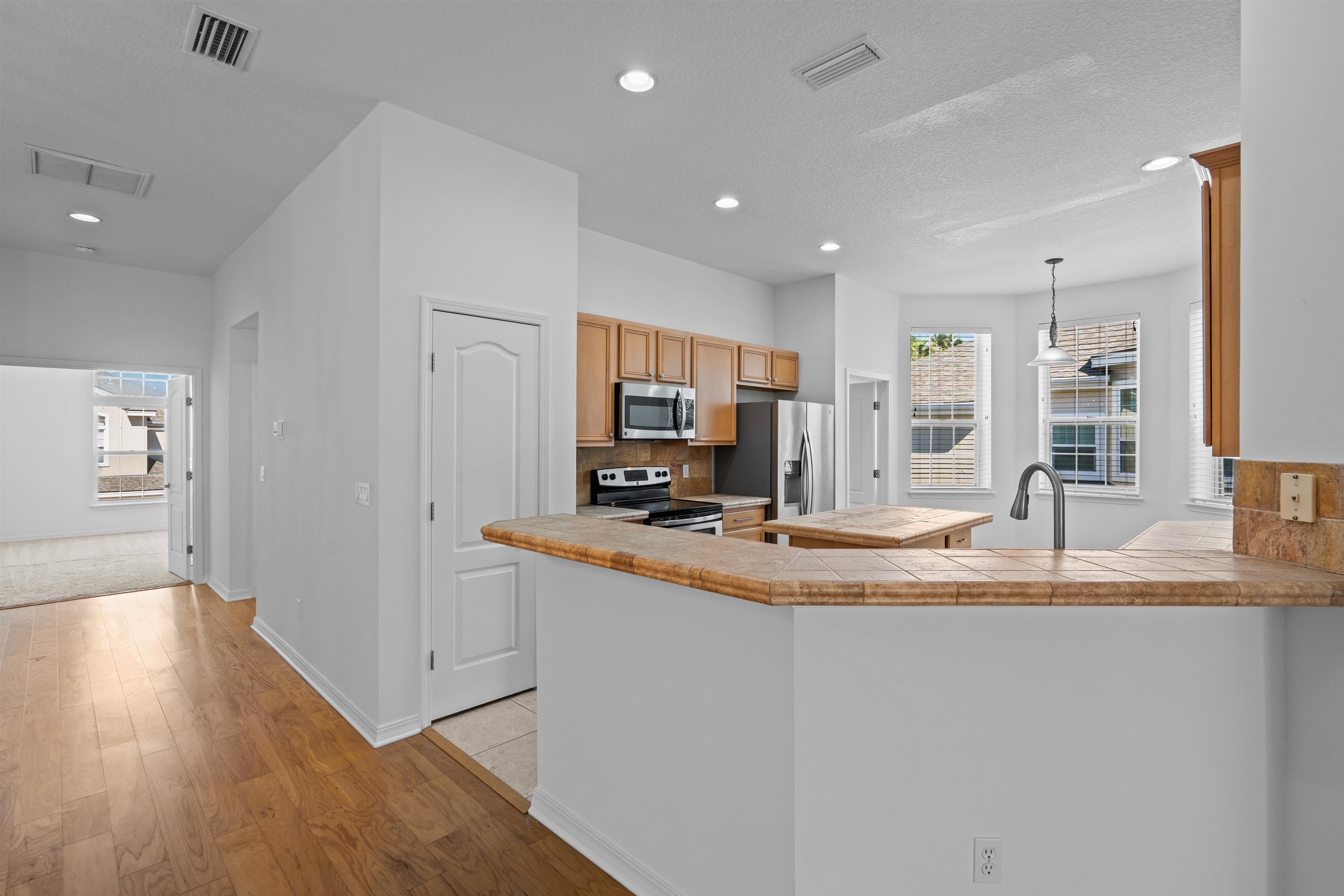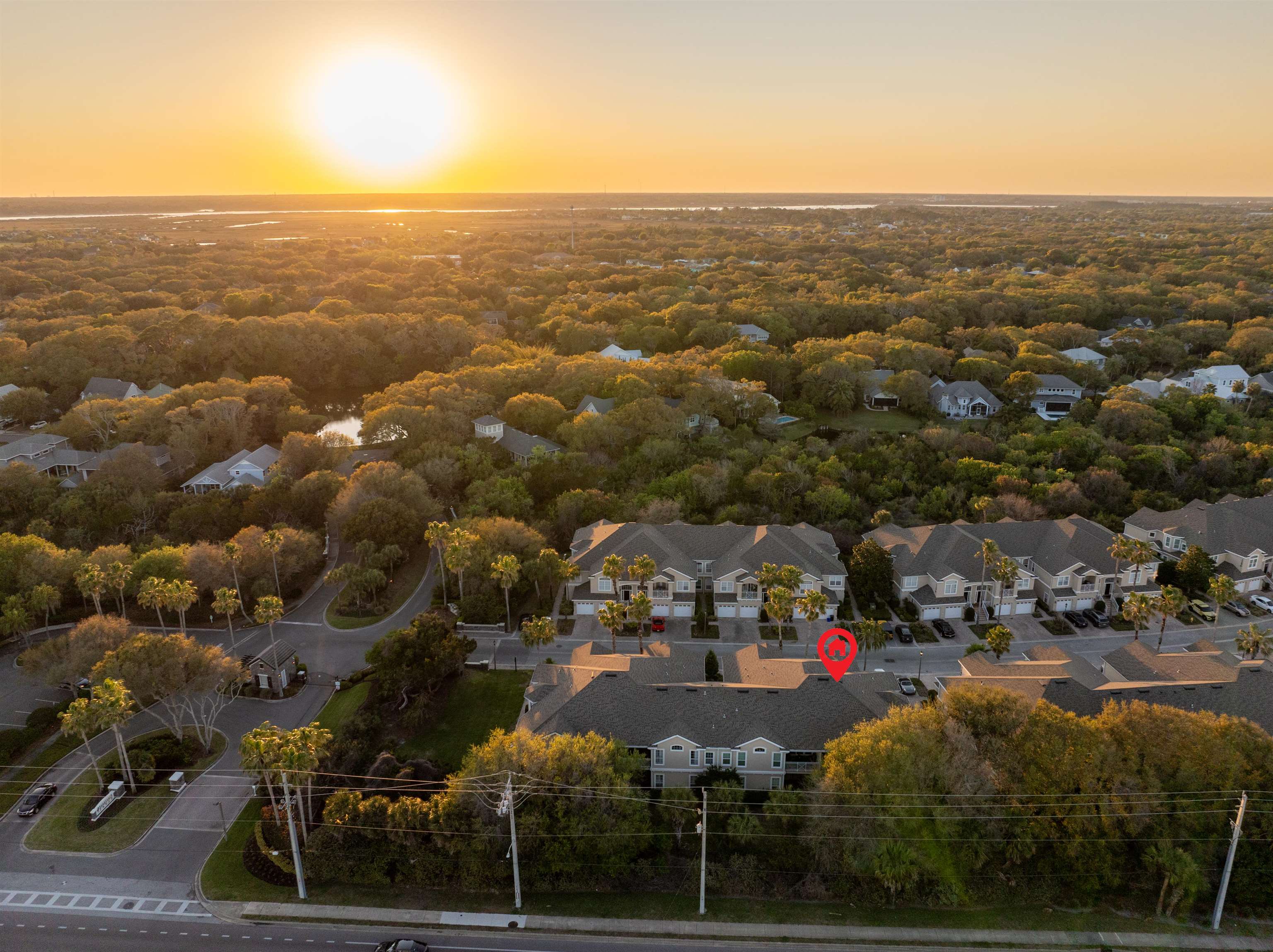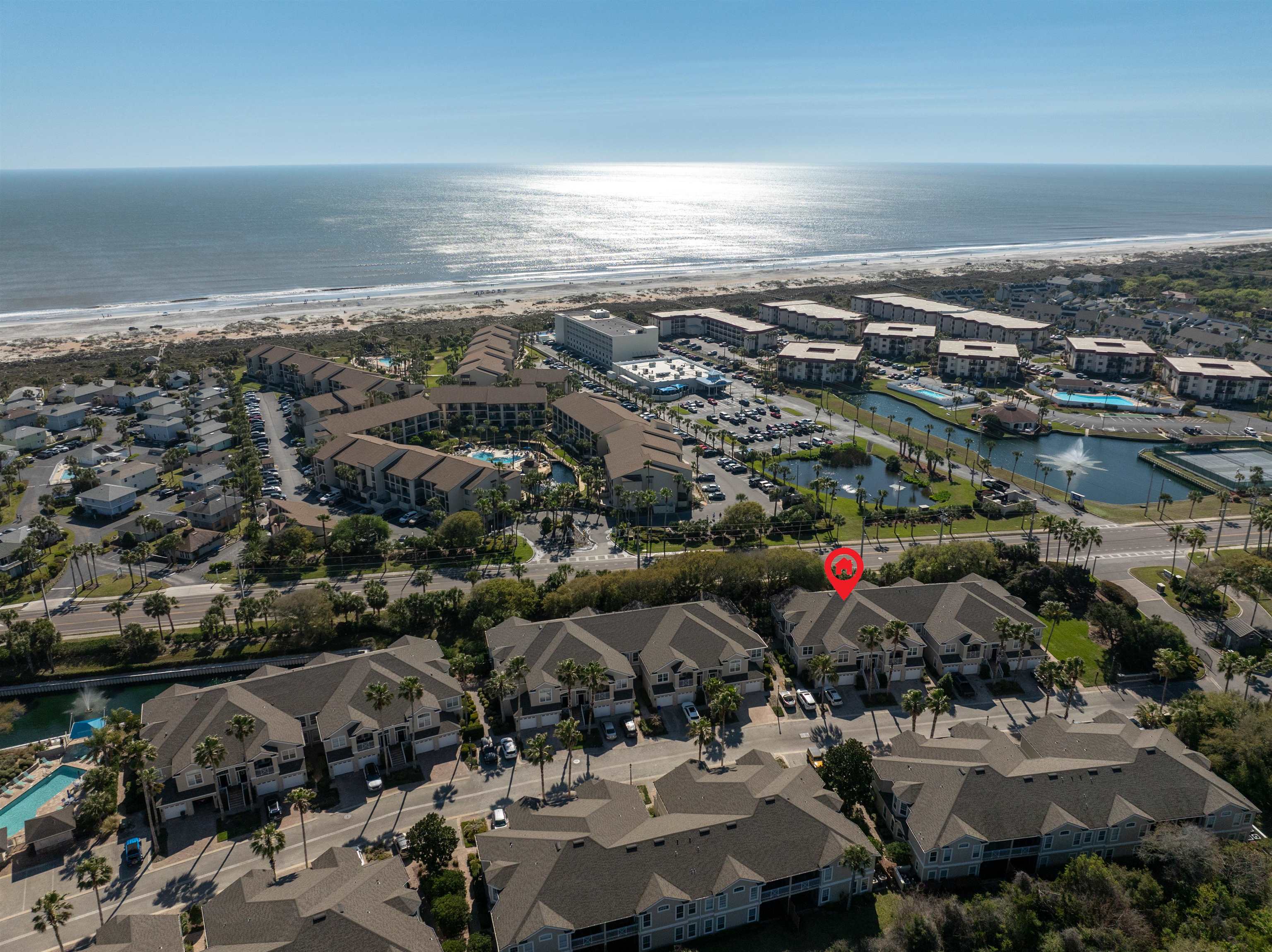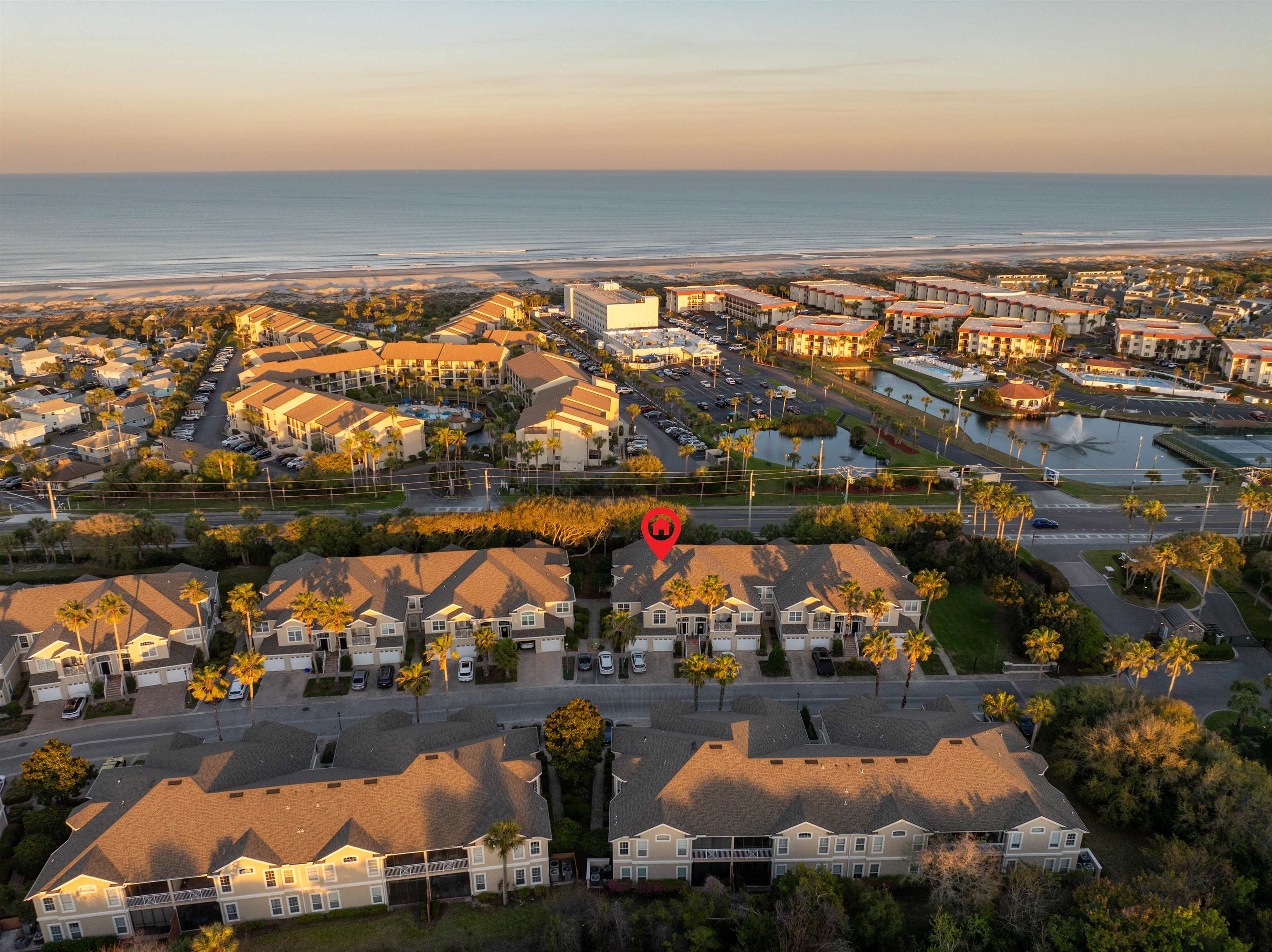 Welcome to the highly sought after Carriage Homes at Makarios - one of the most desirable gated communities on St. Augustine Beach. This beautifully maintained Dover floor plan offers the perfect blend of comfort, style, and coastal living, just steps from the ocean. This luxurious 3-bedroom, 2-bath residence has been meticulously cared for and recently painted, showcasing engineered oak flooring and a bright, open layout ideal for both everyday living and entertaining. The upgraded kitchen features stainless steel appliances, elegant tile countertops, a sunny breakfast nook, and a raised bar overlooking the formal dining area. The spacious living room boasts volume ceilings, abundant natural light, a fireplace, and access to a covered, screened balcony - perfect for enjoying your morning coffee while listening to the waves and coastal wildlife. The thoughtfully designed split-bedroom floor plan ensures privacy, with a serene owner’s suite featuring a walk-in closet, dual vanities, a tiled walk-in shower, and a separate tub. Additional highlights include a one-car garage, separate laundry room, generous storage, and spacious guest accommodations. Residents of Makarios enjoy resort-style amenities including two pools (one heated), a cabana for gatherings, beautifully maintained grounds, and ample guest parking. Walk or bike to the beach, the St. Augustine Beach Pier, local restaurants, shops, mini golf, concerts, and the popular farmers market. This pristine, move-in-ready home offers the ultimate beach lifestyle in a quiet, upscale community - you truly have to see it to appreciate it.