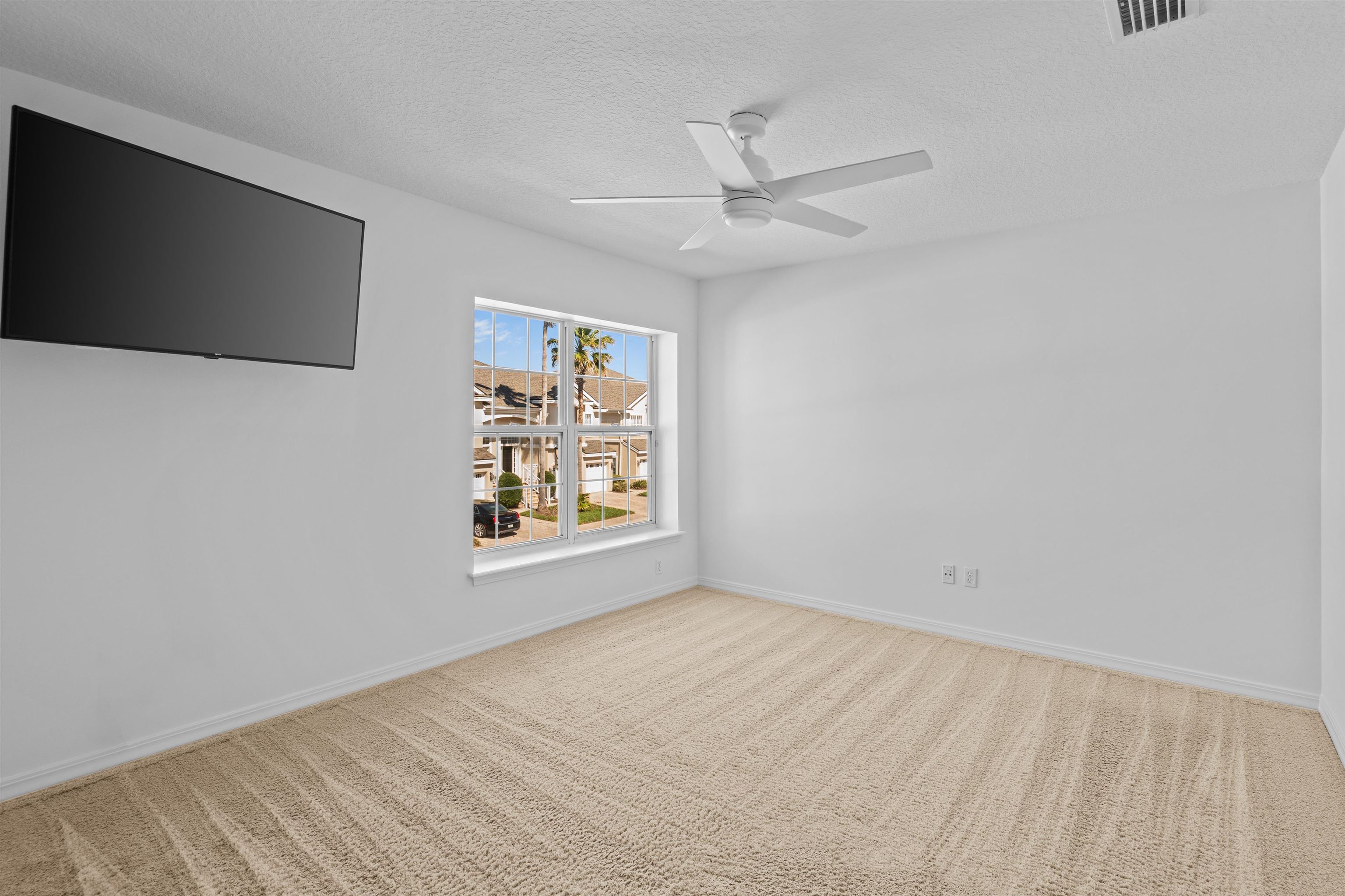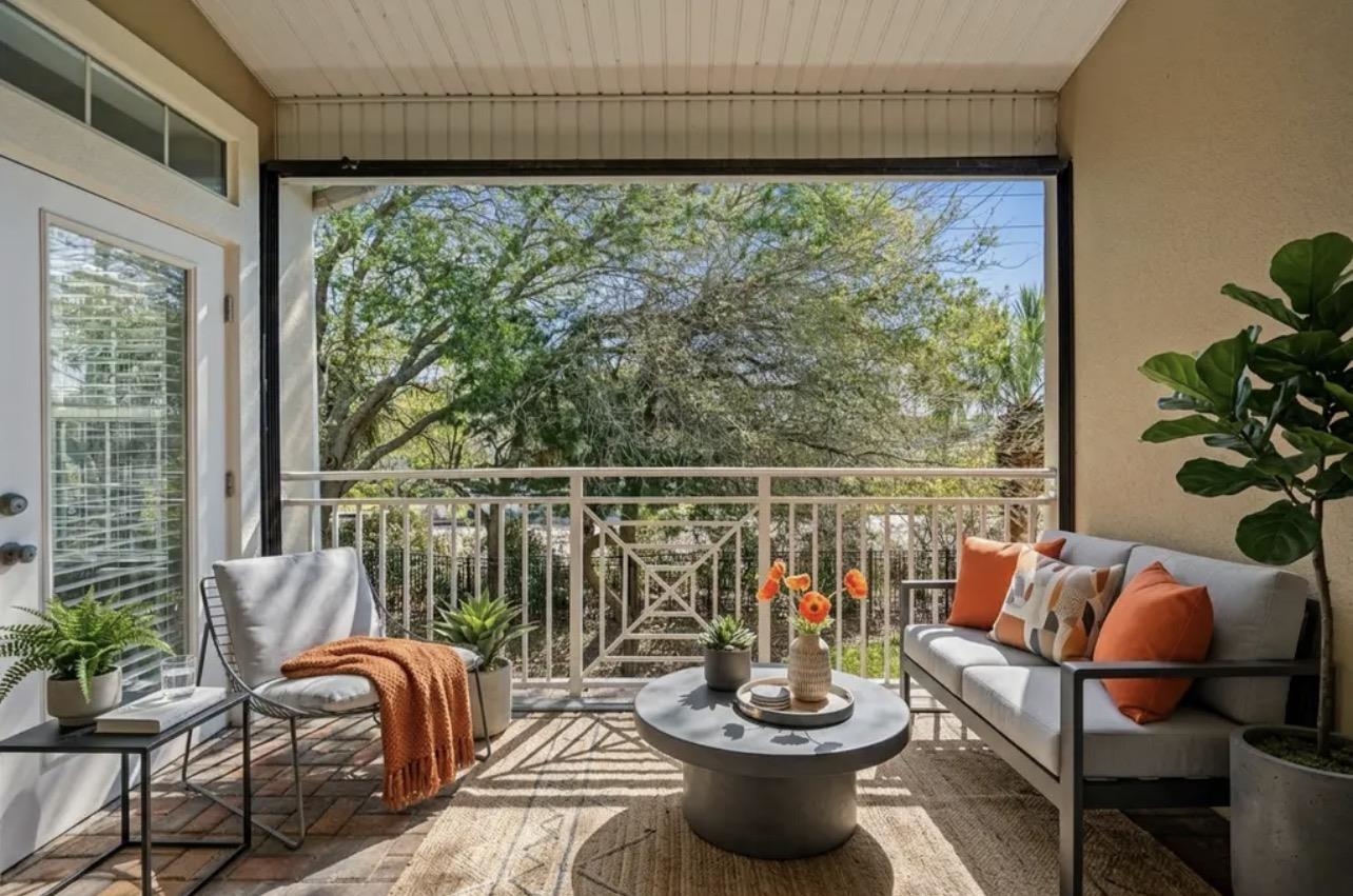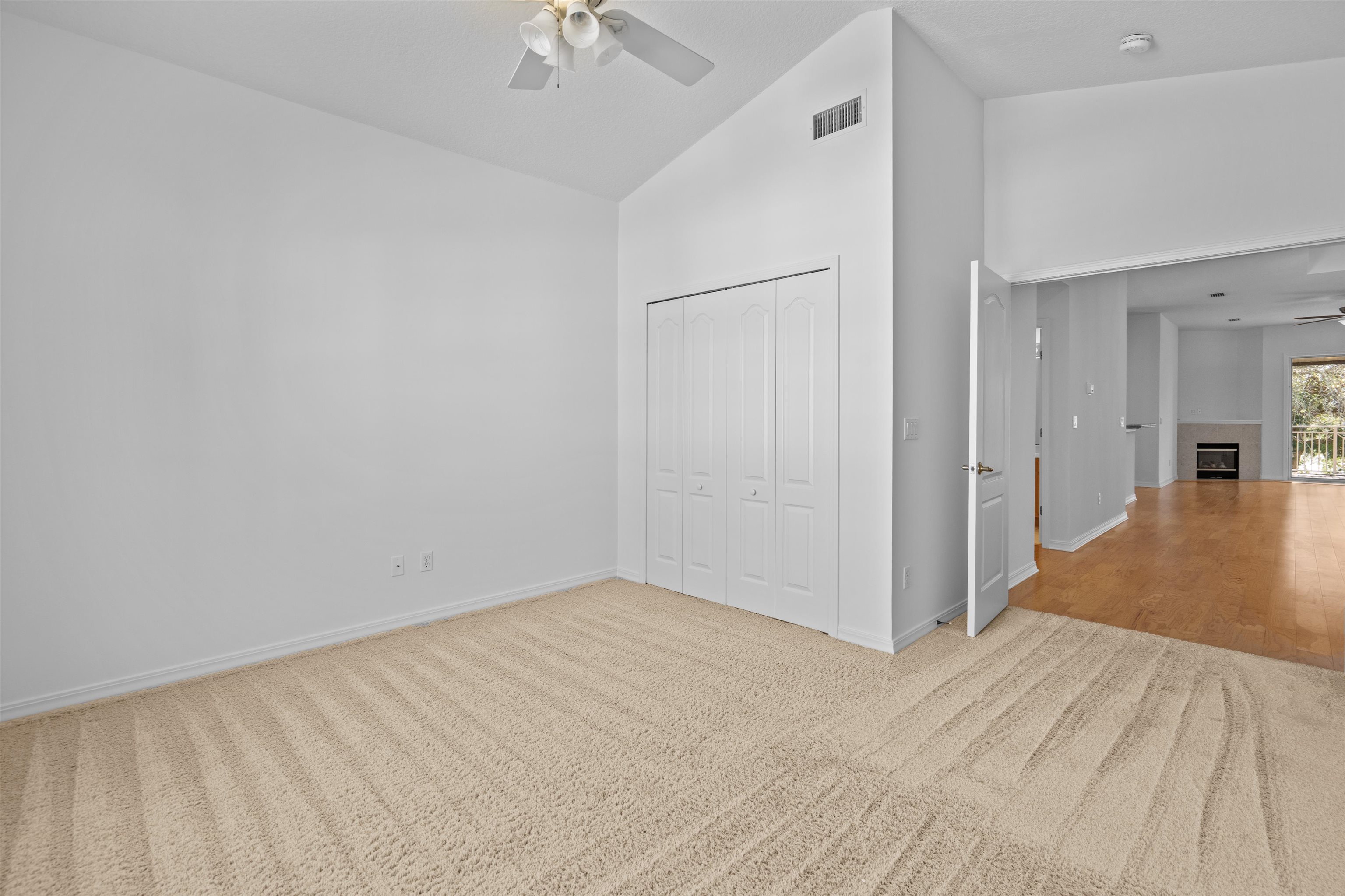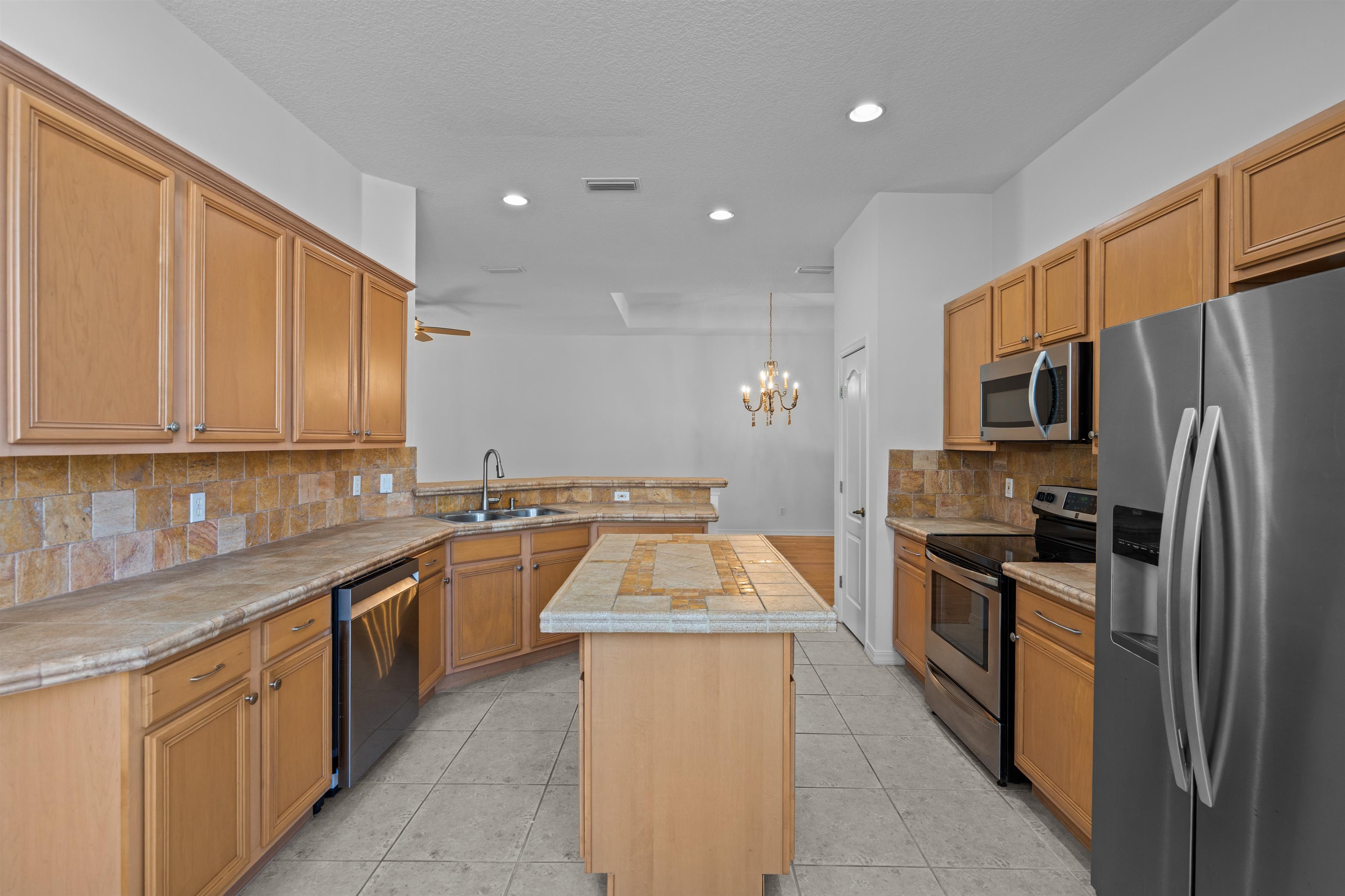 Welcome to the highly sought after Carriage Homes at Makarios - one of the most desirable gated communities on St. Augustine Beach. This beautifully maintained Dover floor plan offers the perfect blend of comfort, style, and coastal living, just steps from the ocean. This luxurious 3-bedroom, 2-bath residence has been meticulously cared for and recently painted, showcasing engineered oak flooring and a bright, open layout ideal for both everyday living and entertaining. The upgraded kitchen features stainless steel appliances, elegant tile countertops, a sunny breakfast nook, and a raised bar overlooking the formal dining area. The spacious living room boasts volume ceilings, abundant natural light, a fireplace, and access to a covered, screened balcony - perfect for enjoying your morning coffee while listening to the waves and coastal wildlife. The thoughtfully designed split-bedroom floor plan ensures privacy, with a serene owner’s suite featuring a walk-in closet, dual vanities, a tiled walk-in shower, and a separate tub. Additional highlights include a one-car garage, separate laundry room, generous storage, and spacious guest accommodations. Residents of Makarios enjoy resort-style amenities including two pools (one heated), a cabana for gatherings, beautifully maintained grounds, and ample guest parking. Walk or bike to the beach, the St. Augustine Beach Pier, local restaurants, shops, mini golf, concerts, and the popular farmers market. This pristine, move-in-ready home offers the ultimate beach lifestyle in a quiet, upscale community - you truly have to see it to appreciate it.