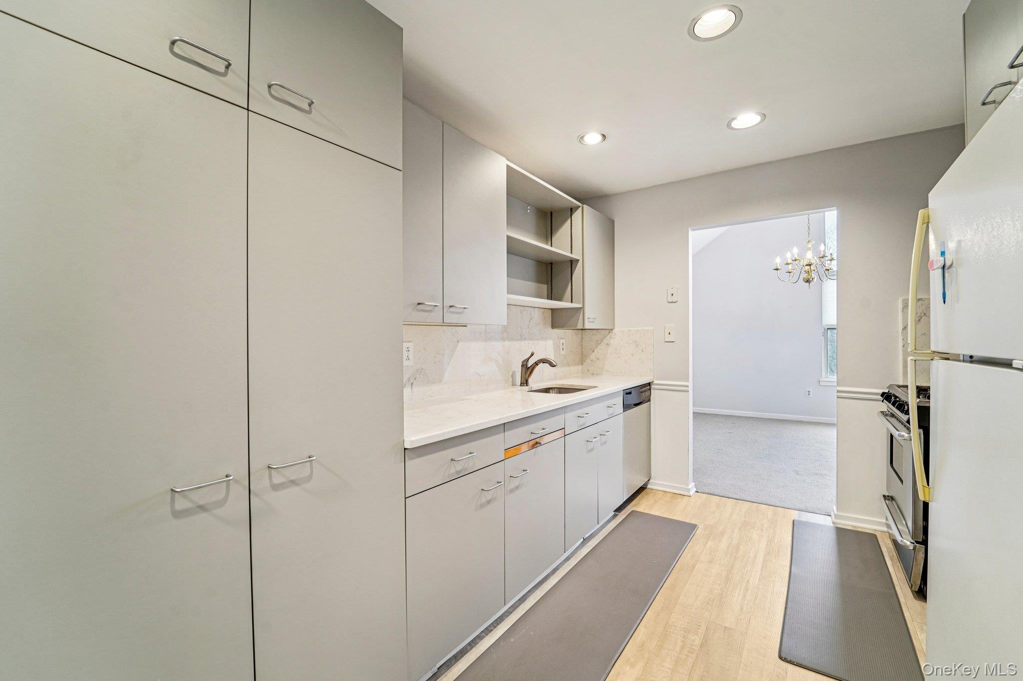 Welcome to this beautifully updated 2-bedroom, 2 full bathroom end-unit located in the highly sought-after Cromwell Hill Commons. Ideally situated for commuters, this desirable community offers low taxes and exceptional amenities including a clubhouse and in-ground pool—perfect for relaxing after a long day or enjoying weekends close to home. Inside, the home features an inviting open-concept layout with abundant natural light. The updated kitchen is equipped with quartz countertops and backsplash and a convenient eat-in area for casual dining. A formal dining room with a vaulted ceiling provides additional space for entertaining and gatherings. The spacious living room is highlighted by a cozy wood-burning fireplace and sliding glass doors that lead to a private balcony. The primary bedroom includes an en suite bath with two separate vanities and two separate closets. A fully renovated hall bathroom serves the second bedroom and guests. Additional updates include a new furnace and water heater! There is a stackable washer/dryer in the hall as well as central air, gas appliances, and municipal water and sewer offering added comfort, efficiency and low-maintenance living. Ample storage is available throughout, including multiple closets, a pantry and a private storage area in the common basement. Conveniently located near public transportation to NYC, Routes 17 and the NYS Thruway, Woodbury Commons Premium Outlets, and a variety of dining and shopping options, this property checks all the boxes!