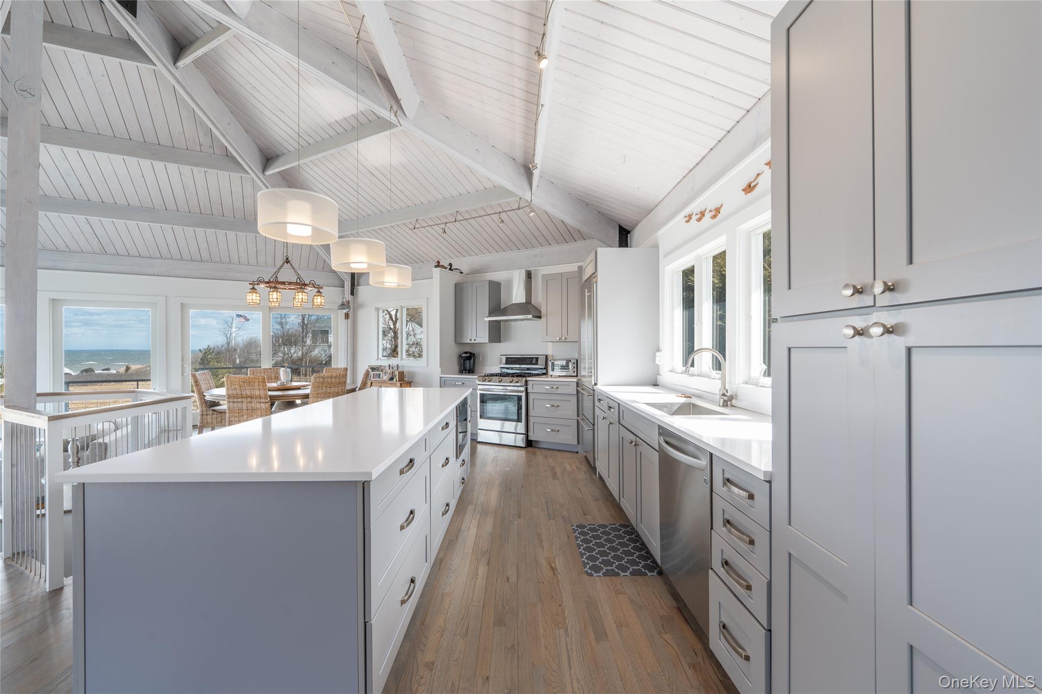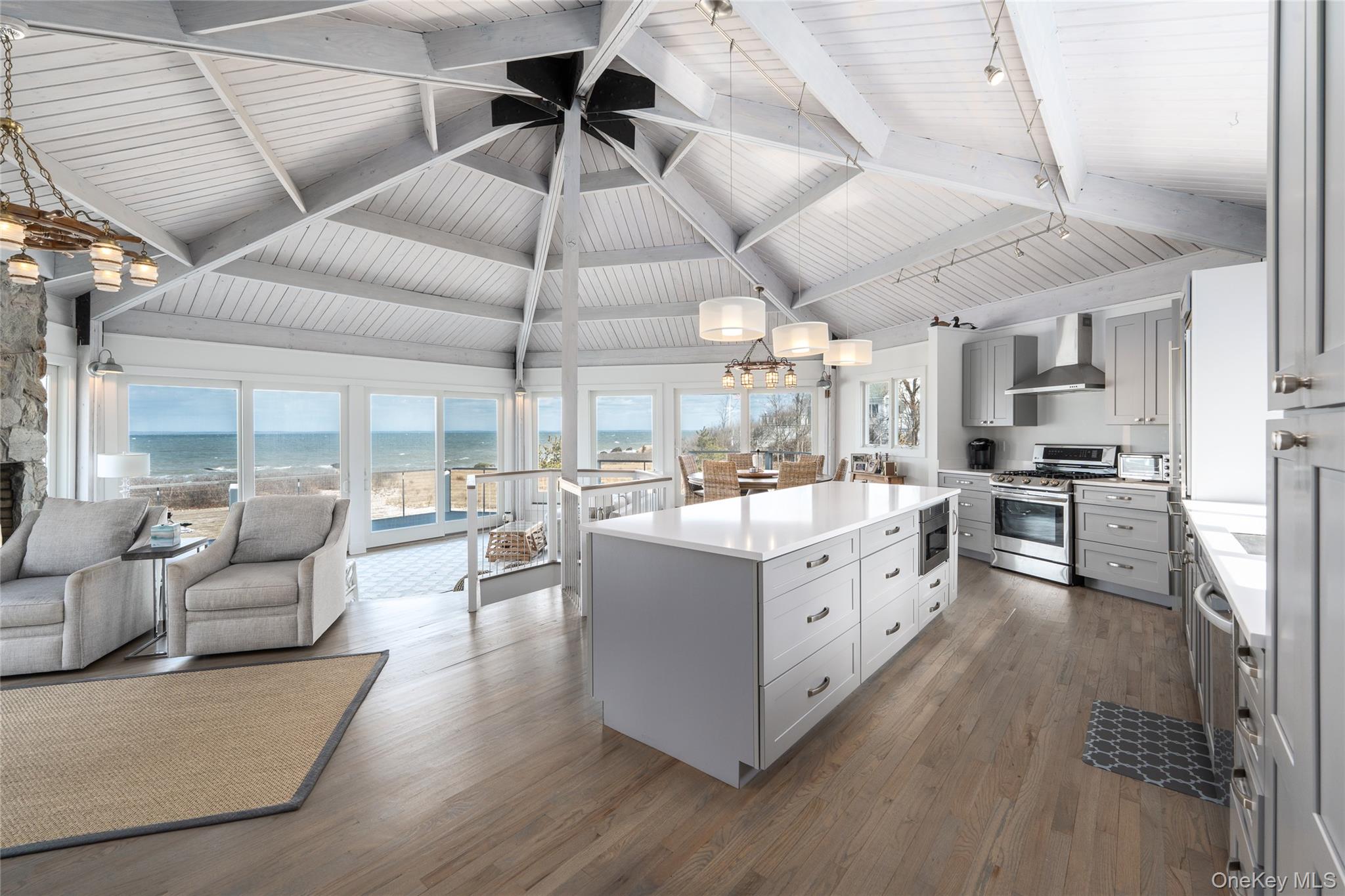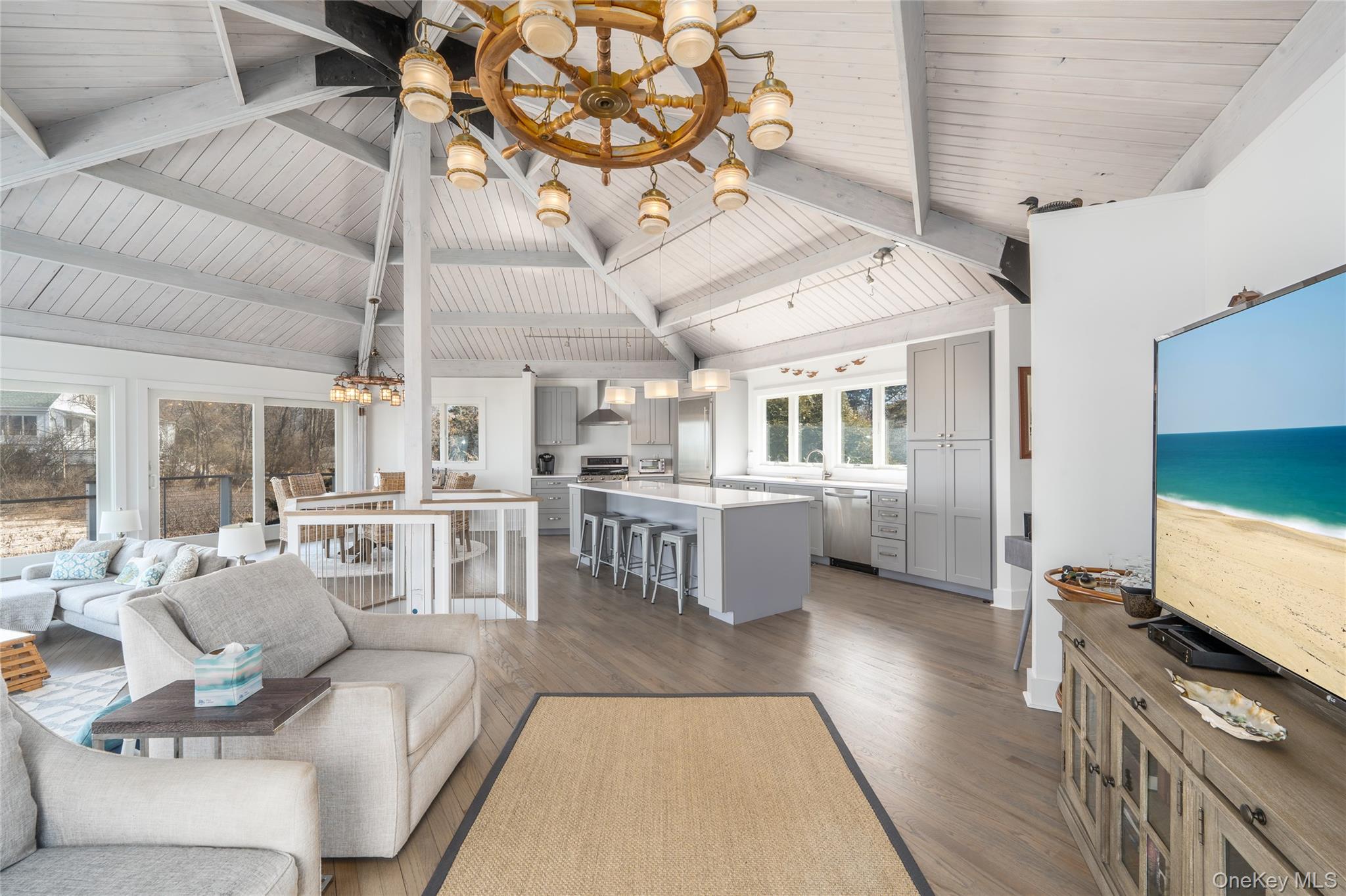 Beautiful, expansive soundfront retreat offering rare, direct waterfront access with no bluff and sweeping 180-degree panoramic views. Set on . 75 acres, this exceptional 3-bedroom, 2-bath home features a waterside gunite pool perfectly positioned to capture breathtaking sunsets over the Sound. The interior showcases modern finishes and an open-concept layout designed for effortless indoor-outdoor living, ideal for both relaxed summer getaways and comfortable year-round living. Large windows flood the home with natural light while framing the stunning water views throughout. Ideally located in Greenport, just moments from pristine beaches, charming shops, and renowned restaurants, this meticulously maintained property delivers a seamless blend of privacy, convenience, and coastal elegance.