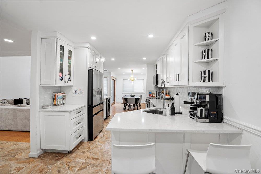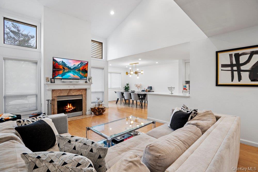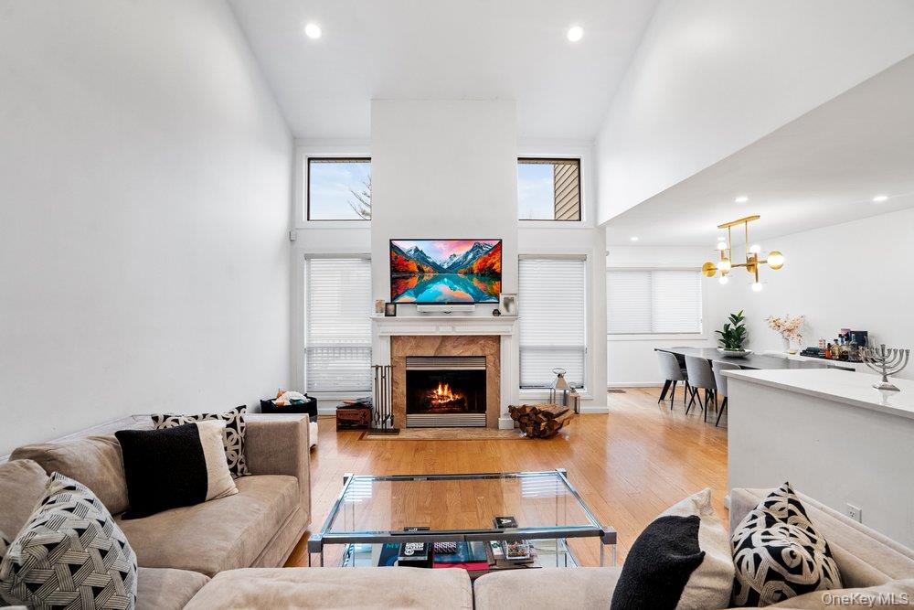 Welcome to this beautifully renovated Briarwood model, a highly desirable end unit offering 4 bedrooms and 3. 5 baths in the sought-after Woodbury Greens. This sun-filled home showcases a sleek, modern aesthetic throughout and features stunning water and pond views, best enjoyed from your private terrace. The designer eat-in kitchen is outfitted with custom cabinetry, granite countertops, and contemporary finishes—perfectly blending style and functionality for everyday living and entertaining. The spacious living room is anchored by a chic fireplace, creating a warm yet sophisticated ambiance. The oversized primary suite offers exceptional comfort and privacy with a refined, modern feel. A full finished basement provides versatile living space—ideal for a recreation room, home office, gym, or guest quarters. Additional highlights include a two-car garage, low monthly HOA fees, and access to resort-style amenities including a pool and tennis courts. A rare opportunity to own a turnkey end unit with breathtaking water views in one of Woodbury Greens’ most desirable settings.