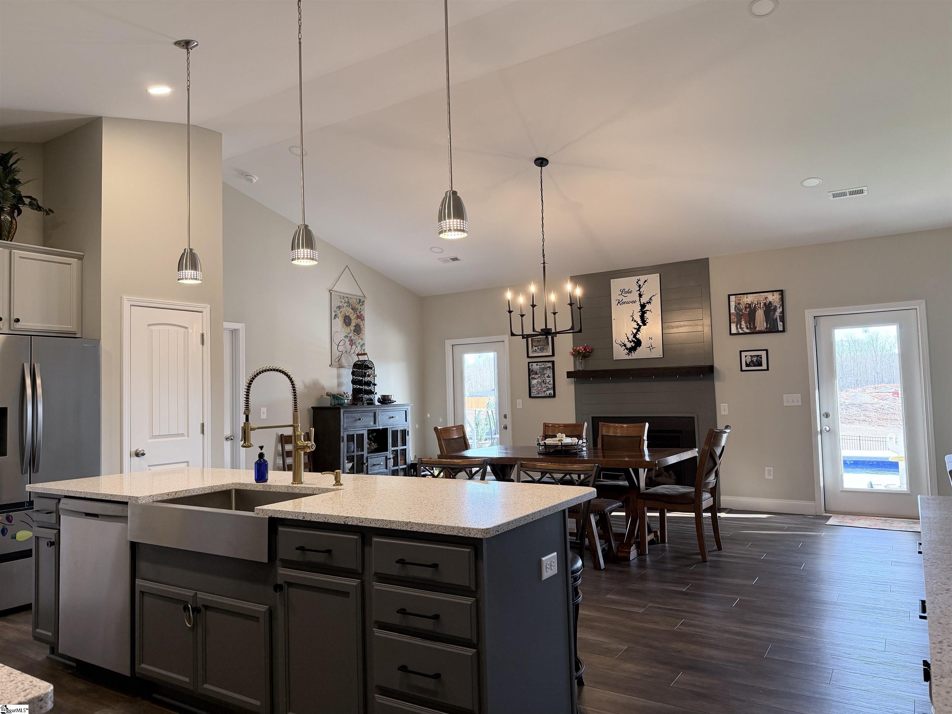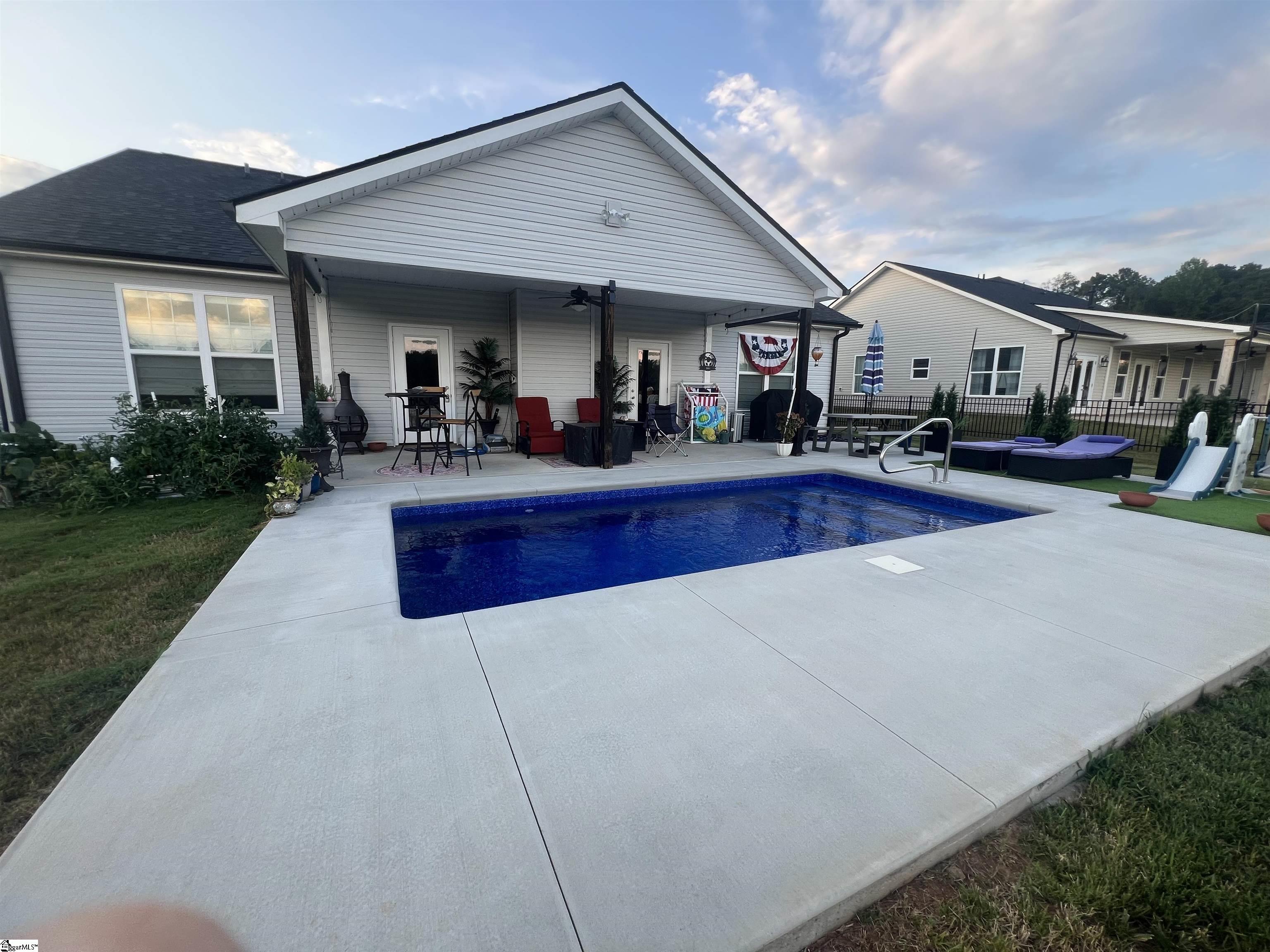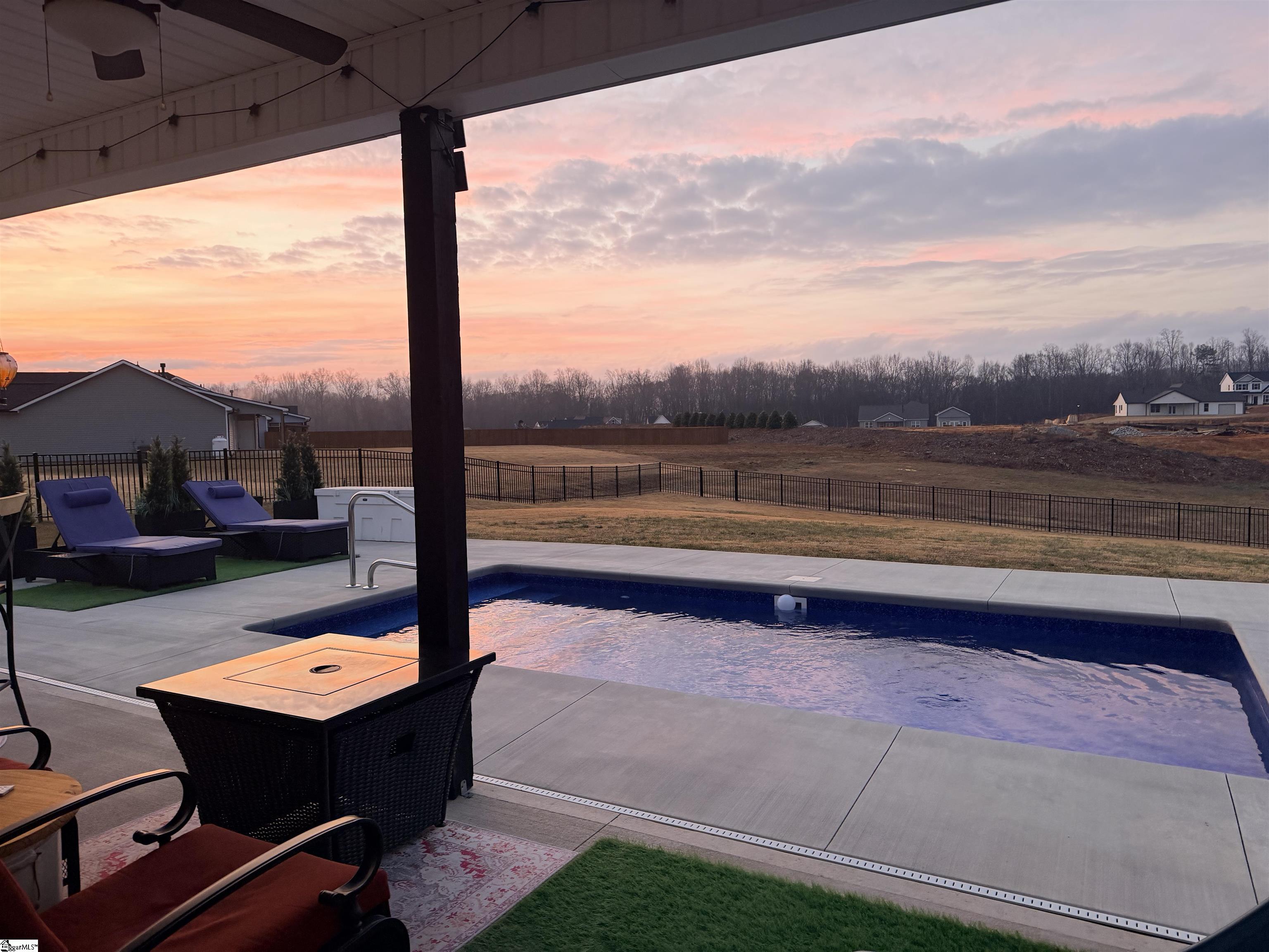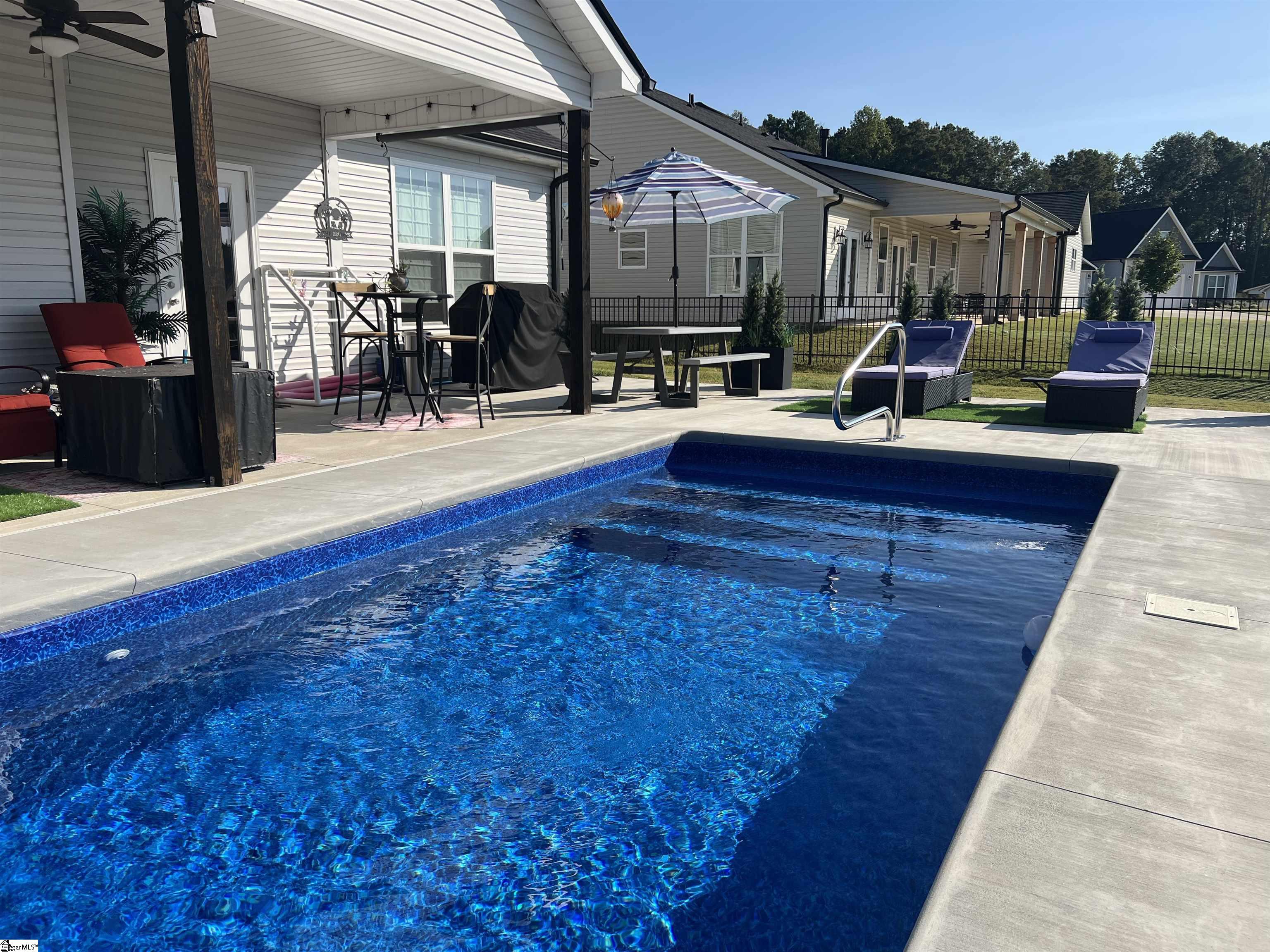 Better than New! Only two years young, this thoughtfully designed home offers a bright, open layout with the kind of comfort and flexibility today’s buyers are looking for. From the moment you step inside, you’ll notice the natural light pouring through oversized windows and the inviting feel that makes everyone who visits fall in love. Just off the entry, a private office with French doors creates the perfect work-from-home space or quiet retreat. The heart of the home is the stunning kitchen—featuring nearly 20 feet of quartz countertops, a large center island, custom cabinetry, tile backsplash, pantry, and upgraded stainless appliances including a double oven range and french door refrigerator. Conveniently located steps from the garage, unloading groceries is effortless. The main-level primary suite is a relaxing escape with a tray ceiling, spacious walk-in closet, and a spa-like bath complete with double vanities, soaking tub, separate shower, and private water closet. The main living areas are designed for both everyday living and entertaining, with vaulted ceilings, a cozy gas fireplace, and two glass doors that open seamlessly to the covered back porch and private pool area. The current owners have customized the use of the dining and living spaces to best suit their lifestyle—offering flexibility for how you choose to live and entertain. Two additional bedrooms and a full bath complete the main floor. Upstairs, you’ll find an ideal guest or multi-generational suite featuring a large bedroom, private bath, and separate living area—perfect for extended stays or added privacy. Step outside and enjoy your own backyard retreat. The saltwater plunge pool is refreshing, low-maintenance, and perfect for relaxing or entertaining. The covered porch and spacious patio create an ideal outdoor living space, while black aluminum fencing encloses a generous portion of the yard. Beyond the fence, additional property offers endless possibilities—garden, orchard, or simply extra space to enjoy. Additional highlights include: Wired for a backup generator, 30-amp RV hookup, and garage heater. Numerous upgrades throughout (full list available). Located in Legacy Farms, an intimate community of fewer than 80 homes, you’ll enjoy a peaceful setting just minutes from Pickens and Liberty, and just 30 minutes to downtown Greenville, Clemson, Anderson, and outdoor adventures at Table Rock State Park. If you’ve been waiting for a home that truly has it all—this is the one to see in person. Sellers willing to assist with closing costs! Owner is a licensed South Carolina Realtor.