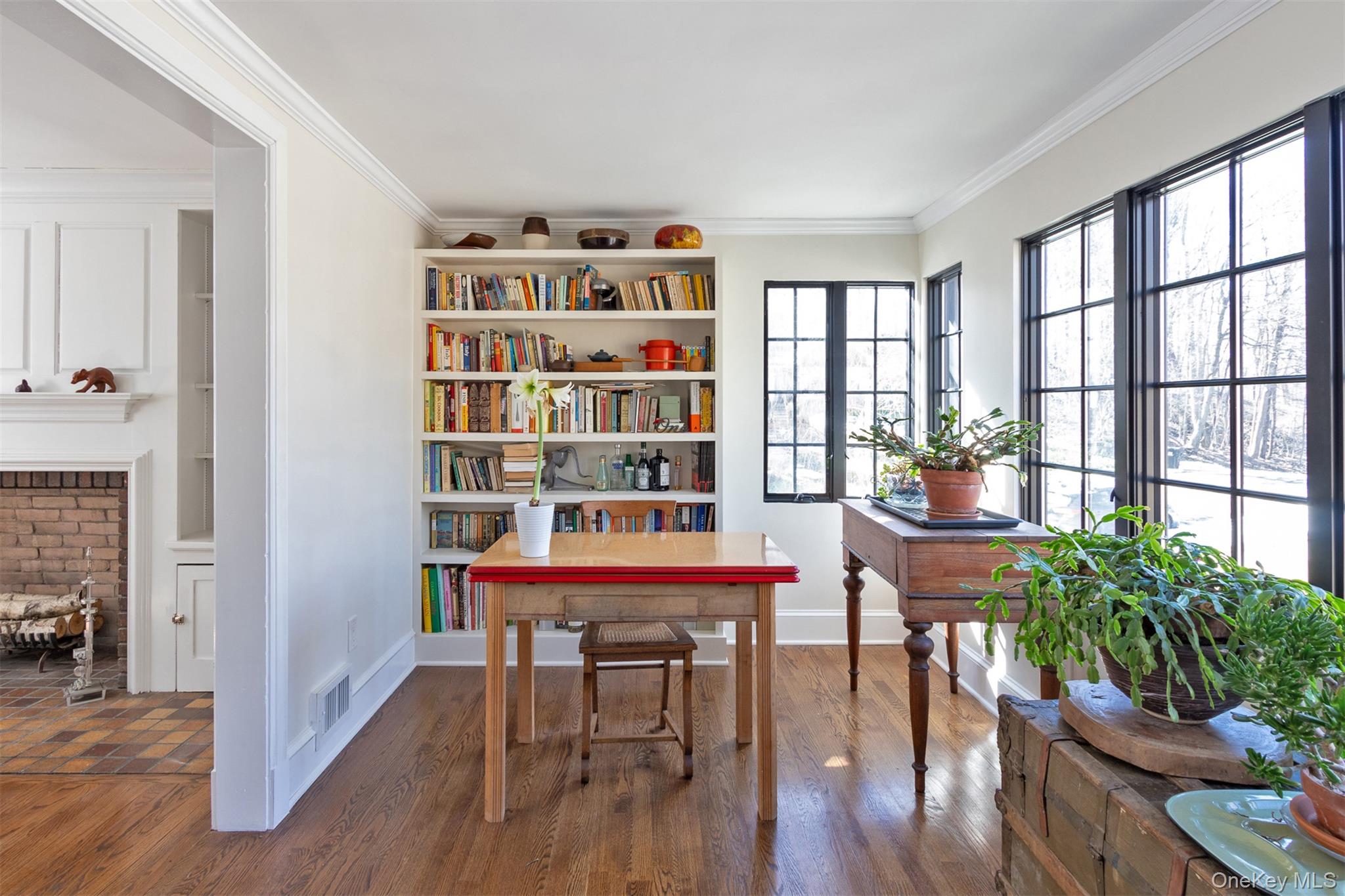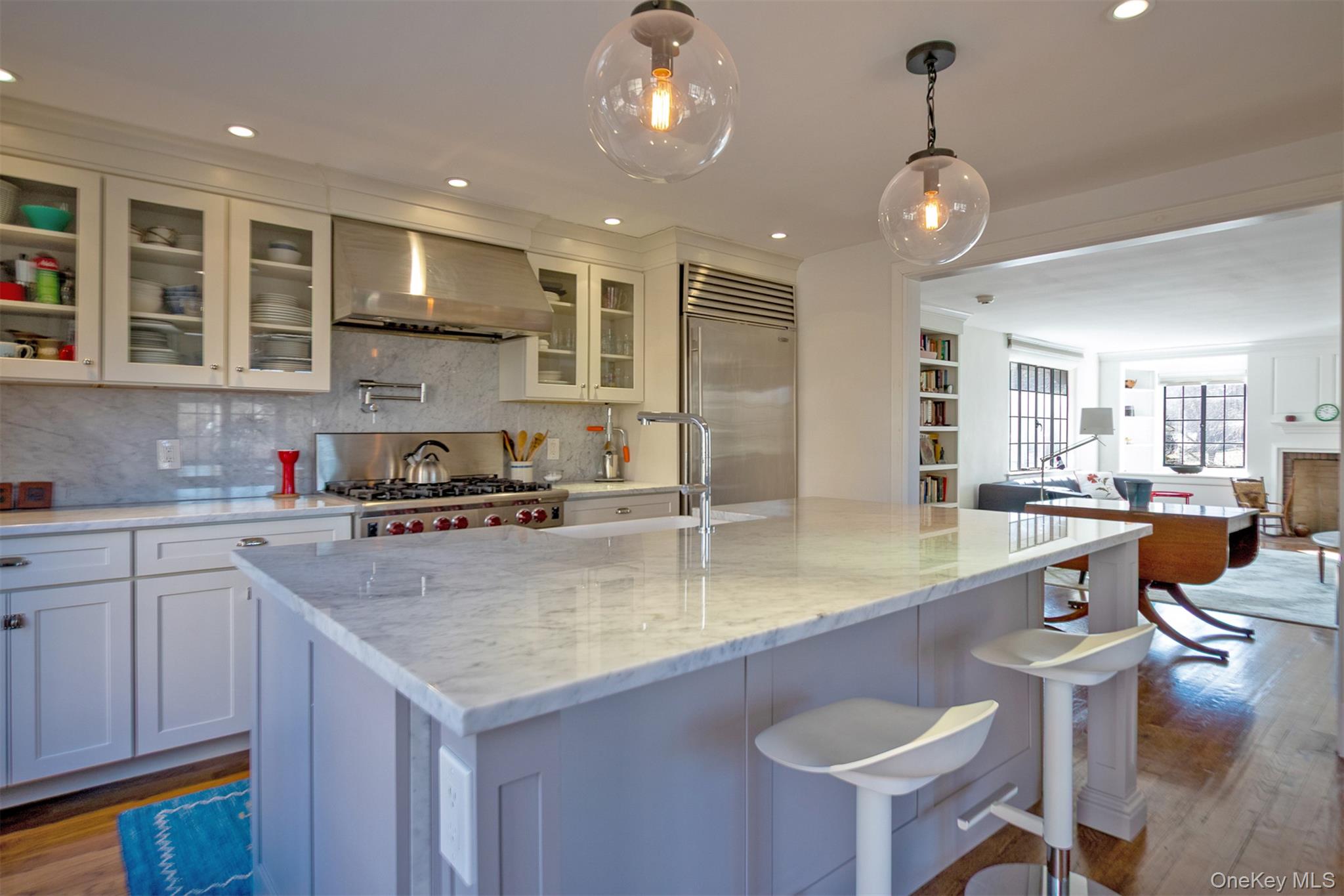 This beautifully restored 1925 English Tudor perched on a sunny corner in Poughkeepsie's historic Southside is just moments from the walking trails of Springside National Historic Site, which the property abuts. Solidly built and thoughtfully updated, the home blends the craftsmanship of its era with the comfort of modern living. The home is drenched in warm, natural light with large windows illuminating the gleaming hardwood floors. There is a sensible natural flow to the living space - the fireplace-anchored living room opens to a dazzling chef's kitchen with marble countertops, generous center island, Sub-Zero refrigerator, Wolf range, and Restoration Hardware lighting. Just beyond, a bright windowed sunroom offers a welcoming spot for reading, or morning coffee. French doors off the kitchen open to a private patio with an outdoor fireplace, perfect for entertaining. The home offers four bedrooms, including a convenient first-floor ensuite bedroom option. Upstairs the primary bedroom centers on a classic brick fireplace and is the perfect place to relax. Two additional rooms provide guest quarters or elegant work from home space. The beautifully finished marble spa bath is a soothing place to unwind. Walk-out basement adds valuable extra space, with laundry, full bath, and plenty of room for hobbies, and storage. The one car garage is conveniently located on this level as well. Set on a quiet cul-de-sac in one of the city's most coveted neighborhoods, the location offers easy access to Vassar and Marist Colleges, hospitals, Metro-North, Amtrak, and the dining and cultural life of downtown Poughkeepsie. A home that feels both rooted and refined--classic architecture, generous living spaces, and the ease of city living close at hand.