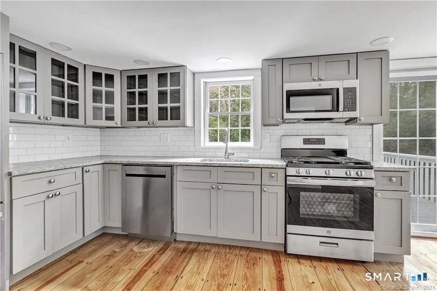 Tucked away on a private rear lot on Ridge Road in North Haven, this completely remodeled property offers the charm of a turn-of-the-century home with the confidence of modern upgrades, all on a half-acre setting. With 3 beds and 2 full baths, the layout feels comfortable and functional, with inviting spaces for everyday living and easy hosting. Step inside and you'll immediately notice the beautifully restored, original wide plank floors, bringing warmth, character, and a true sense of craftsmanship throughout the home. The kitchen has been fully redone and feels fresh and current, featuring stainless steel appliances, granite countertops, and clean finishes that make cooking and gathering simple. Major improvements were completed about five years ago, so the important work is already handled: a new architectural roof, new gutters, a heat-on-demand furnace and hot water, brand new plumbing, new kitchen/baths, and a new 200-amp electrical service. Main level laundry. This is the kind of update list that supports long-term peace of mind while keeping the home's classic style intact. Outside, enjoy the flexibility of a spacious half-acre lot and the convenience of a large two-car garage. The location adds everyday ease, with quick access to highways, shopping, medical and more! Nothing left to do but move in and enjoy. All this for under 400K in North Haven? Hurry!