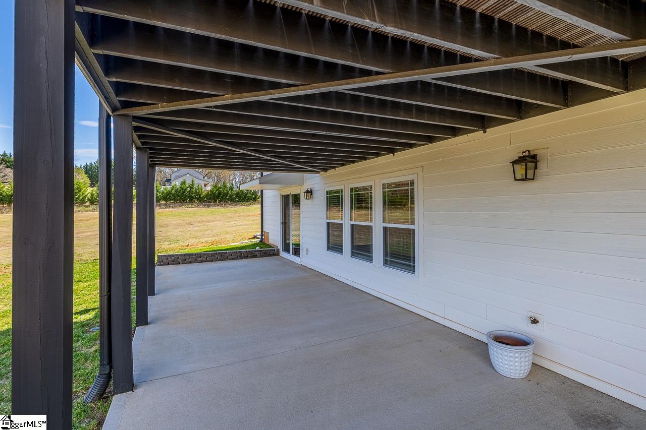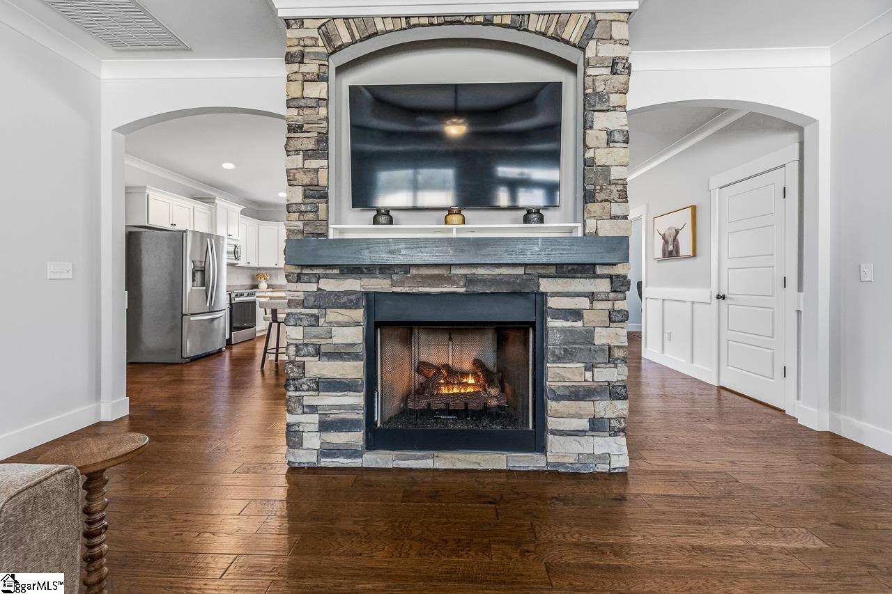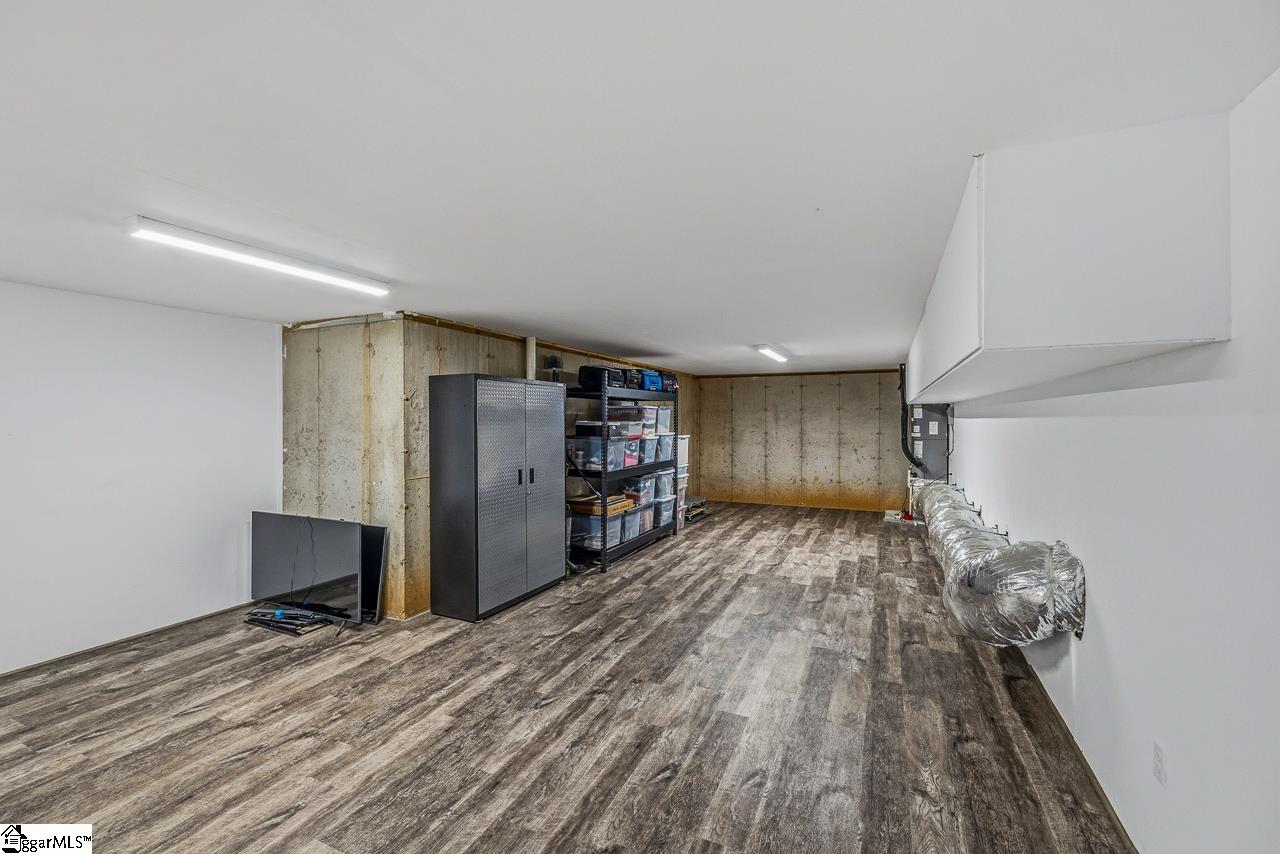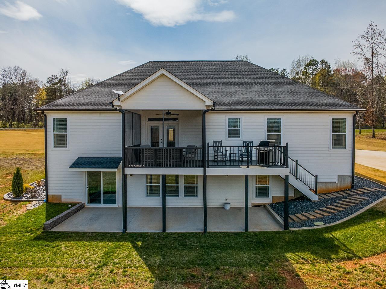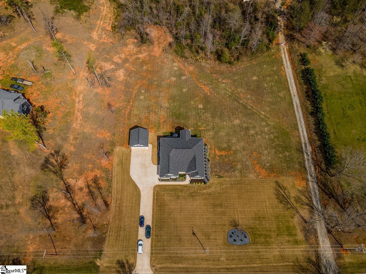 Nestled against a serene, wooded backdrop on an expansive lot, this meticulously designed home offers the ultimate tranquil retreat without sacrificing convenience. Perfectly positioned between Greenville and Spartanburg, this location allows for an effortless commute in either direction and easy access to shopping and restaurants. From the moment you step inside, it is clear that this home was thoughtfully designed for modern living, seamlessly blending functionality with elevated style. Premium upgrades and unparalleled craftsmanship make this residence a stand out choice. Upon entering, you will immediately notice the warm hardwood floors that flow through the main living area, the high ceilings, and the classic crown molding which has been beautifully accented throughout the majority of this home, creating a polished and cohesive feel. Designed for relaxation, the main level living room is enhanced with a stunning trey ceiling, soft accent lighting, and a cozy gas log fireplace creating the perfect setting for quiet nights in. The kitchen has been designed with crisp, white cabinetry, stainless steel appliances, and a generously sized island. This space flows seamlessly together with the dining area allowing plenty of space for everyday living or entertaining. Just off the main space, a versatile flex room with double glass doors and a closet offers the perfect setup for a home office, study, or an additional living area. Located just steps from the garage, a mudroom/laundry room combo maximizes efficiency with custom built-in cabinetry, a utility sink, and a dedicated workspace perfect for a drop zone or laundry folding. The spacious primary suite acts as your private retreat complete with trey ceiling, accent lighting, dual closets, and a well-appointed bath featuring a jetted tub, separate tiled shower, and double vanities. Enjoy a peaceful split-bedroom layout, with two secondary bedrooms positioned on the opposite side of the home allowing for maximum privacy. The finished basement, complete with luxury vinyl flooring, crown molding, ceiling fan, and recessed lighting, provides a spacious recreation area perfect for entertaining a few friends or a large group. The sliding glass door brings in plenty of light and leads directly to the backyard patio. An oversized guest bedroom and full bath finish out the space. The unfinished area of the basement is extremely large and can be used as storage, a workshop, home gym, or future expansion. An oversized detached garage adds additional space for parking a large truck and still leaves plenty of room for the included work bench, lawn equipment or other recreational toys. Recent updates include a new 5 burner slide in range with air fry technology, a beautifully remodeled secondary bathroom shower completed just months ago, and custom closet shelving in the primary suite and two secondary bedrooms. With the home being built in 2020, enjoy the peace of mind that major systems and features remain modern and low maintenance. Schedule a showing to see this remarkable home today!