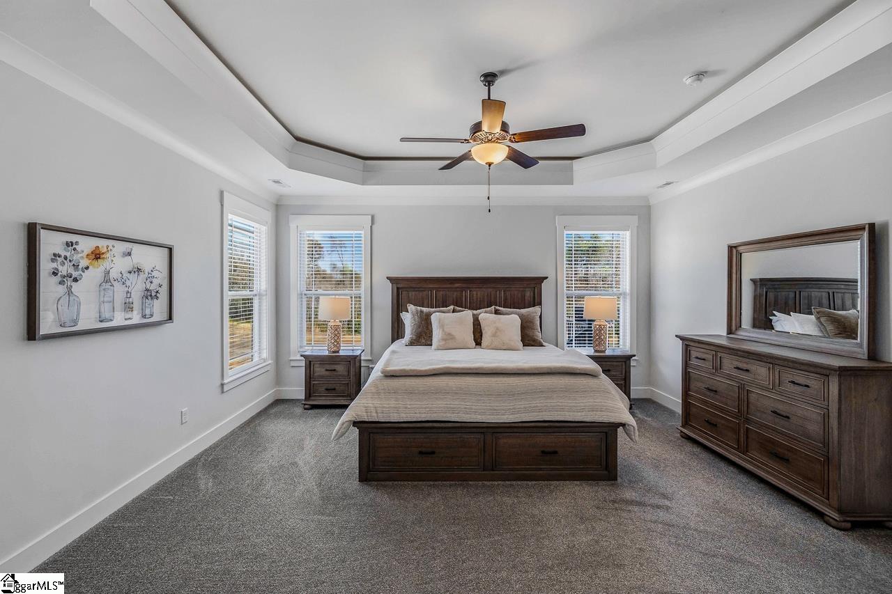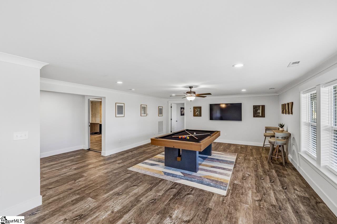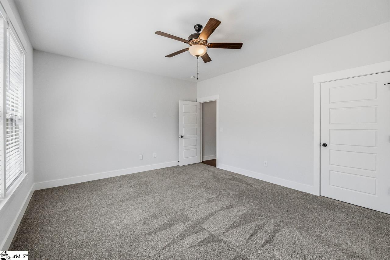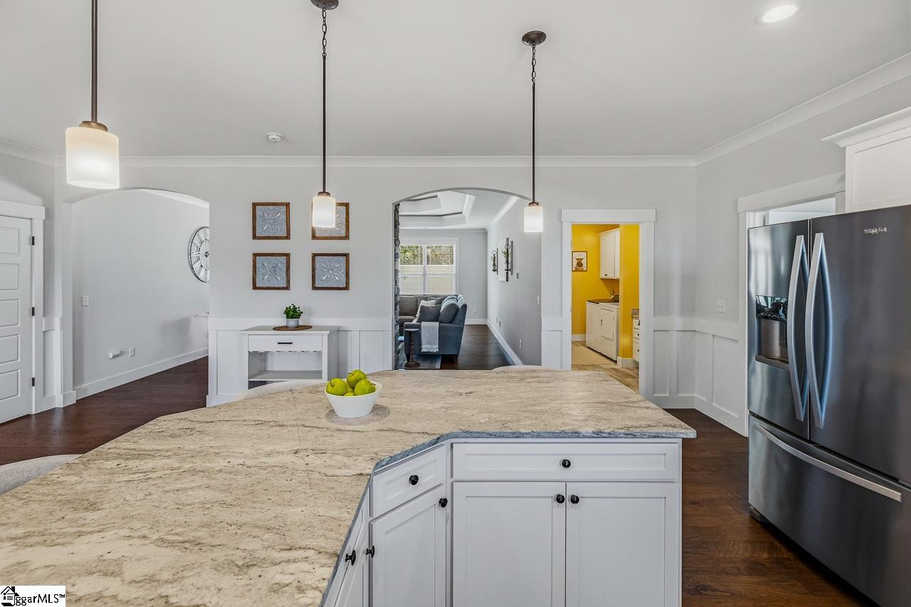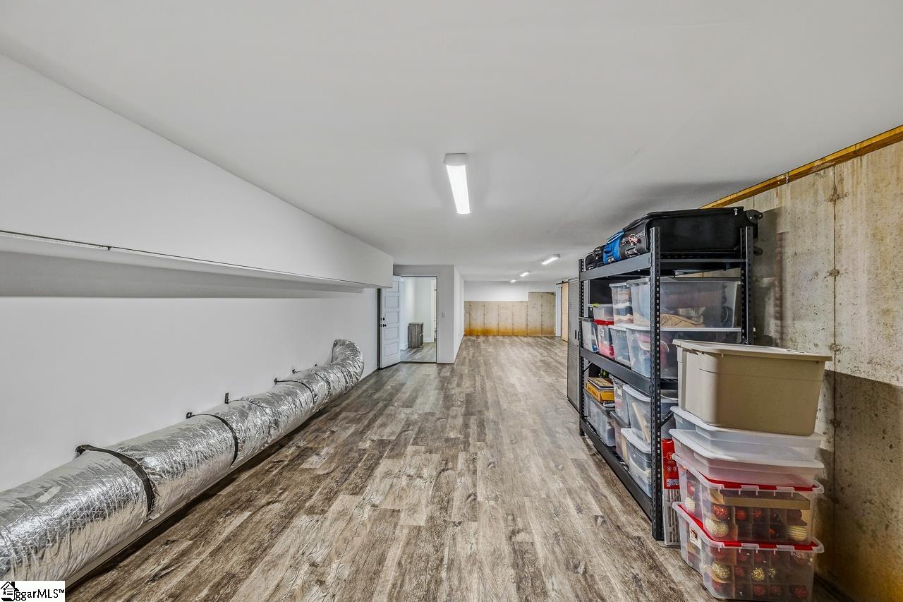 Nestled against a serene, wooded backdrop on an expansive lot, this meticulously designed home offers the ultimate tranquil retreat without sacrificing convenience. Perfectly positioned between Greenville and Spartanburg, this location allows for an effortless commute in either direction and easy access to shopping and restaurants. From the moment you step inside, it is clear that this home was thoughtfully designed for modern living, seamlessly blending functionality with elevated style. Premium upgrades and unparalleled craftsmanship make this residence a stand out choice. Upon entering, you will immediately notice the warm hardwood floors that flow through the main living area, the high ceilings, and the classic crown molding which has been beautifully accented throughout the majority of this home, creating a polished and cohesive feel. Designed for relaxation, the main level living room is enhanced with a stunning trey ceiling, soft accent lighting, and a cozy gas log fireplace creating the perfect setting for quiet nights in. The kitchen has been designed with crisp, white cabinetry, stainless steel appliances, and a generously sized island. This space flows seamlessly together with the dining area allowing plenty of space for everyday living or entertaining. Just off the main space, a versatile flex room with double glass doors and a closet offers the perfect setup for a home office, study, or an additional living area. Located just steps from the garage, a mudroom/laundry room combo maximizes efficiency with custom built-in cabinetry, a utility sink, and a dedicated workspace perfect for a drop zone or laundry folding. The spacious primary suite acts as your private retreat complete with trey ceiling, accent lighting, dual closets, and a well-appointed bath featuring a jetted tub, separate tiled shower, and double vanities. Enjoy a peaceful split-bedroom layout, with two secondary bedrooms positioned on the opposite side of the home allowing for maximum privacy. The finished basement, complete with luxury vinyl flooring, crown molding, ceiling fan, and recessed lighting, provides a spacious recreation area perfect for entertaining a few friends or a large group. The sliding glass door brings in plenty of light and leads directly to the backyard patio. An oversized guest bedroom and full bath finish out the space. The unfinished area of the basement is extremely large and can be used as storage, a workshop, home gym, or future expansion. An oversized detached garage adds additional space for parking a large truck and still leaves plenty of room for the included work bench, lawn equipment or other recreational toys. Recent updates include a new 5 burner slide in range with air fry technology, a beautifully remodeled secondary bathroom shower completed just months ago, and custom closet shelving in the primary suite and two secondary bedrooms. With the home being built in 2020, enjoy the peace of mind that major systems and features remain modern and low maintenance. Schedule a showing to see this remarkable home today!