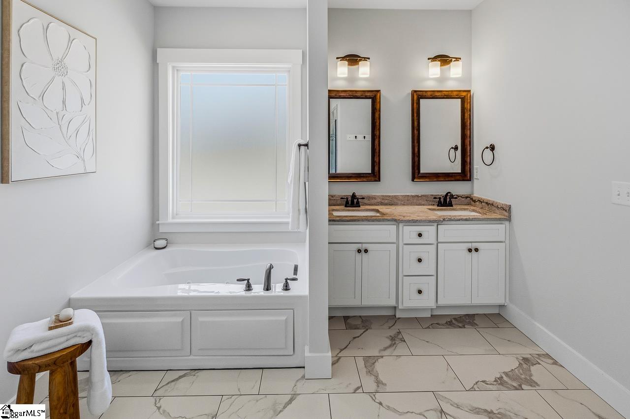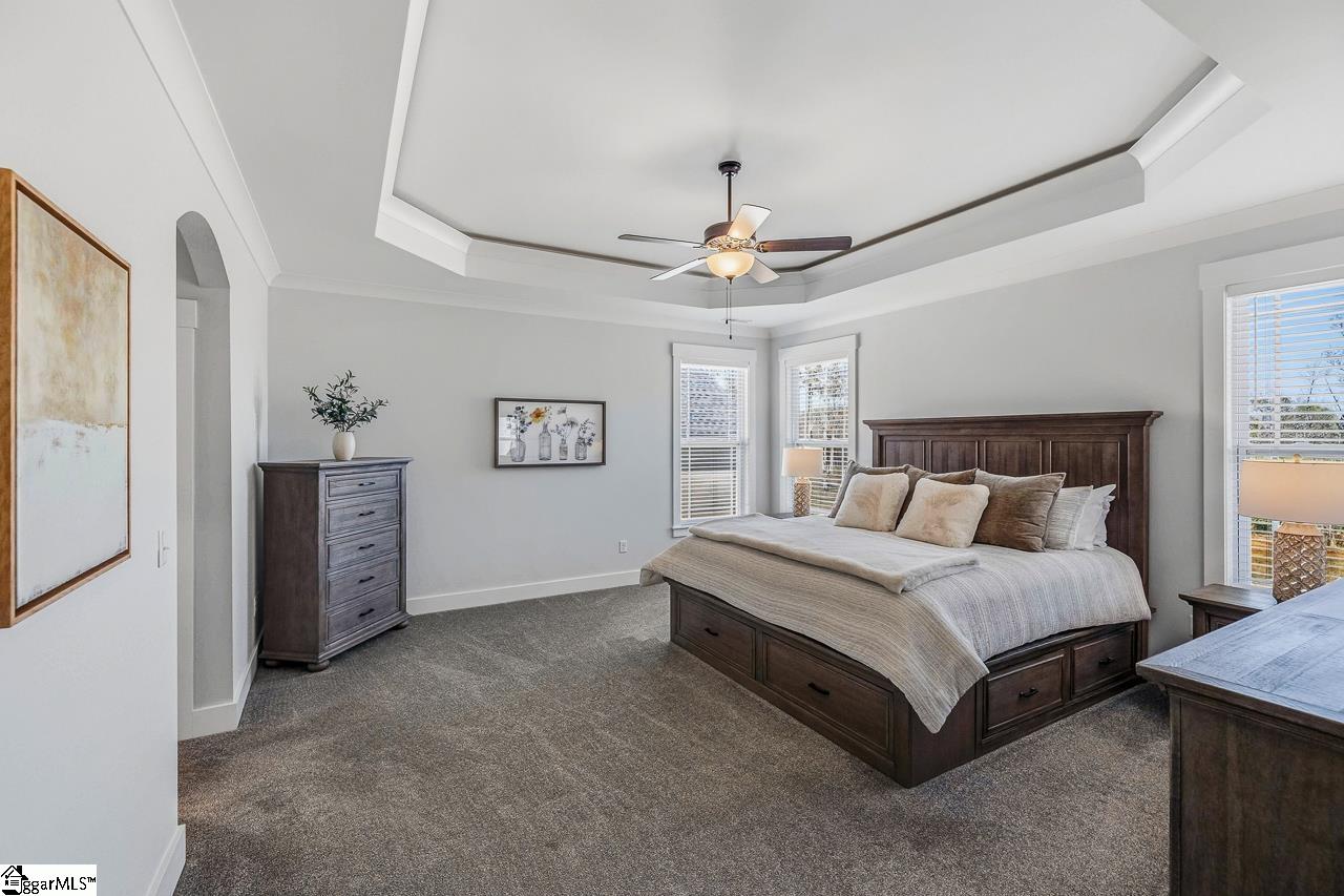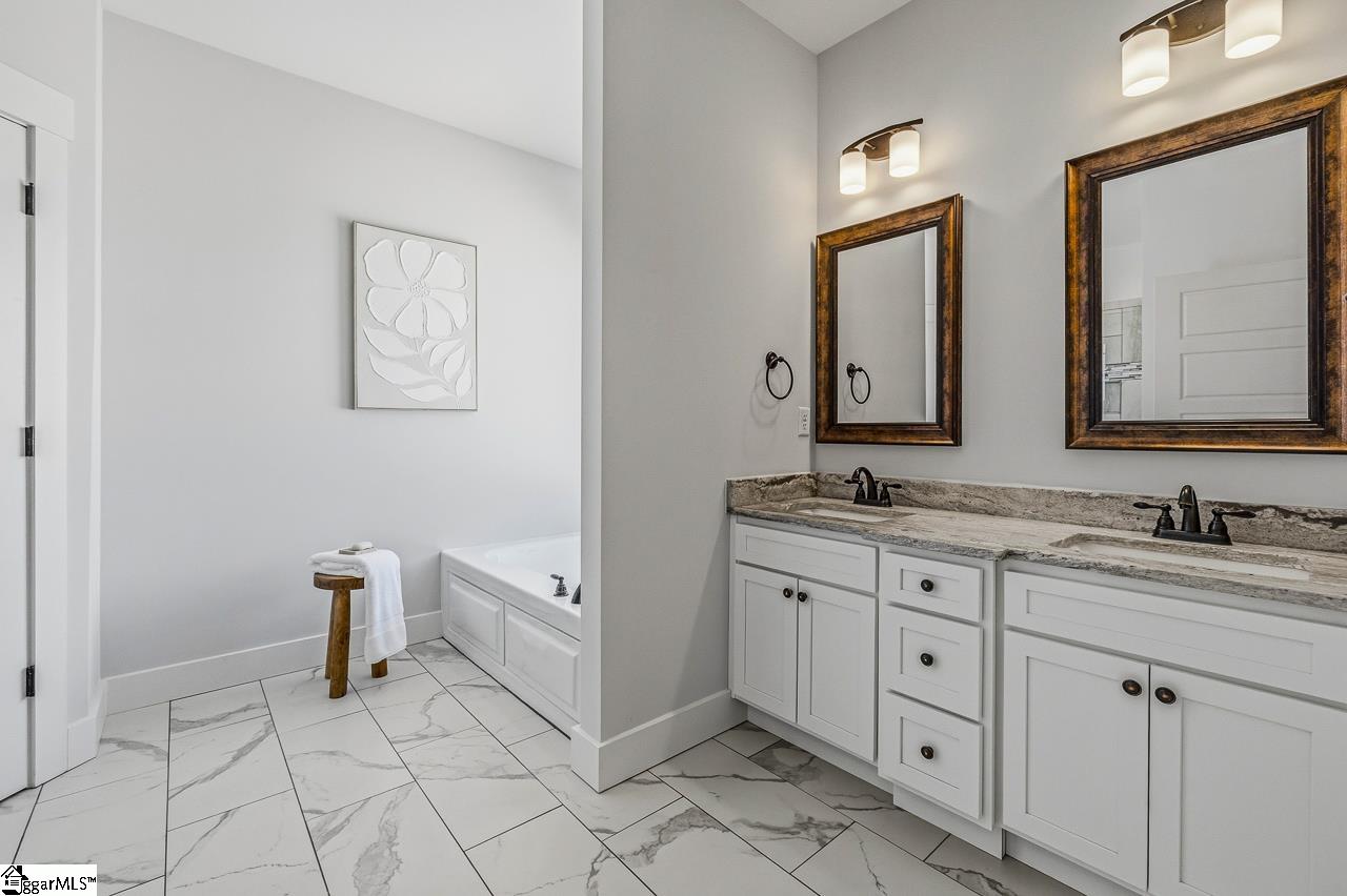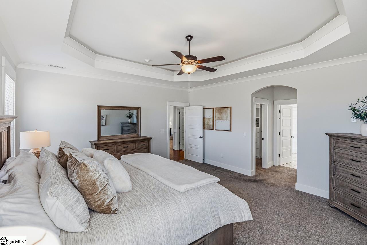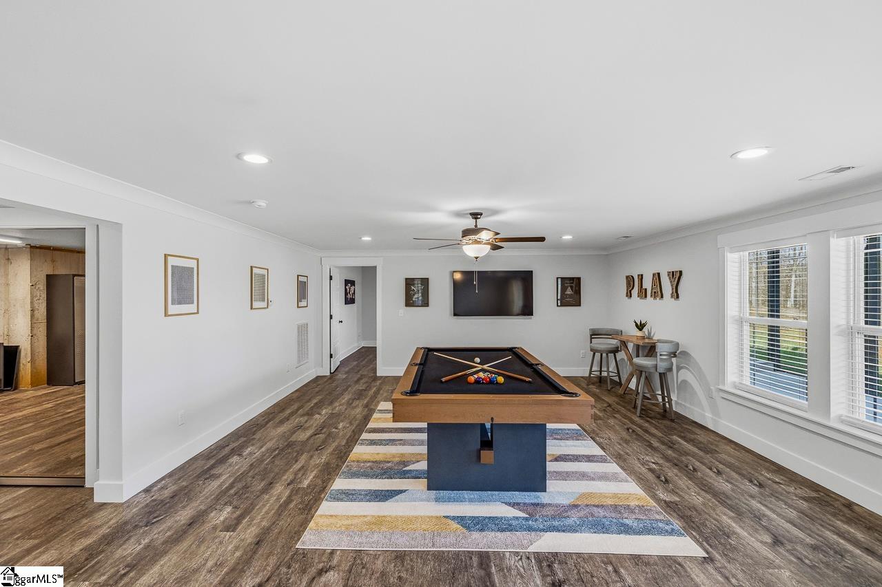 Nestled against a serene, wooded backdrop on an expansive lot, this meticulously designed home offers the ultimate tranquil retreat without sacrificing convenience. Perfectly positioned between Greenville and Spartanburg, this location allows for an effortless commute in either direction and easy access to shopping and restaurants. From the moment you step inside, it is clear that this home was thoughtfully designed for modern living, seamlessly blending functionality with elevated style. Premium upgrades and unparalleled craftsmanship make this residence a stand out choice. Upon entering, you will immediately notice the warm hardwood floors that flow through the main living area, the high ceilings, and the classic crown molding which has been beautifully accented throughout the majority of this home, creating a polished and cohesive feel. Designed for relaxation, the main level living room is enhanced with a stunning trey ceiling, soft accent lighting, and a cozy gas log fireplace creating the perfect setting for quiet nights in. The kitchen has been designed with crisp, white cabinetry, stainless steel appliances, and a generously sized island. This space flows seamlessly together with the dining area allowing plenty of space for everyday living or entertaining. Just off the main space, a versatile flex room with double glass doors and a closet offers the perfect setup for a home office, study, or an additional living area. Located just steps from the garage, a mudroom/laundry room combo maximizes efficiency with custom built-in cabinetry, a utility sink, and a dedicated workspace perfect for a drop zone or laundry folding. The spacious primary suite acts as your private retreat complete with trey ceiling, accent lighting, dual closets, and a well-appointed bath featuring a jetted tub, separate tiled shower, and double vanities. Enjoy a peaceful split-bedroom layout, with two secondary bedrooms positioned on the opposite side of the home allowing for maximum privacy. The finished basement, complete with luxury vinyl flooring, crown molding, ceiling fan, and recessed lighting, provides a spacious recreation area perfect for entertaining a few friends or a large group. The sliding glass door brings in plenty of light and leads directly to the backyard patio. An oversized guest bedroom and full bath finish out the space. The unfinished area of the basement is extremely large and can be used as storage, a workshop, home gym, or future expansion. An oversized detached garage adds additional space for parking a large truck and still leaves plenty of room for the included work bench, lawn equipment or other recreational toys. Recent updates include a new 5 burner slide in range with air fry technology, a beautifully remodeled secondary bathroom shower completed just months ago, and custom closet shelving in the primary suite and two secondary bedrooms. With the home being built in 2020, enjoy the peace of mind that major systems and features remain modern and low maintenance. Schedule a showing to see this remarkable home today!