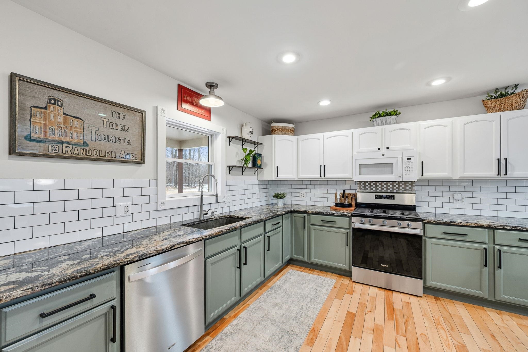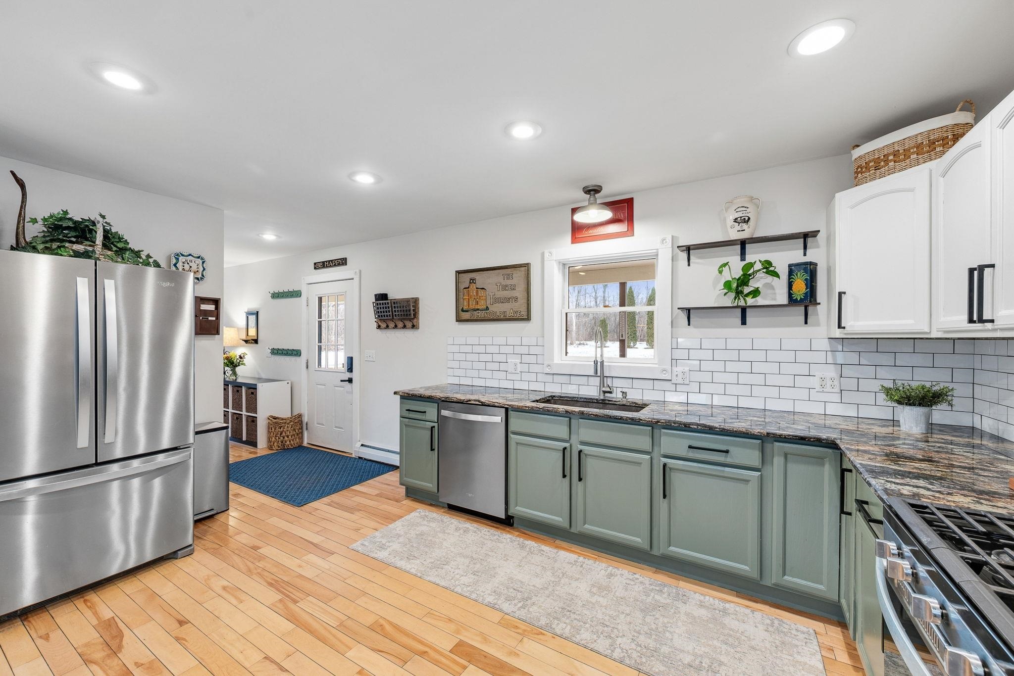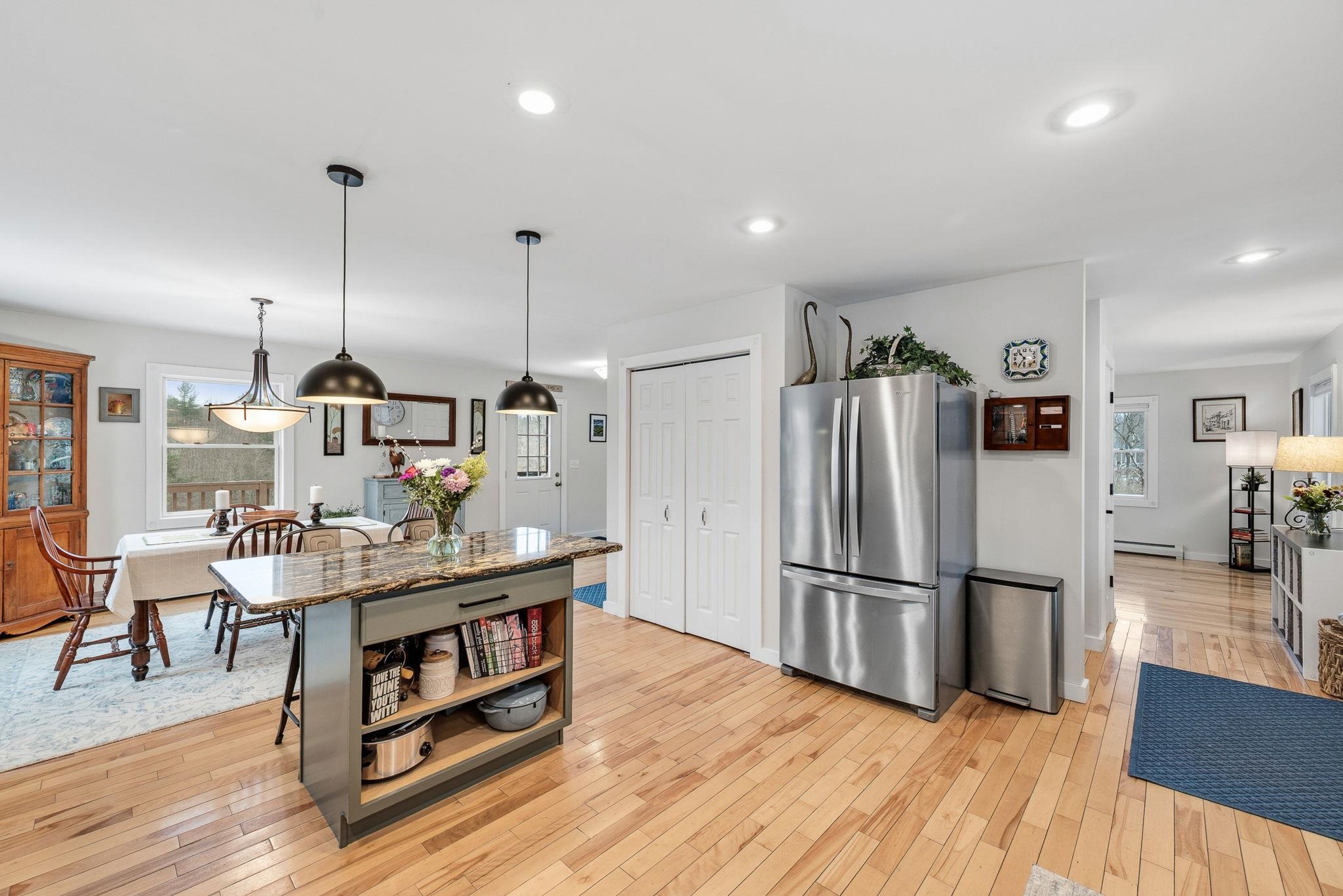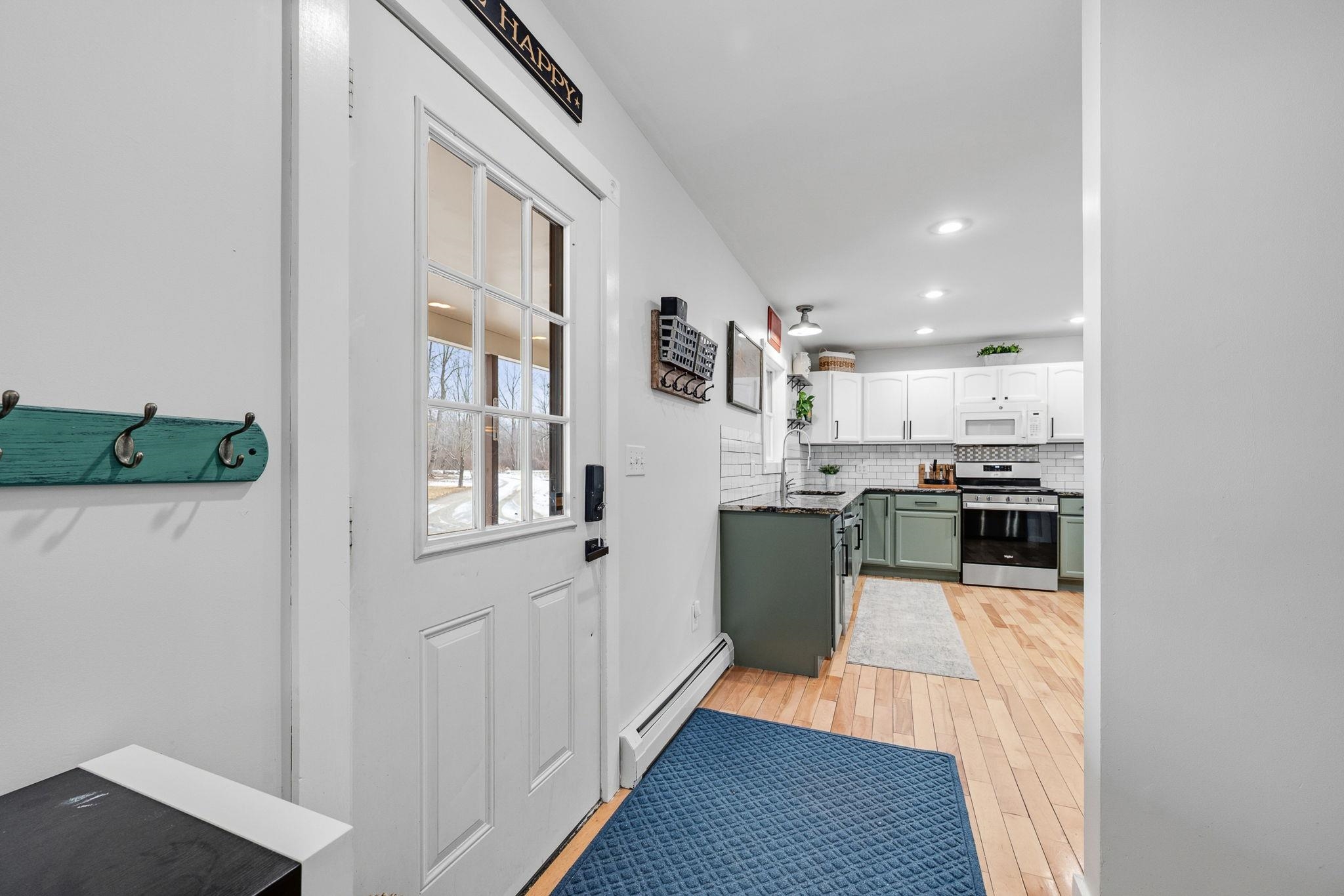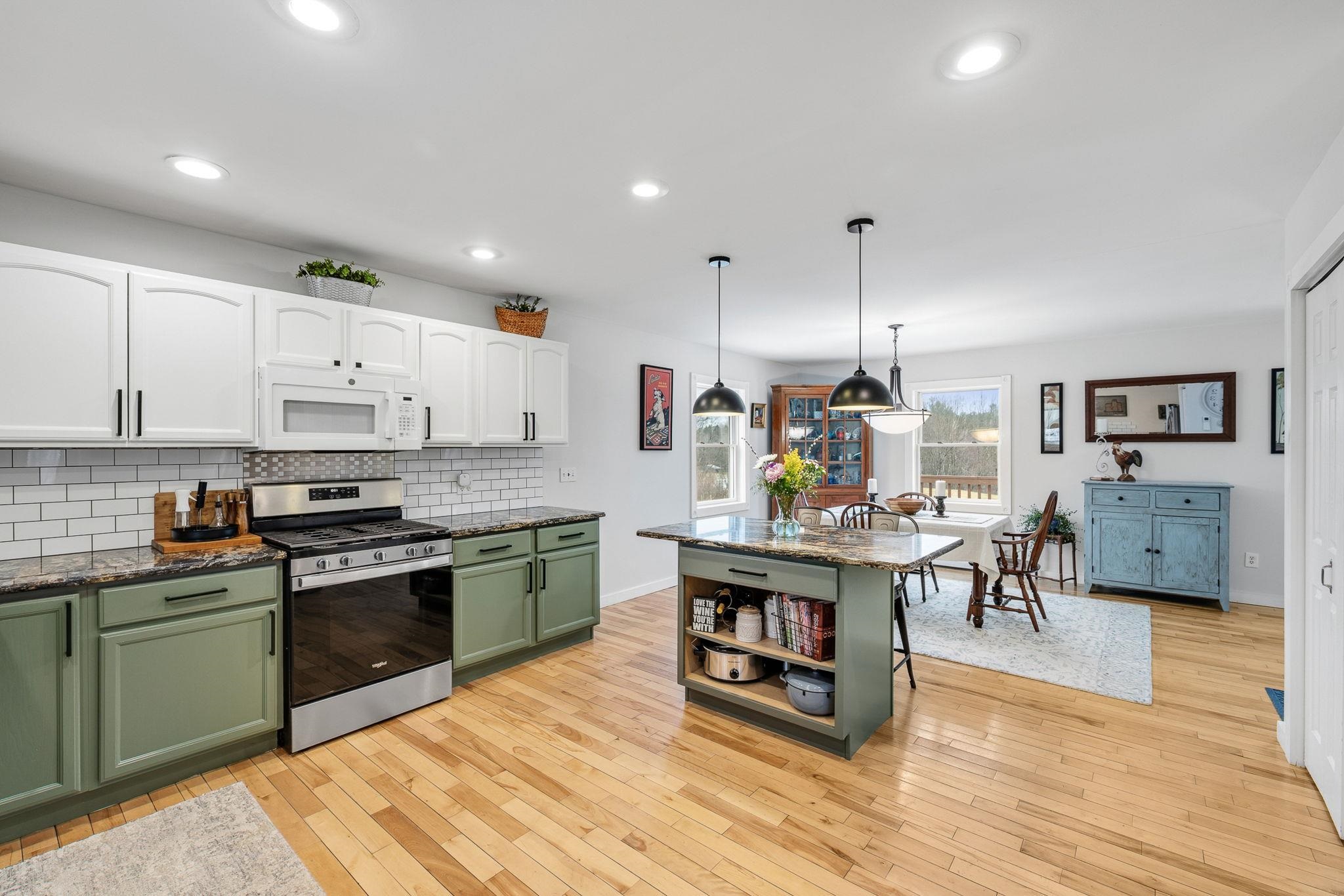 Welcome to 815 Hardscrabble Road in Monkton, a turnkey home set on a picturesque 3. 33-acre lot. Offering over 1, 700 square feet of thoughtfully designed living space, this 3-bedroom, 3-bath property blends comfort, functionality, and style in a quiet Vermont setting. The main level features hardwood flooring throughout and a spacious, updated kitchen with stone countertops and newer stainless steel appliances. The open-concept layout creates a seamless, circular flow between the kitchen, dining, and living areas, ideal for both everyday living and entertaining guests. Step outside onto the expansive wraparound deck, where you’ll enjoy morning sunlight, views of the Hogback Mountains, and overlook the fully fenced backyard. Upstairs, the primary suite offers a spacious layout with an en suite bath and a large walk-in closet. Two additional bedrooms and a full bath complete the second level. The walkout lower level is partially finished, providing flexible space for a home office, gym, or recreation area, along with ample storage and a convenient mudroom/gear zone. Extensive updates make this home truly move-in ready, including two newer mini-split heads, one on each level, updated light fixtures, fresh paint throughout, new carpeting on the stairs and second floor, window treatments, and significant exterior landscaping improvements. The property also includes an EV vehicle charger. Outdoor enthusiasts will appreciate easy access to Raven Ridge Natural Area, Monkton Forest, Little Hogback Forest, and Mount Philo State Park. Conveniently located just 20 minutes to Vergennes and Middlebury, and approximately 35 minutes to Burlington, Burlington International Airport, and University of Vermont Medical Center. Showings begin immediately. Don’t miss your opportunity to own this well-maintained Monkton property.