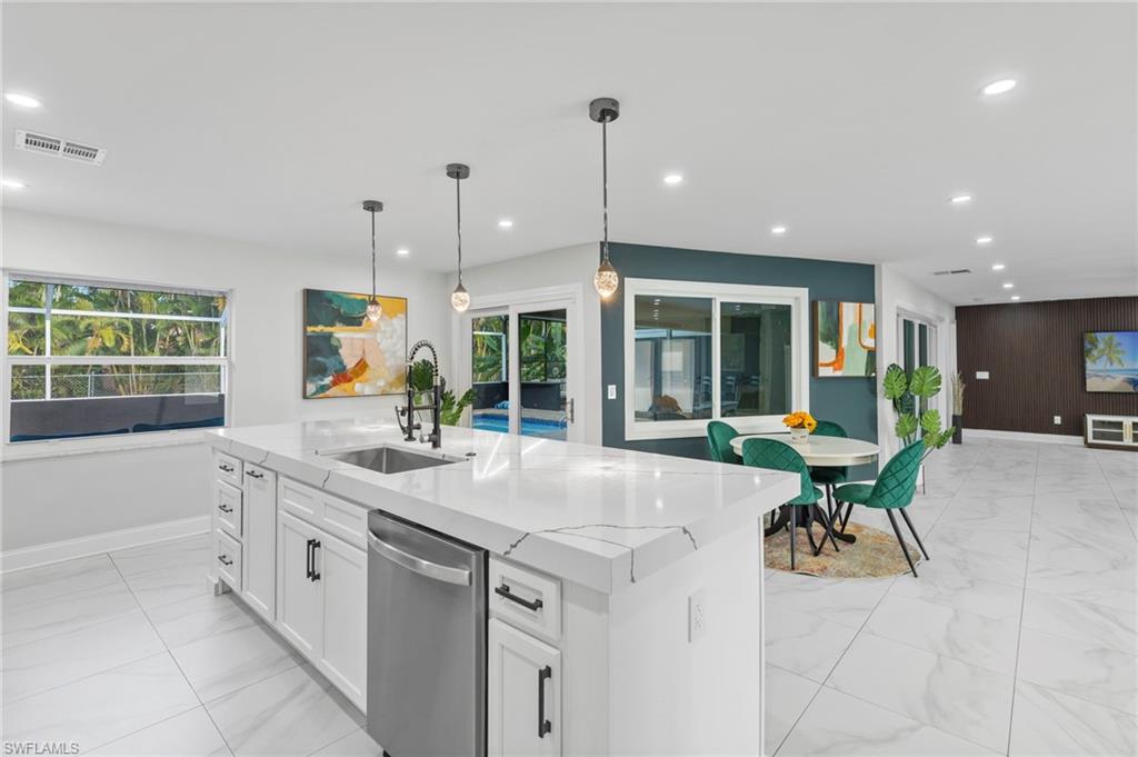 Step into your dream retreat, just moments from the Cape Coral Yacht Club and vibrant downtown. This fully remodeled gem offers over 2, 300 sq ft of impeccable living space, featuring four spacious bedrooms and three beautifully updated bathrooms—including two master suites with custom walk-in closets. The elegant bathrooms showcase stylish new tilework and modern fixtures, while the chef’s kitchen impresses with stunning miter-edge quartz countertops and top-of-the-line appliances. Designed for both style and security, the home boasts a brand-new hurricane-resistant front door, enhancing its curb appeal. Nestled on an oversized lot, the outdoor space is a true entertainer’s paradise. Enjoy the newly paved, screened lanai leading to a refreshing oversized pool, perfect for relaxation. The lush backyard, dotted with fruit trees, offers a separate screened-in area—ideal for grilling or unwinding by a fire pit. Additional features include a poolside storage room and a spacious circular driveway, providing ample parking for guests. Offering a perfect blend of luxury, comfort, and prime location, this exceptional home presents a rare opportunity to embrace the best of Cape Coral living. Don’t miss out—schedule your showing today!