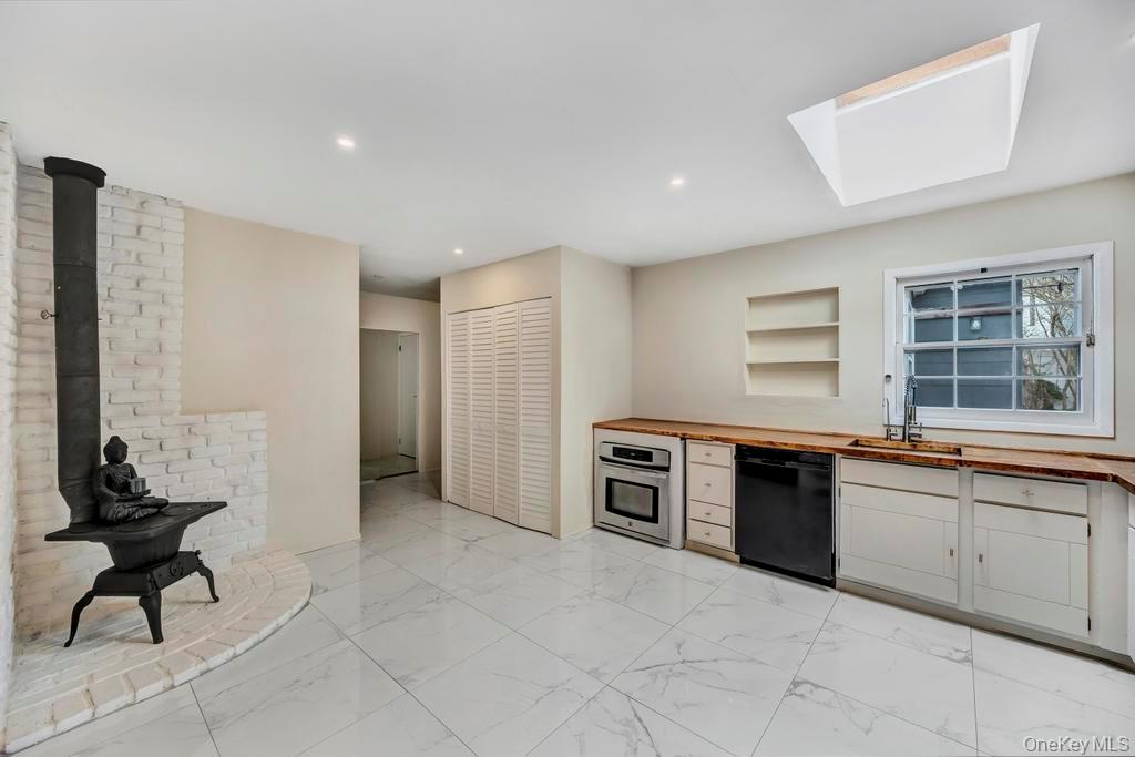 Beautifully updated ranch-style home offering 4 bedrooms and 3 full bathrooms, thoughtfully designed for comfortable, single-level living. This home features vinyl flooring throughout, with hardwood floors underneath, and a freshly painted interior in modern, neutral tones. The updated bathrooms showcase stylish finishes, while the kitchen is enhanced with new tile and a skylight that fills the space with natural light. Anderson sliding doors lead seamlessly to an outdoor deck, creating an ideal flow for indoor-outdoor entertaining. The exterior is equally impressive with new gutters, a fully enclosed PVC fence, a private backyard, and a storage shed. Additional features include an in-ground sprinkler system, above-ground oil tank with a newly installed tank, pull-down attic access for extra storage, and a spacious 2-car garage.