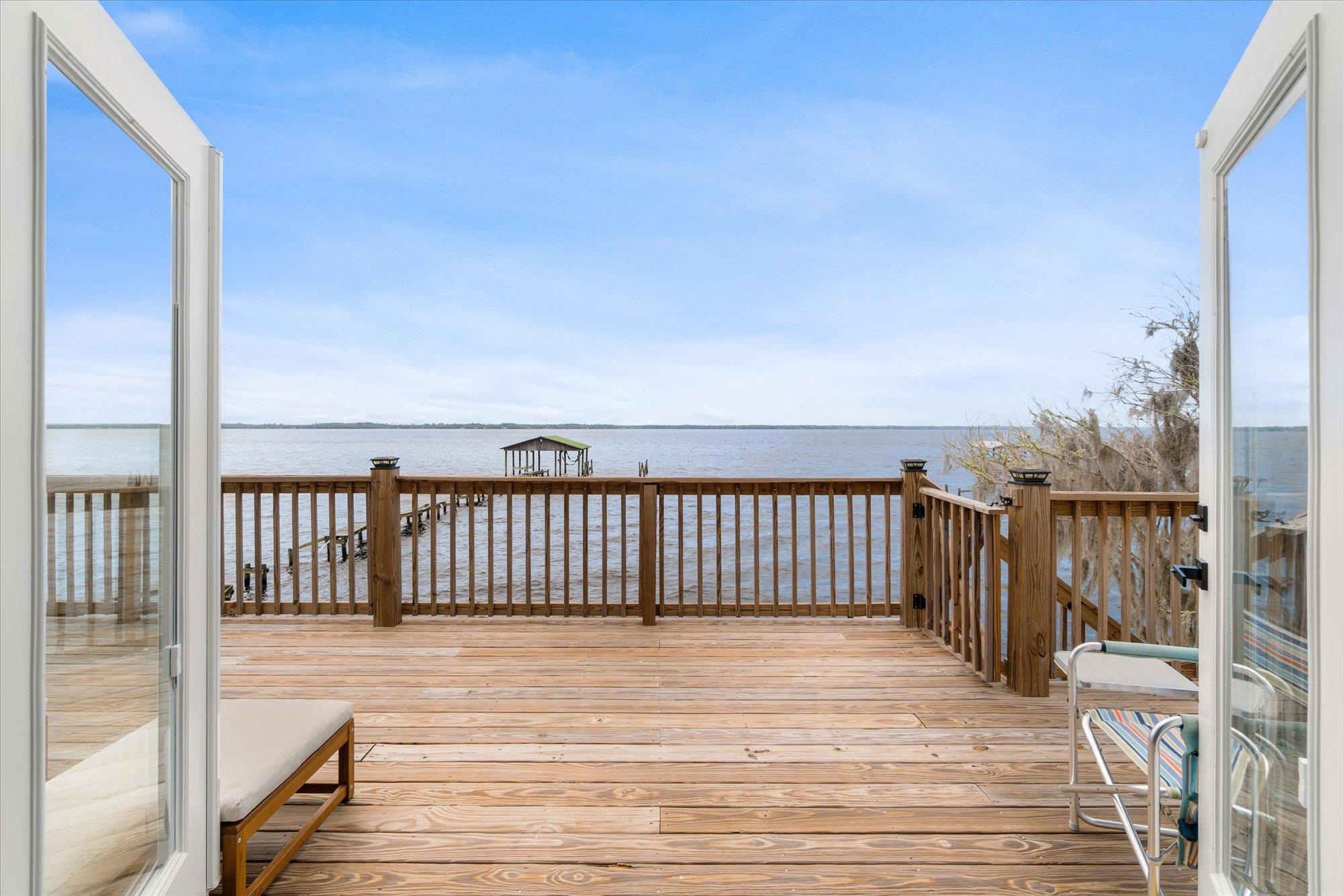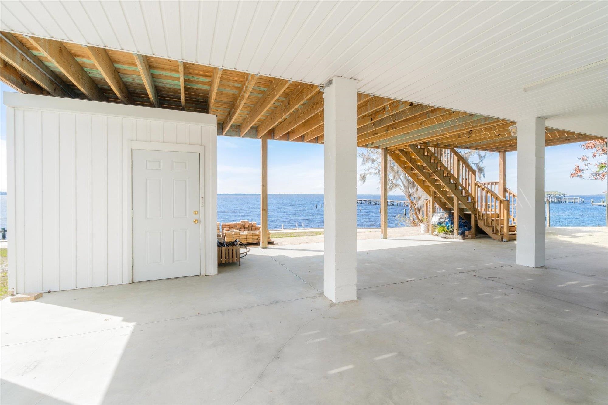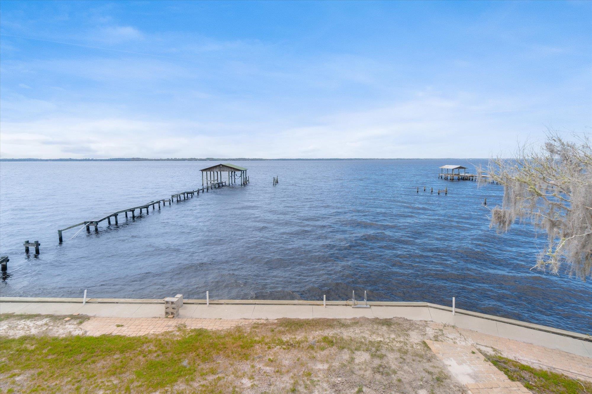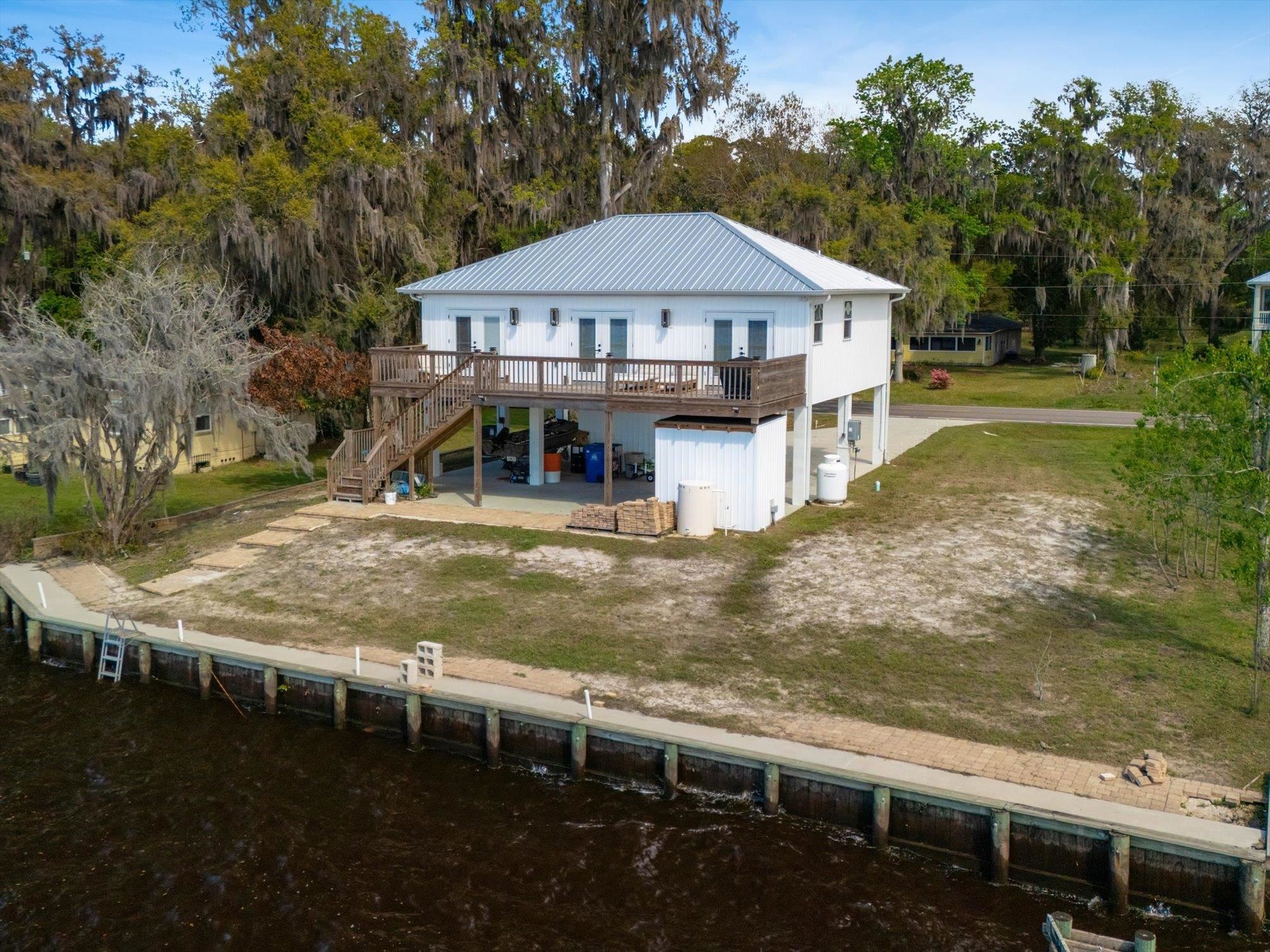 Welcome to your slice of riverfront paradise in St. Augustine! Built in 2024, this beautifully crafted home offers the perfect blend of modern construction and serene waterfront living along the scenic St. Johns River. Upon entry, you’ll find a convenient ground-level landing area complete with a laundry space and a half bathroom—perfect after a day spent outdoors. Head upstairs to a thoughtfully designed split floor plan featuring two spacious bedrooms, each with its own private en suite—ideal for comfort and privacy. Both bedrooms are enhanced by elegant double doors that open onto a sprawling deck, where you can unwind while taking in breathtaking river views and unforgettable sunsets. The main living space flows effortlessly from the kitchen, creating an inviting atmosphere for relaxing or entertaining. This property is built for enjoying the waterfront lifestyle, with a brand-new seawall installed in 2024 and paver stones guiding you to the bulkhead, where you can fish, boat, or simply soak in the tranquil surroundings. Additional storage is abundant, including a shed located beneath the carport for all your tools, gear, and toys. Whether you’re searching for a full-time residence or a weekend retreat, this exceptional riverfront home offers the best of Florida living with modern peace of mind and unbeatable views.