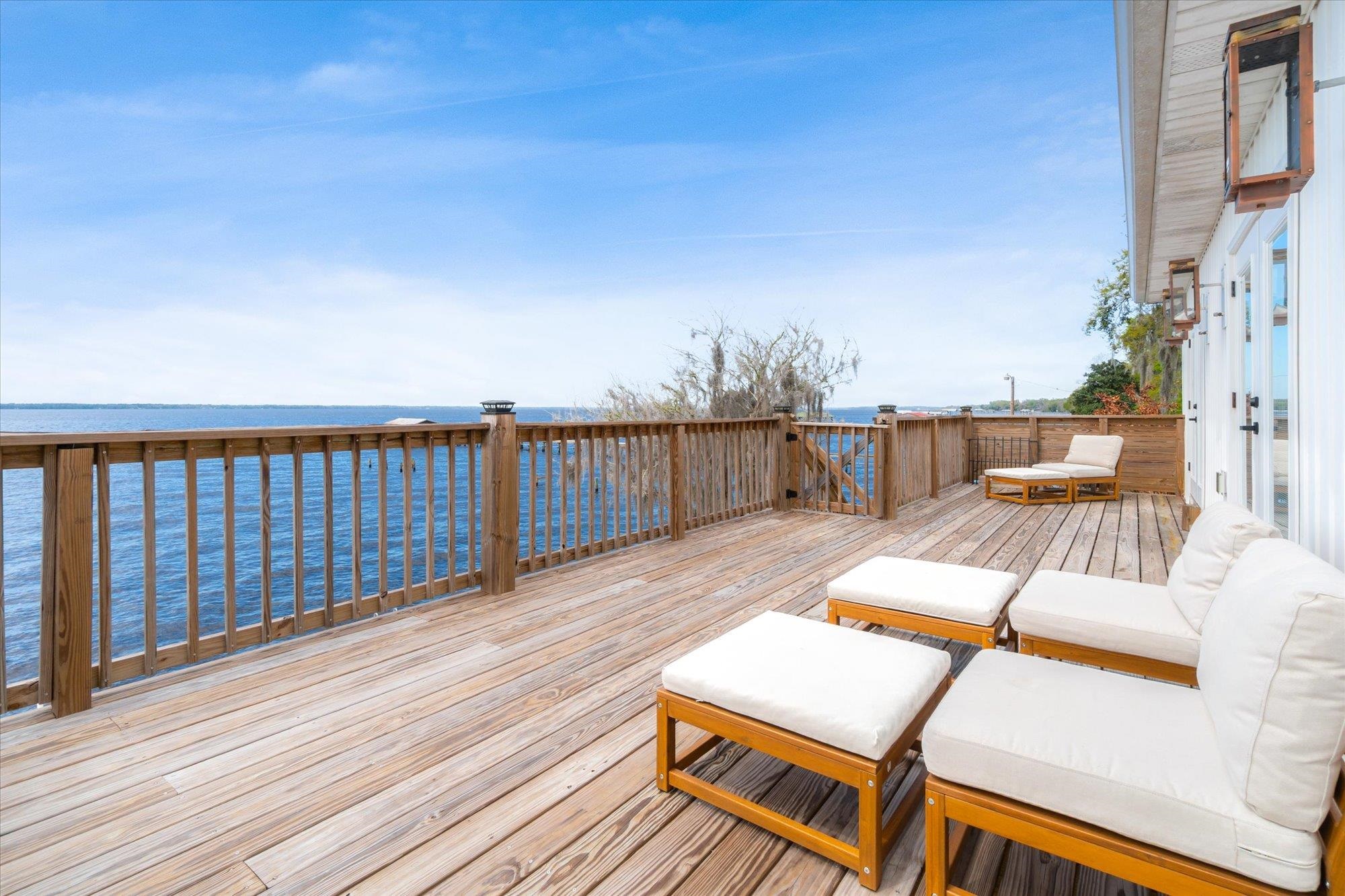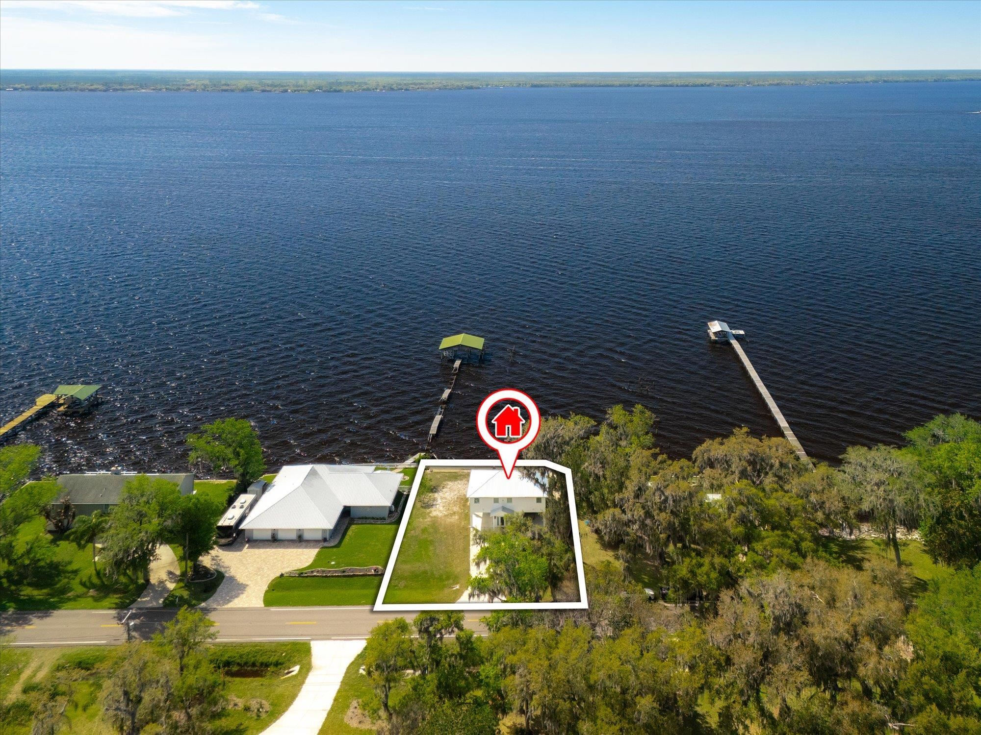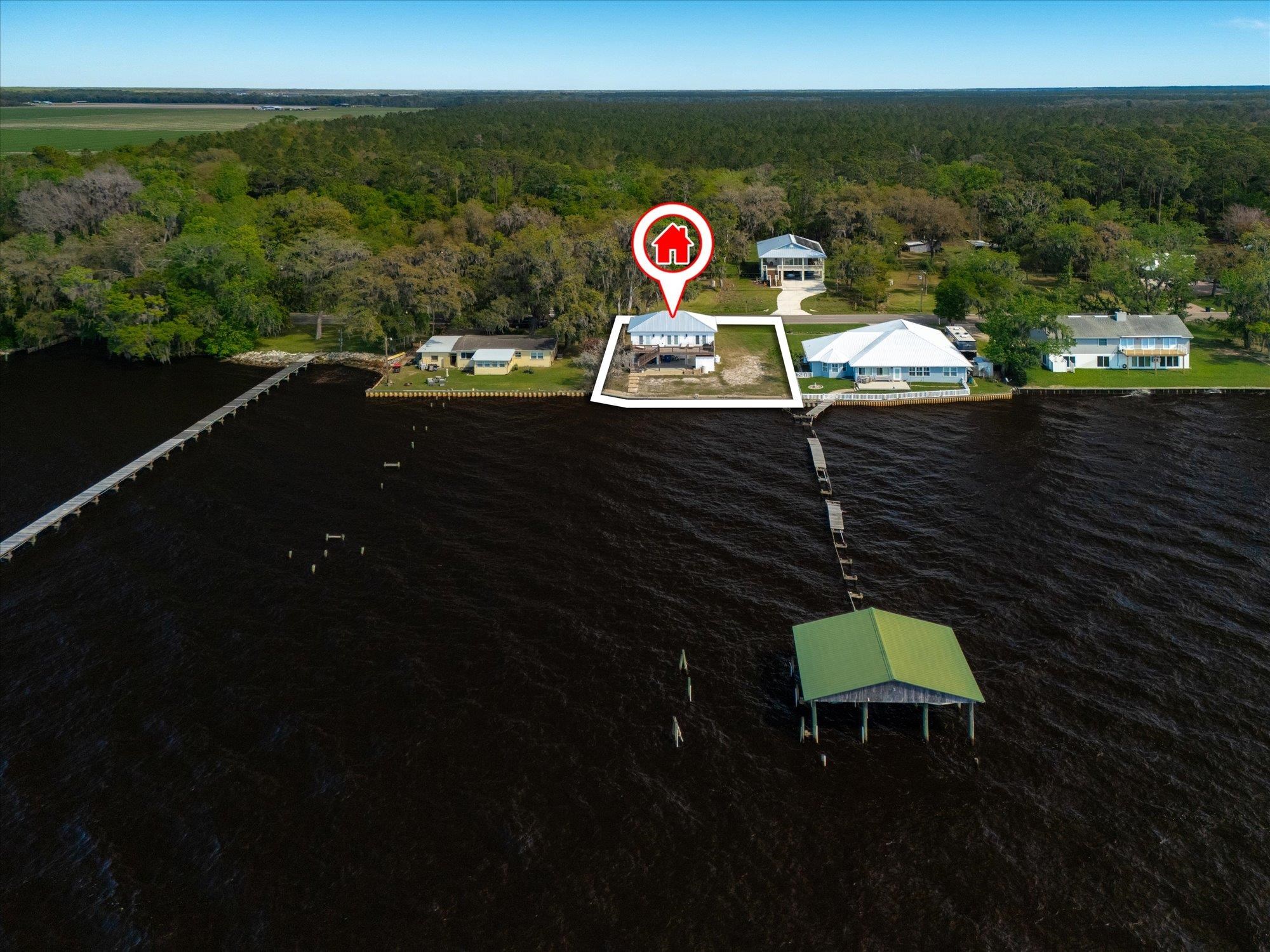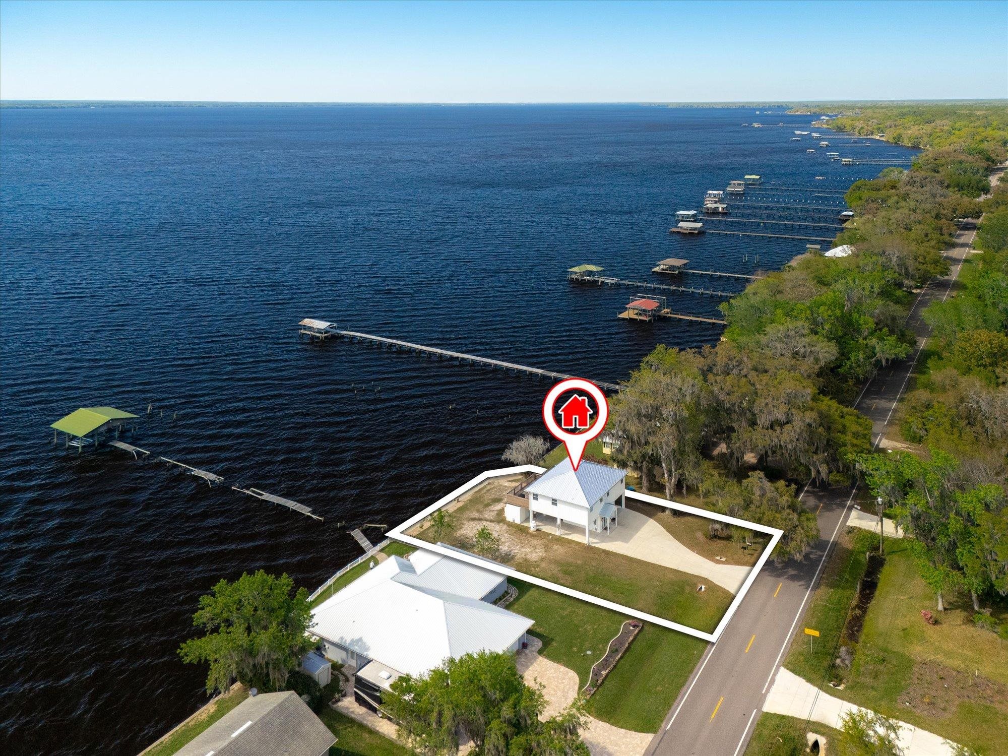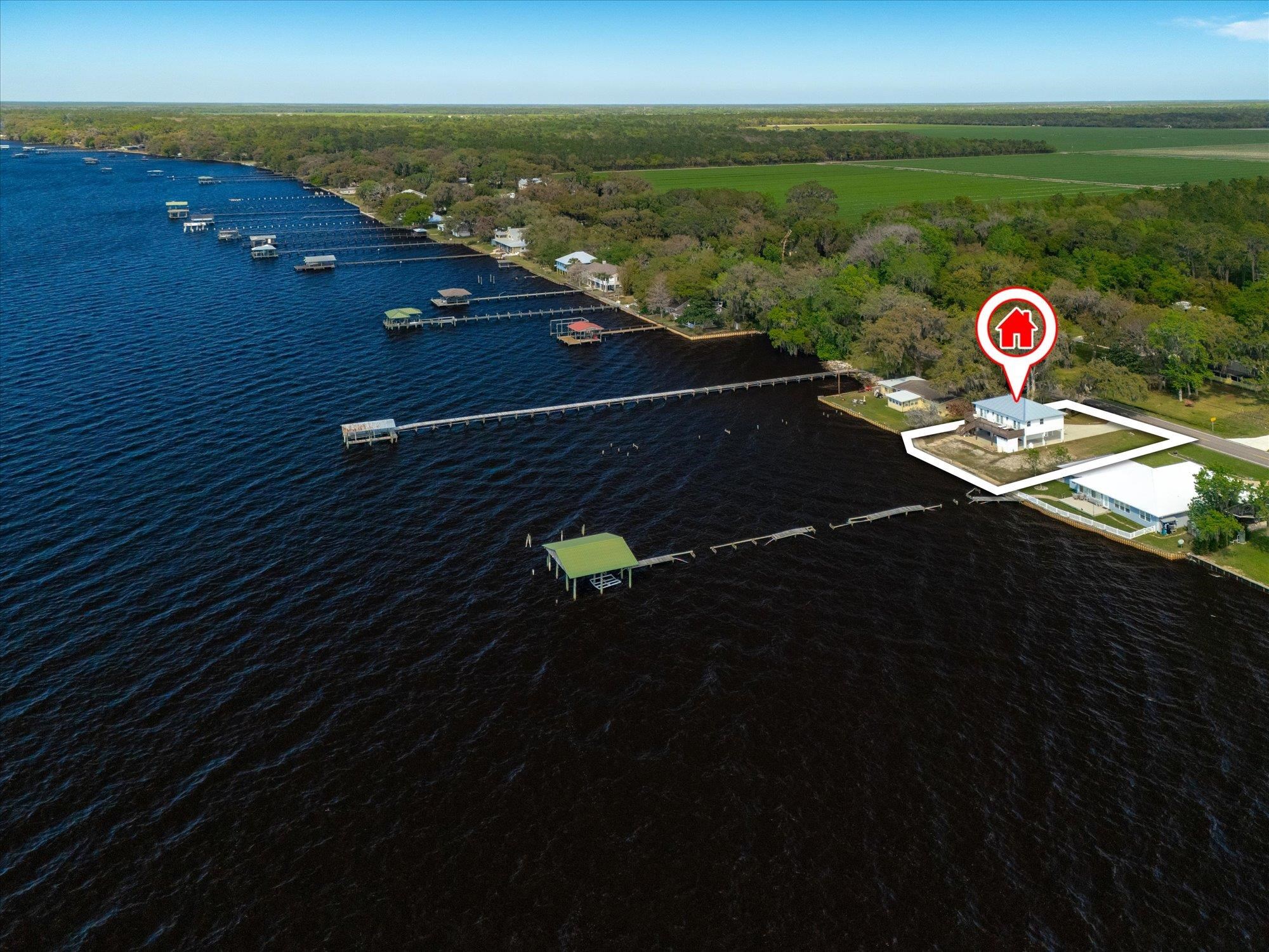 Welcome to your slice of riverfront paradise in St. Augustine! Built in 2024, this beautifully crafted home offers the perfect blend of modern construction and serene waterfront living along the scenic St. Johns River. Upon entry, you’ll find a convenient ground-level landing area complete with a laundry space and a half bathroom—perfect after a day spent outdoors. Head upstairs to a thoughtfully designed split floor plan featuring two spacious bedrooms, each with its own private en suite—ideal for comfort and privacy. Both bedrooms are enhanced by elegant double doors that open onto a sprawling deck, where you can unwind while taking in breathtaking river views and unforgettable sunsets. The main living space flows effortlessly from the kitchen, creating an inviting atmosphere for relaxing or entertaining. This property is built for enjoying the waterfront lifestyle, with a brand-new seawall installed in 2024 and paver stones guiding you to the bulkhead, where you can fish, boat, or simply soak in the tranquil surroundings. Additional storage is abundant, including a shed located beneath the carport for all your tools, gear, and toys. Whether you’re searching for a full-time residence or a weekend retreat, this exceptional riverfront home offers the best of Florida living with modern peace of mind and unbeatable views.