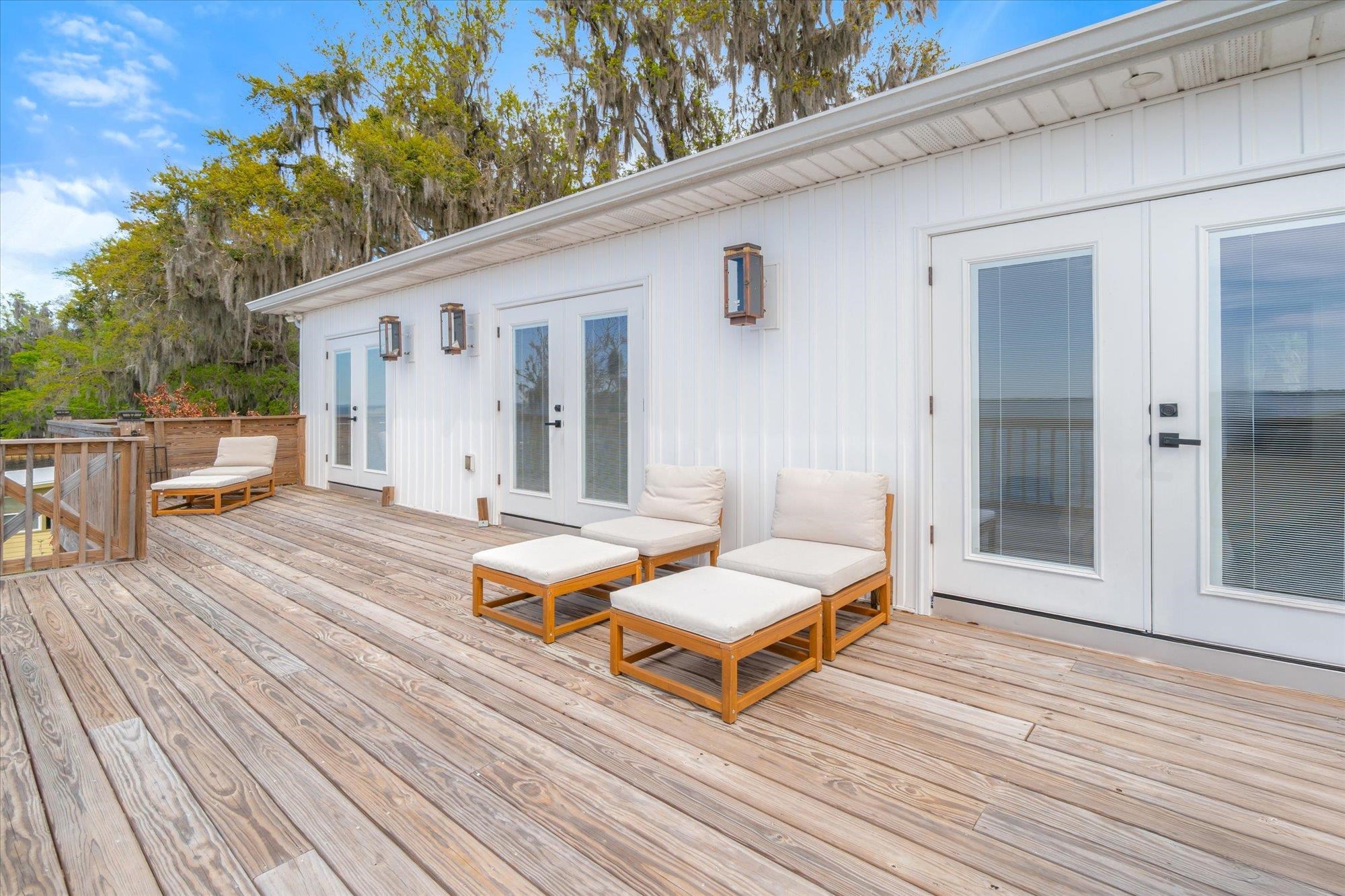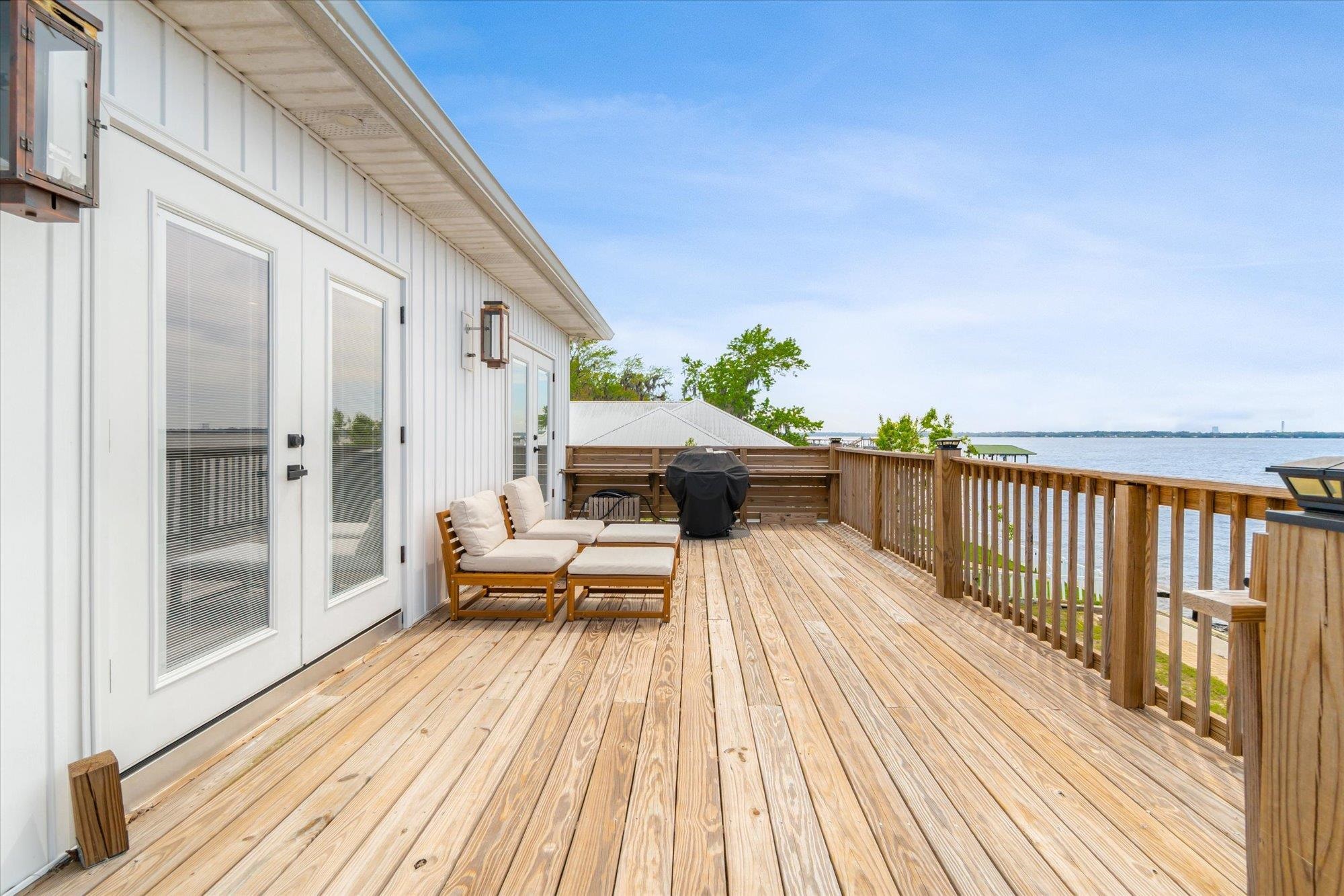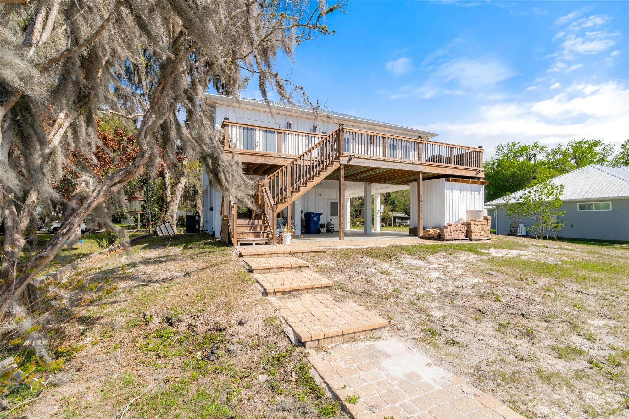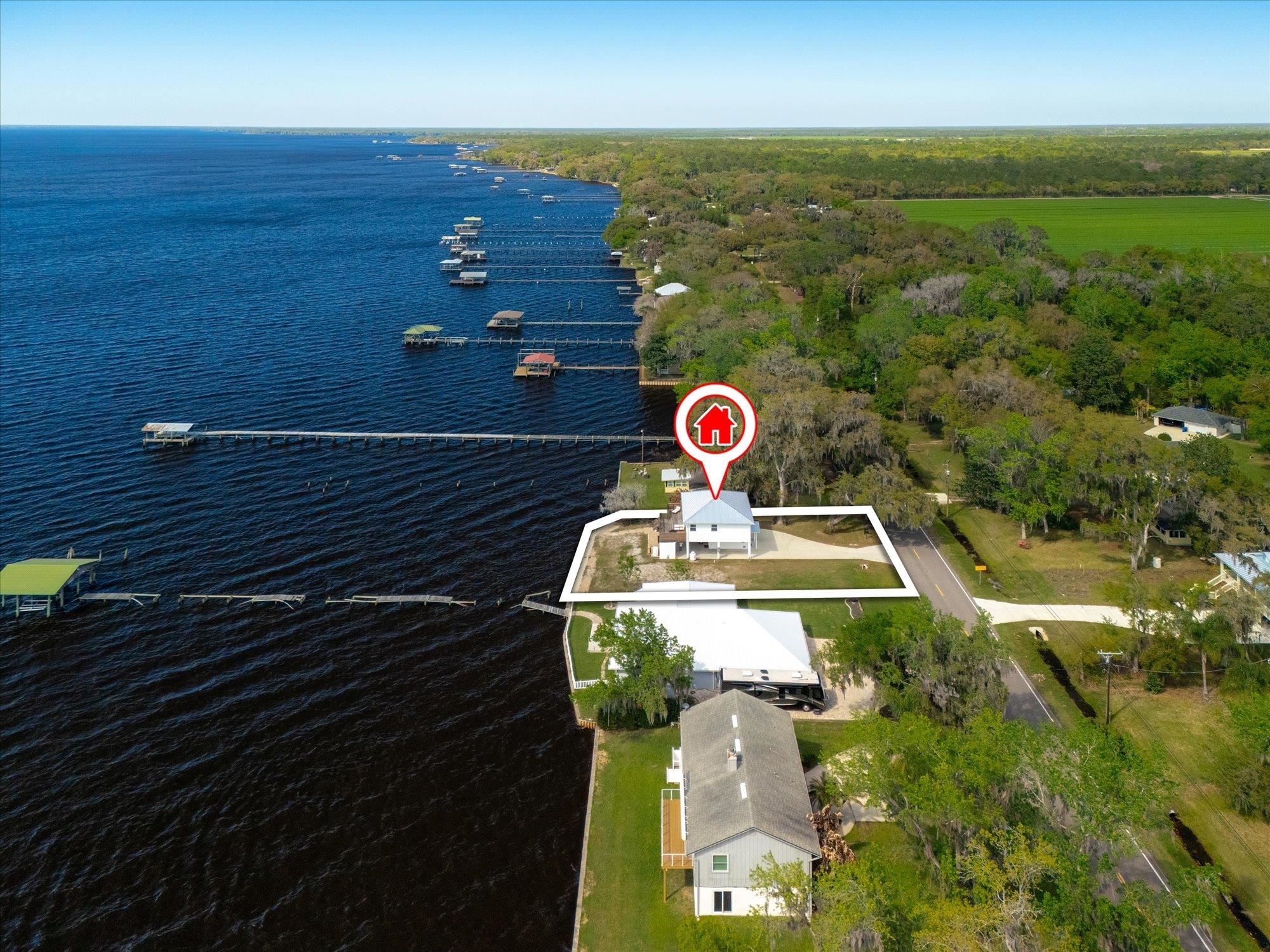 Welcome to your slice of riverfront paradise in St. Augustine! Built in 2024, this beautifully crafted home offers the perfect blend of modern construction and serene waterfront living along the scenic St. Johns River. Upon entry, you’ll find a convenient ground-level landing area complete with a laundry space and a half bathroom—perfect after a day spent outdoors. Head upstairs to a thoughtfully designed split floor plan featuring two spacious bedrooms, each with its own private en suite—ideal for comfort and privacy. Both bedrooms are enhanced by elegant double doors that open onto a sprawling deck, where you can unwind while taking in breathtaking river views and unforgettable sunsets. The main living space flows effortlessly from the kitchen, creating an inviting atmosphere for relaxing or entertaining. This property is built for enjoying the waterfront lifestyle, with a brand-new seawall installed in 2024 and paver stones guiding you to the bulkhead, where you can fish, boat, or simply soak in the tranquil surroundings. Additional storage is abundant, including a shed located beneath the carport for all your tools, gear, and toys. Whether you’re searching for a full-time residence or a weekend retreat, this exceptional riverfront home offers the best of Florida living with modern peace of mind and unbeatable views.