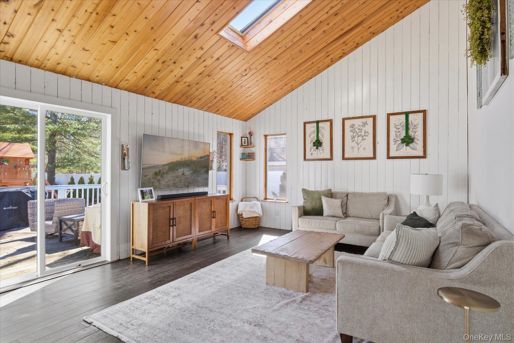 This beautifully updated three bedroom, two bath home offers the perfect blend of style, comfort, and everyday functionality. The heart of the home is a stunning kitchen featuring stainless steel appliances, a large center island, quartz countertops, and custom cabinetry, all opening seamlessly into the main living and dining areas. Natural light fills the home throughout, highlighted by an inviting dining space with built in seating and a spacious living room designed for both relaxation and entertaining. A standout feature is the vaulted living area with wood ceilings and skylight, creating a warm, airy space with direct access to the backyard. The full basement provides excellent storage and additional potential, while gas heat and central air ensure year round efficiency and comfort. Set on a deep, private property, the backyard offers endless possibilities with ample room for recreation, entertaining, or expansion. The outdoor deck and open green space create a true extension of the home’s living area. A two car detached garage adds convenience and versatility. A move in ready home with thoughtful updates, great flow, and exceptional indoor outdoor living.