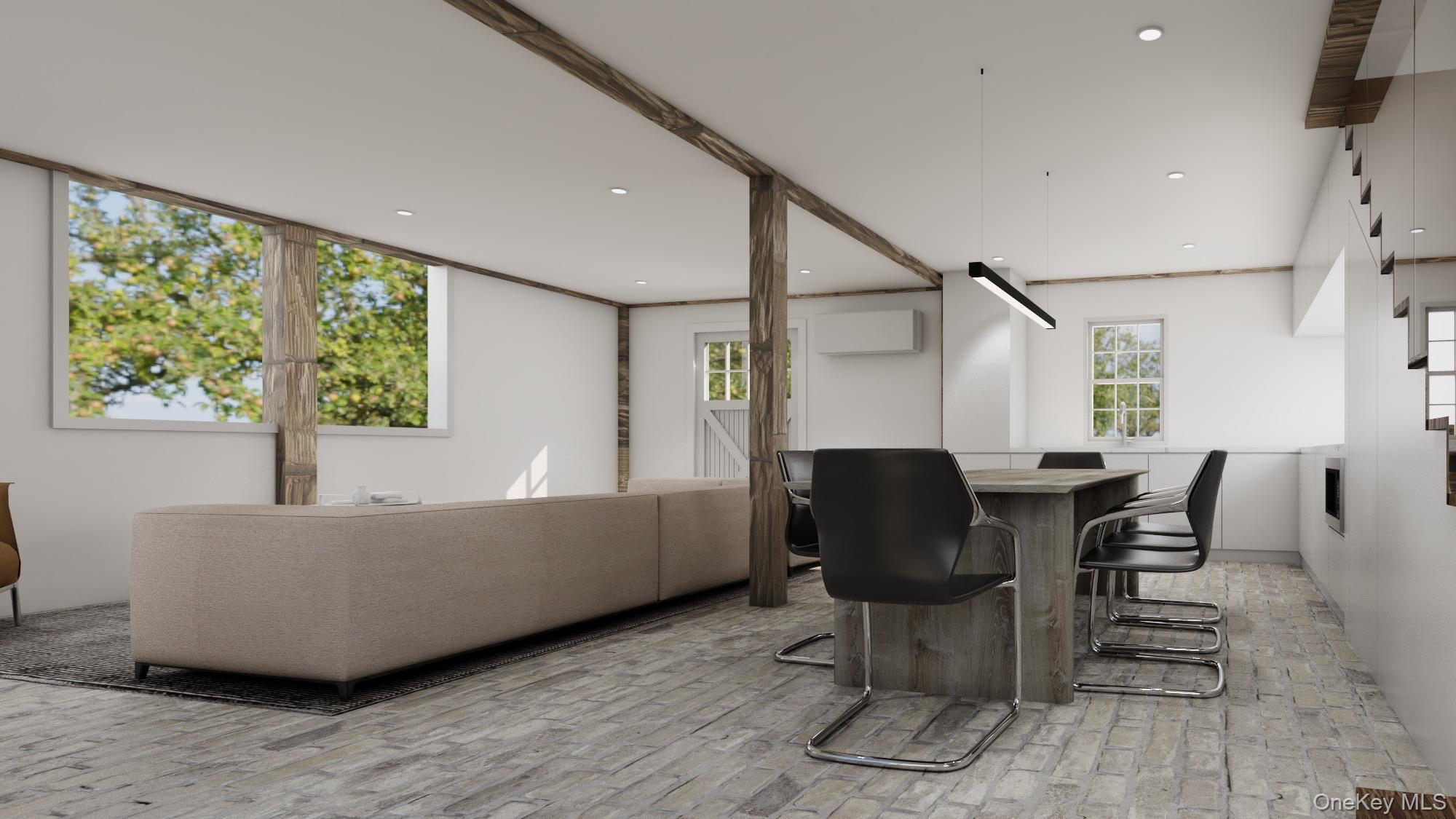 Bellwether Farm - A Rare Compound Opportunity in the Heart of Bedford Horse Country. Bellwether Farm presents a singular opportunity to create a fully bespoke country estate on Mt. Holly Road, one of Northern Westchester's most coveted addresses in the heart of Bedford-Katonah horse country. Approached along an idyllic country road, the property arrives like a page out of time: four pastoral acres of open meadow, structures that trace their roots to the early 19th century, and the unhurried feeling of a European farmstead - all just an hour from NYC. Bellwether Farm offers something vanishingly rare - the ability to build a primary residence entirely to your own vision, on land already home to a remarkable collection of historic structures. Architectural plans exist for a modern farmhouse of approx. 3, 600 sq ft (plus unfinished lower level), featuring dramatic vaulted ceilings, a full wall of glass opening to sweeping meadow views, and clean proportions that sit comfortably within the landscape. The design envisions four bedrooms and three baths, as reflected in the renderings. A seven-bedroom septic is approved and construction drawings are in hand, providing a clear path toward completion. The property's architect and builder are available to collaborate, or a buyer may engage their own design and team. What distinguishes Bellwether Farm is a grandfathered multi-structure configuration no longer achievable under current Bedford zoning. The result is a thoughtfully composed compound comprising approx. 3, 300 sq ft across three buildings - the Barn, Carriage House, and Milk House - offering rare flexibility for living, hosting, and creative work that a single-structure residence simply cannot. The Barn, featuring historic details like wavy glass diamond-paned windows and classic barn doors, includes a stylish two-bedroom apartment above and unfinished studio below, suited as a wellness space, creative studio, or lounge. Ready to occupy from day one, the apartment is an ideal base while overseeing construction. The Carriage House, with hand-hewn beams, antique brick floors, and new large-scale commercial glass, awaits final transformation as home office, creative studio, or guest cottage, with living and kitchenette on the main floor and lofted sleeping quarters above. Completion plans for both are approved by the Town of Bedford. The charming Milk House sits quietly apart - perfect for a writer's studio or garden retreat. Once a thriving working farm, the land remains essentially untouched - open pasture, long meadow views, and historic stone walls that speak to generations of quiet, unhurried life. Mature plantings frame an effortless setting for entertaining, future gardens, and pool placement. A gravel motor court lends a graceful arrival that feels entirely of the place. Bellwether Farm is a rare chance to build something entirely your own - a country estate with room for guests, and creativity, each in its own dedicated setting, in one of the Hudson Valley's most beautiful and sought-after enclaves. Renderings shown. Details available upon request.