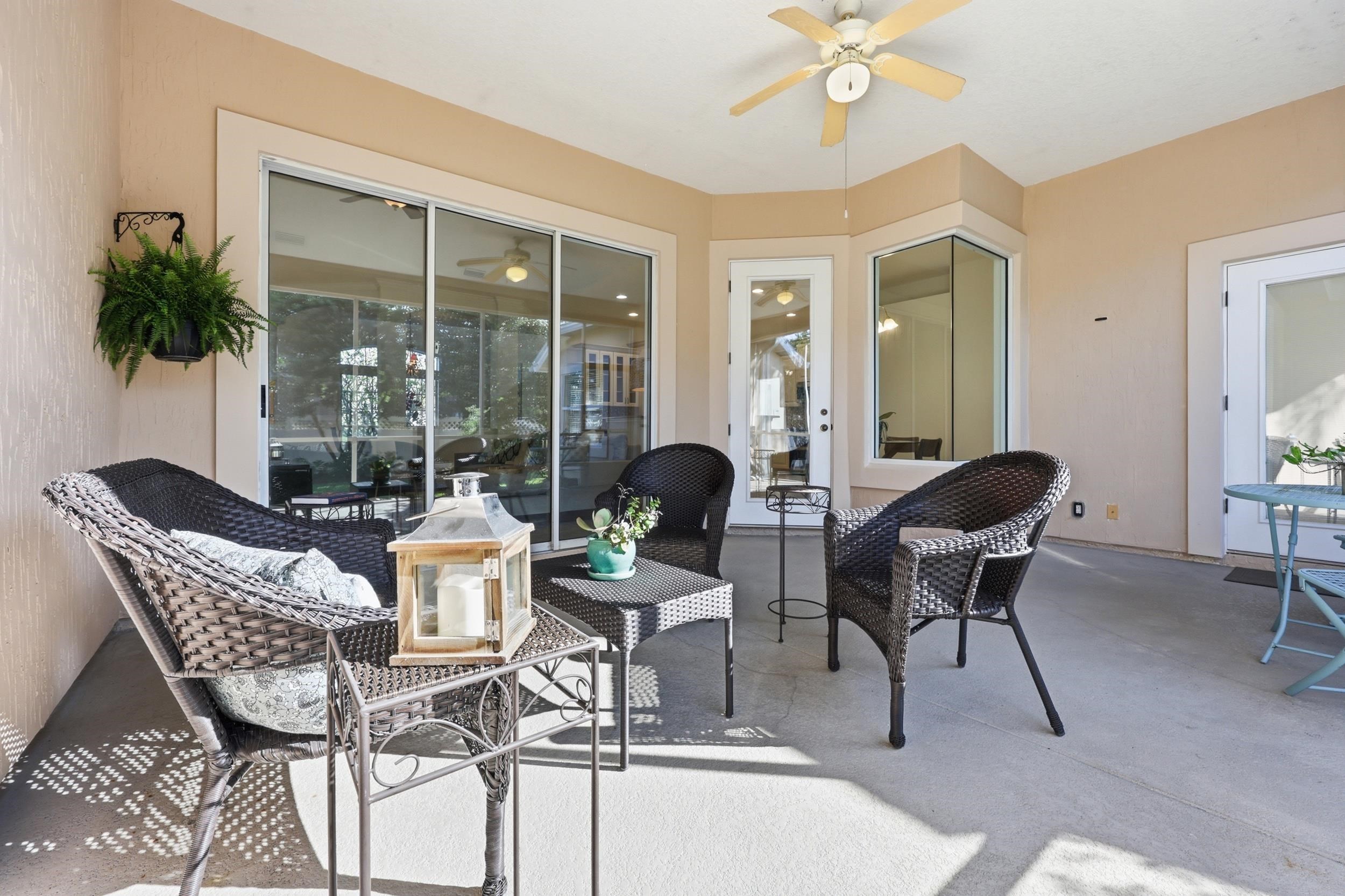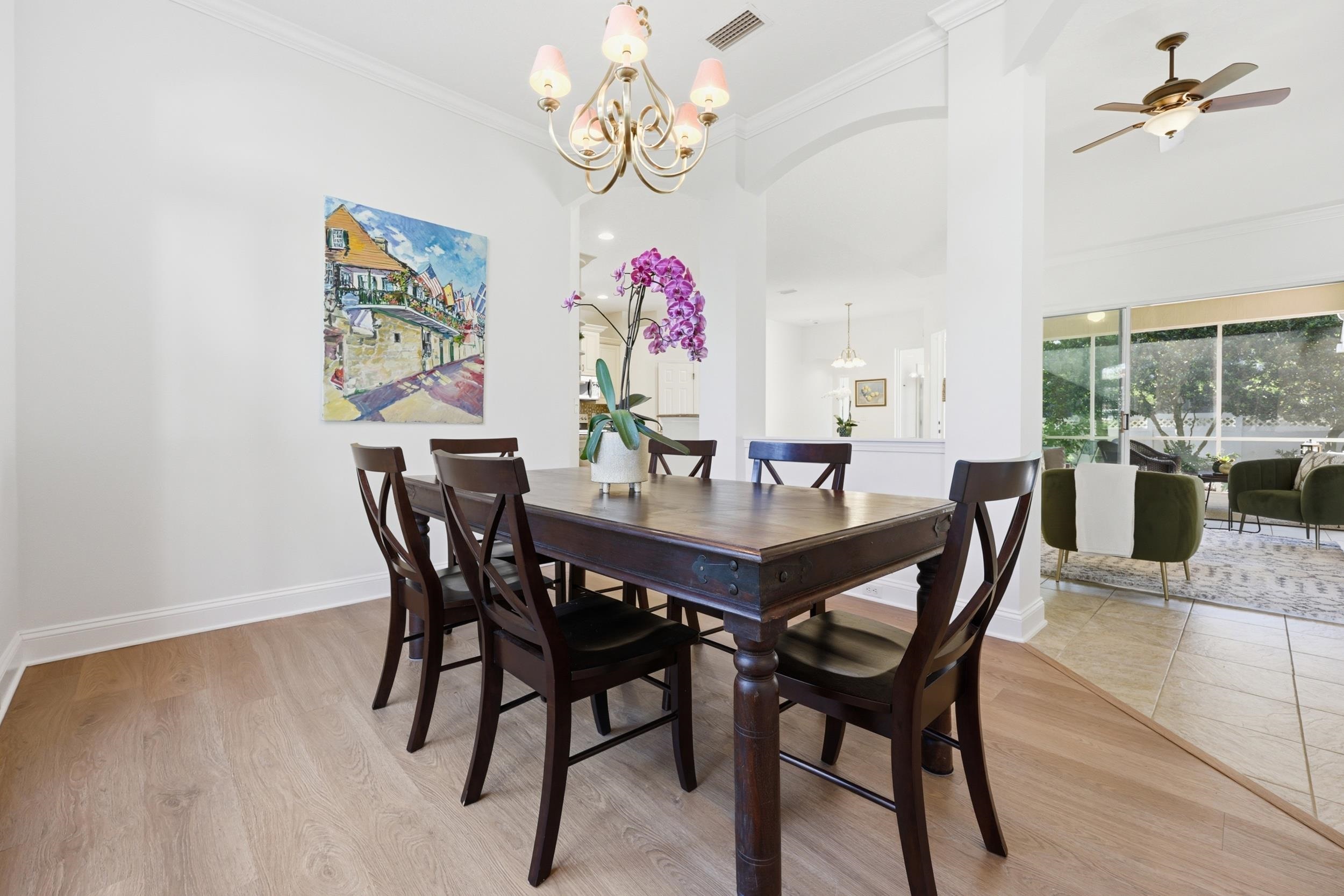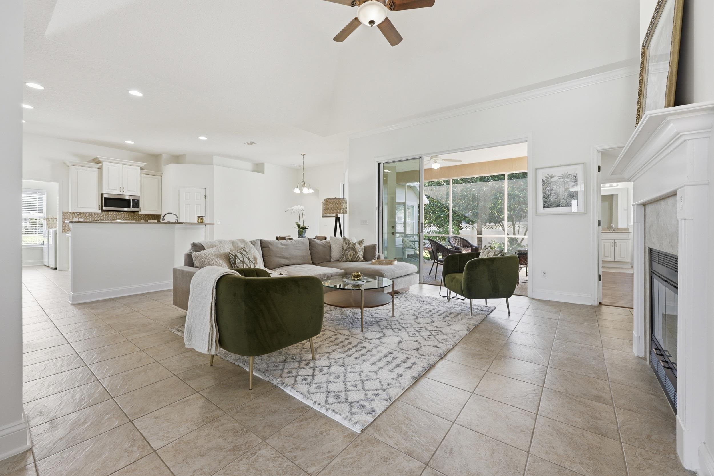 Welcome to 933 Oxford Drive, located in the sought-after Oxford section of Royal St. Augustine. This beautifully maintained ICI-built home offers 4 bedrooms, 3 full baths, and 2, 086 square feet of heated and cooled living space, thoughtfully designed for both everyday living and effortless entertaining. Positioned on a spacious corner lot, homes in the Oxford section are known for their larger homesites and quality ICI construction, offering a sense of space and privacy. Step inside to discover soaring ceilings, architectural details, and an open-concept layout that seamlessly connects the main living areas. The great room features vaulted ceilings, custom built-ins, crown moulding, and a fireplace, creating a warm and inviting focal point of the home. The kitchen is well-appointed with granite countertops, updated cabinetry, a pantry, and a touch-sensor faucet, opening to both the living space and formal dining area—ideal for hosting and everyday living. Tri-fold patio doors lead to a large, private screened lanai, creating a true indoor-outdoor living experience. The backyard offers ample room for a pool and is enhanced by beautiful Florida-friendly landscaping. The primary suite is spacious and serene, featuring private lanai access, a large walk-in closet, double vanity, soaking tub, and a separate shower. A secondary bedroom with an en-suite bath provides excellent flexibility for guests, while the front bedroom serves as a perfect flex space for a home office, den, or additional bedroom. Additional enhancements include a new roof and gutters installed in 2020, fresh exterior paint completed in 2025, and interior paint in 2026. The home also features updated luxury vinyl plank flooring, new stainless steel appliances, a water softener and filtration system, as well as a washer and dryer for added convenience. Beyond the home itself, Royal St. Augustine offers a vibrant, active lifestyle. This golf course community features a welcoming atmosphere with sidewalk-lined streets, community engagement, and regular neighborhood events such as food trucks and social gatherings. Residents also enjoy access to pickleball and recreational amenities, making it easy to stay active and connected. Ideally located just minutes from shopping, dining, and I-95, and only 5 minutes to historic downtown St. Augustine and 10 minutes to the beach, this home offers the perfect blend of convenience and true Florida Living!