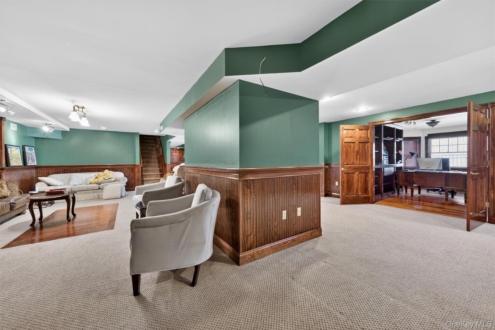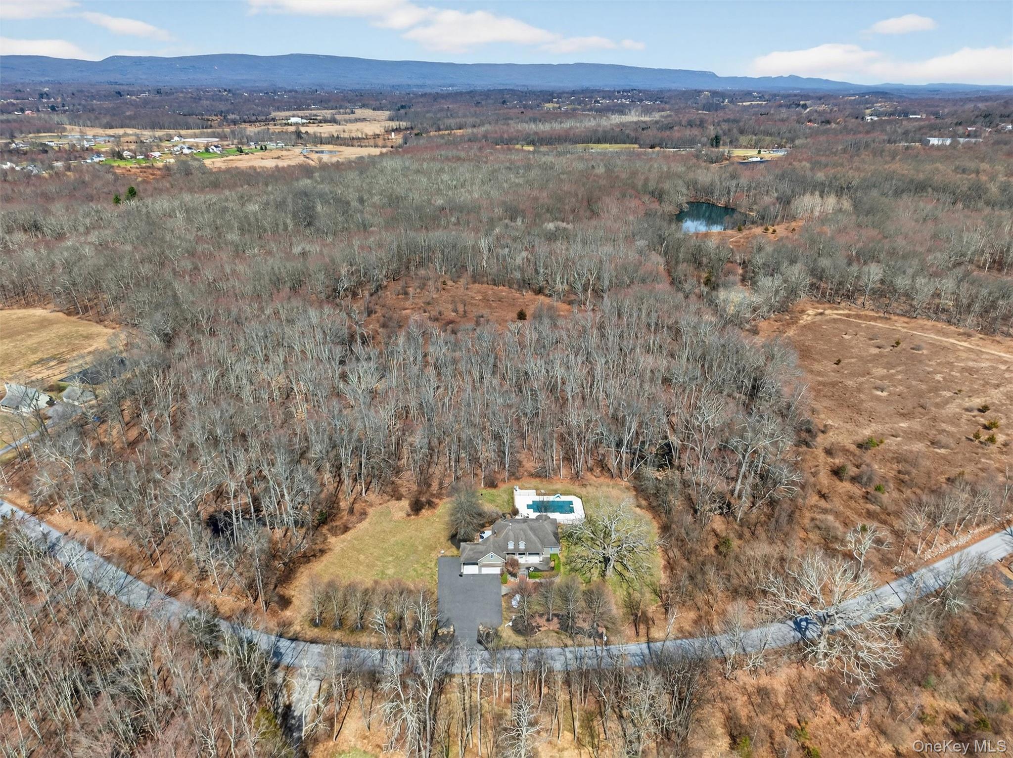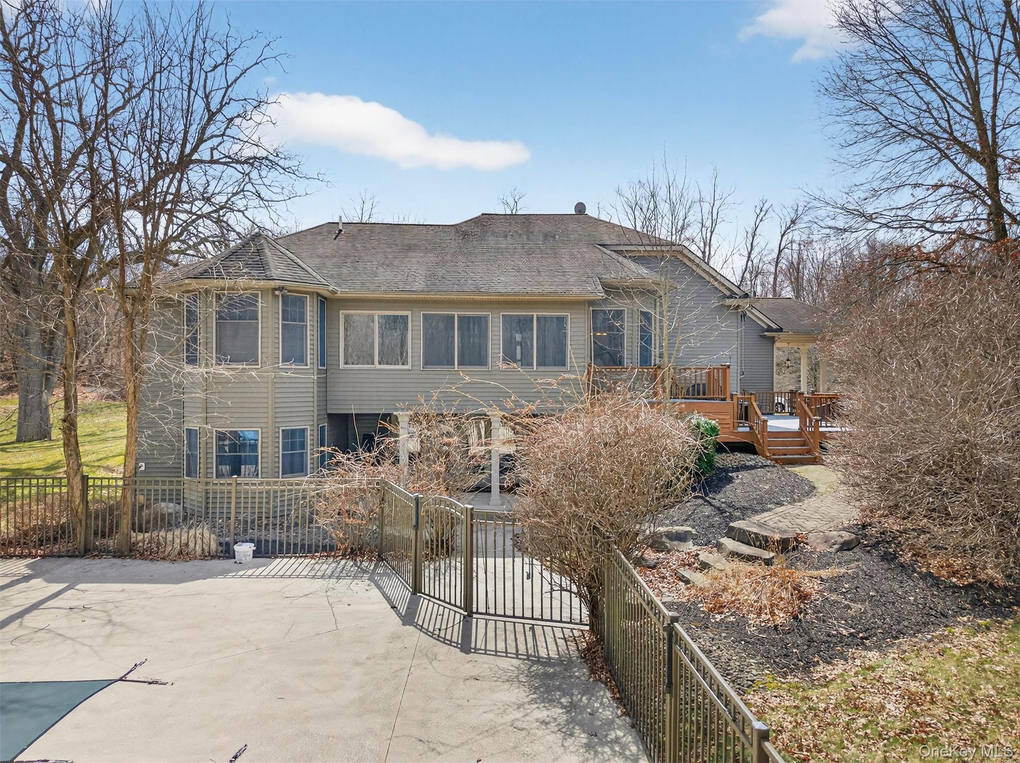 Nestled on a private 5. 1-acre property, this custom contemporary Cape-style home offers the perfect balance of luxury, comfort, and natural beauty. Thoughtfully designed with refined finishes and exceptional living spaces, this residence creates an inviting retreat while still being close to the many attractions of the Hudson Valley. Step inside to discover a bright and spacious main level highlighted by 9+ foot ceilings, custom moldings, and hardwood floors with elegant inlay. The open kitchen features stainless steel appliances and flows seamlessly into a dining area and an inviting enclosed porch overlooking the backyard and pool. A separate formal dining room provides an ideal setting for gatherings and special occasions. The main level also offers three spacious bedrooms, including an impressive primary suite with a private en-suite bath, as well as the convenience of a laundry room on the same level. The home continues to impress with a finished walk-up studio, perfect for a home office, guest space, or creative studio. The full walkout lower level is designed for entertaining and everyday living, featuring a pool table area, a stylish full wet bar, a three-sided fireplace, an additional office, and a bath with laundry hookup. Outdoor living is equally exceptional. An oversized deck overlooks the beautifully landscaped grounds, where a heated in-ground saltwater pool with a slide and diving board are surrounded by professionally designed gardens, stone walls, and paver walkways, creating a private outdoor oasis. Additional highlights include a heated garage with an additional covered carport, a whole-house propane backup generator, and carefully maintained landscaping that enhances the home’s tranquil setting. Located in the Town of Crawford with a Middletown mailing address and within the Valley Central School District, this property offers privacy while remaining conveniently close to shopping, dining, recreation, and major commuter routes. A rare opportunity to own a beautifully crafted home on over five acres, combining contemporary style, thoughtful amenities, and a peaceful natural setting.