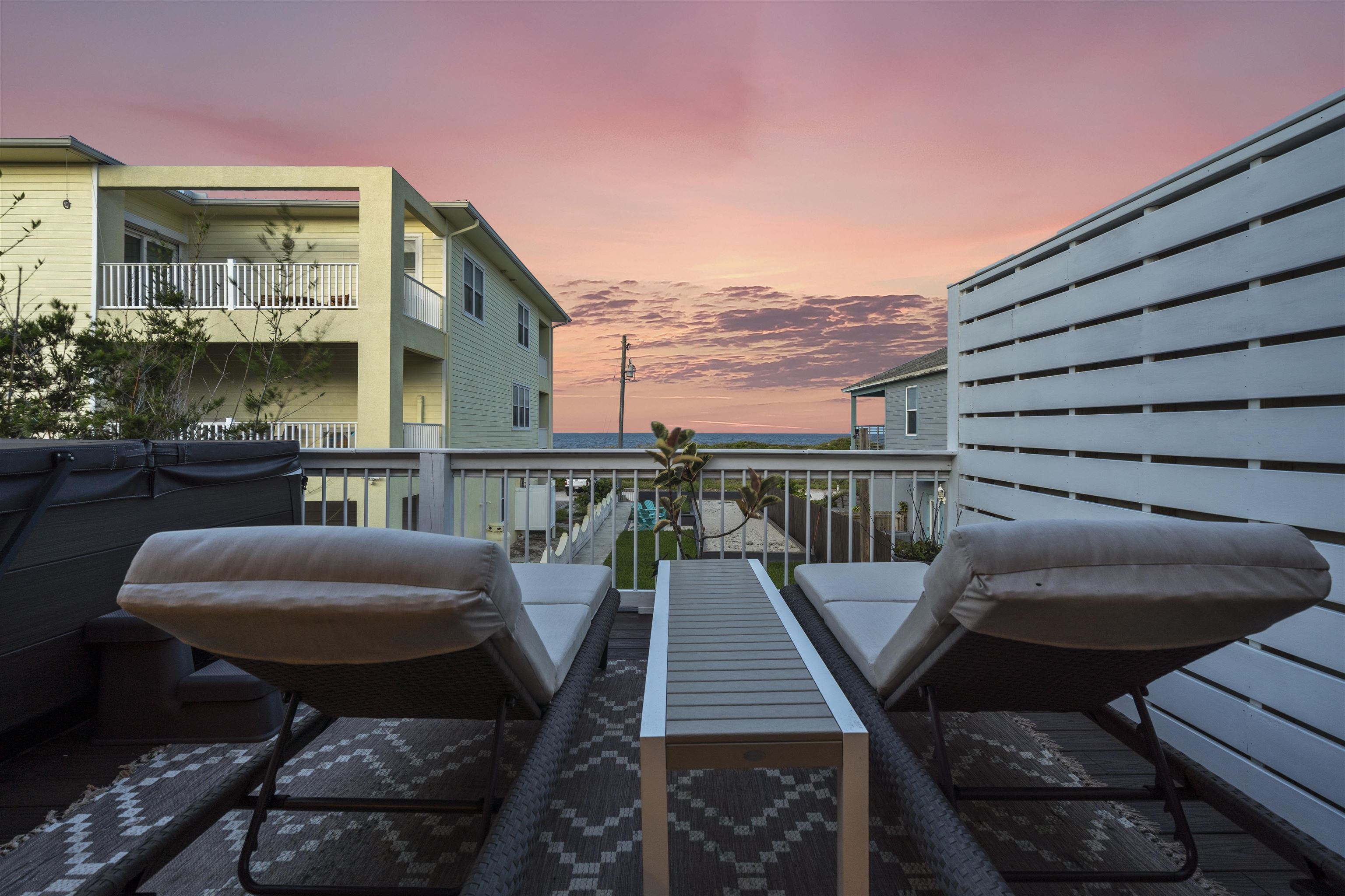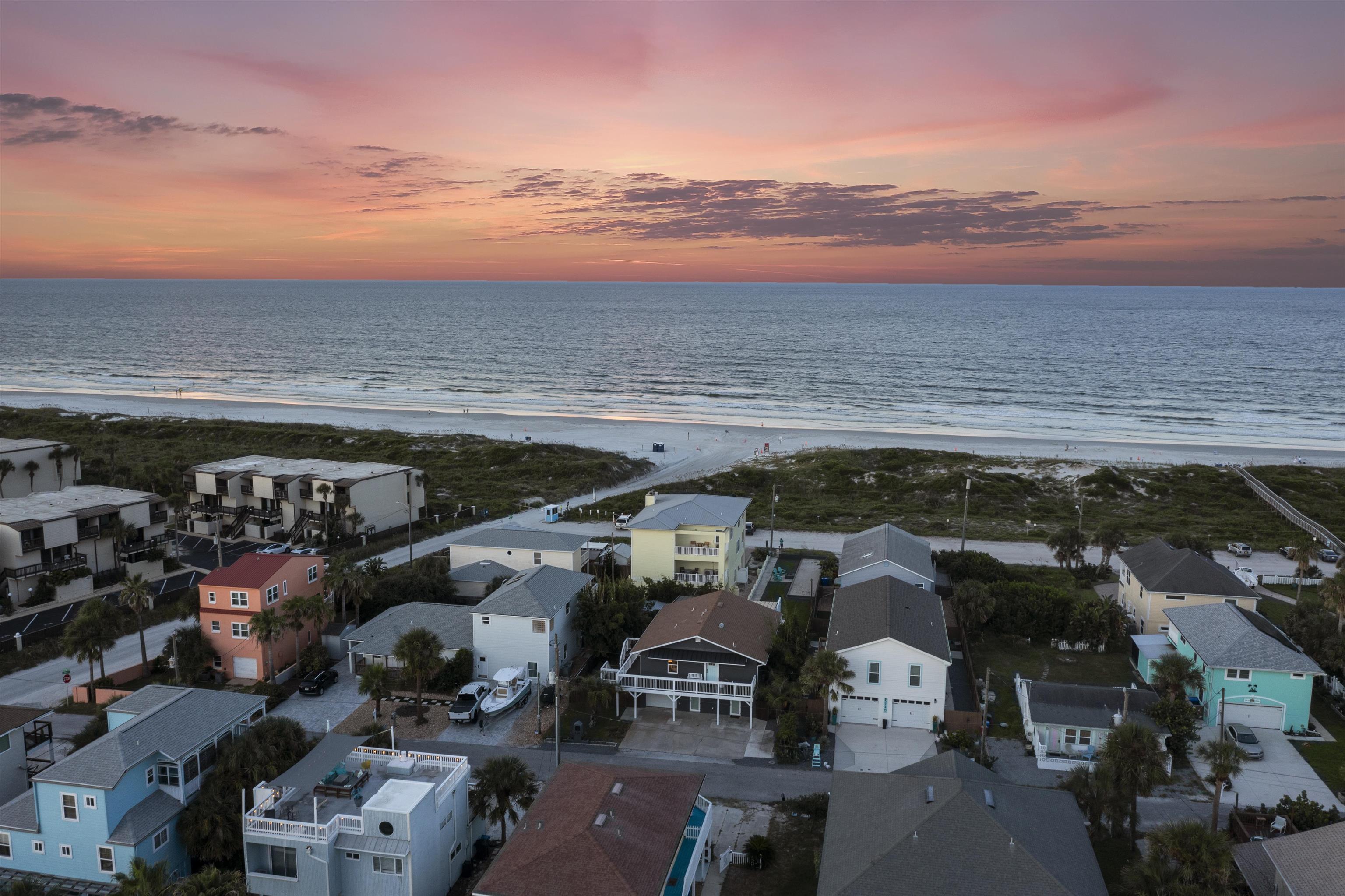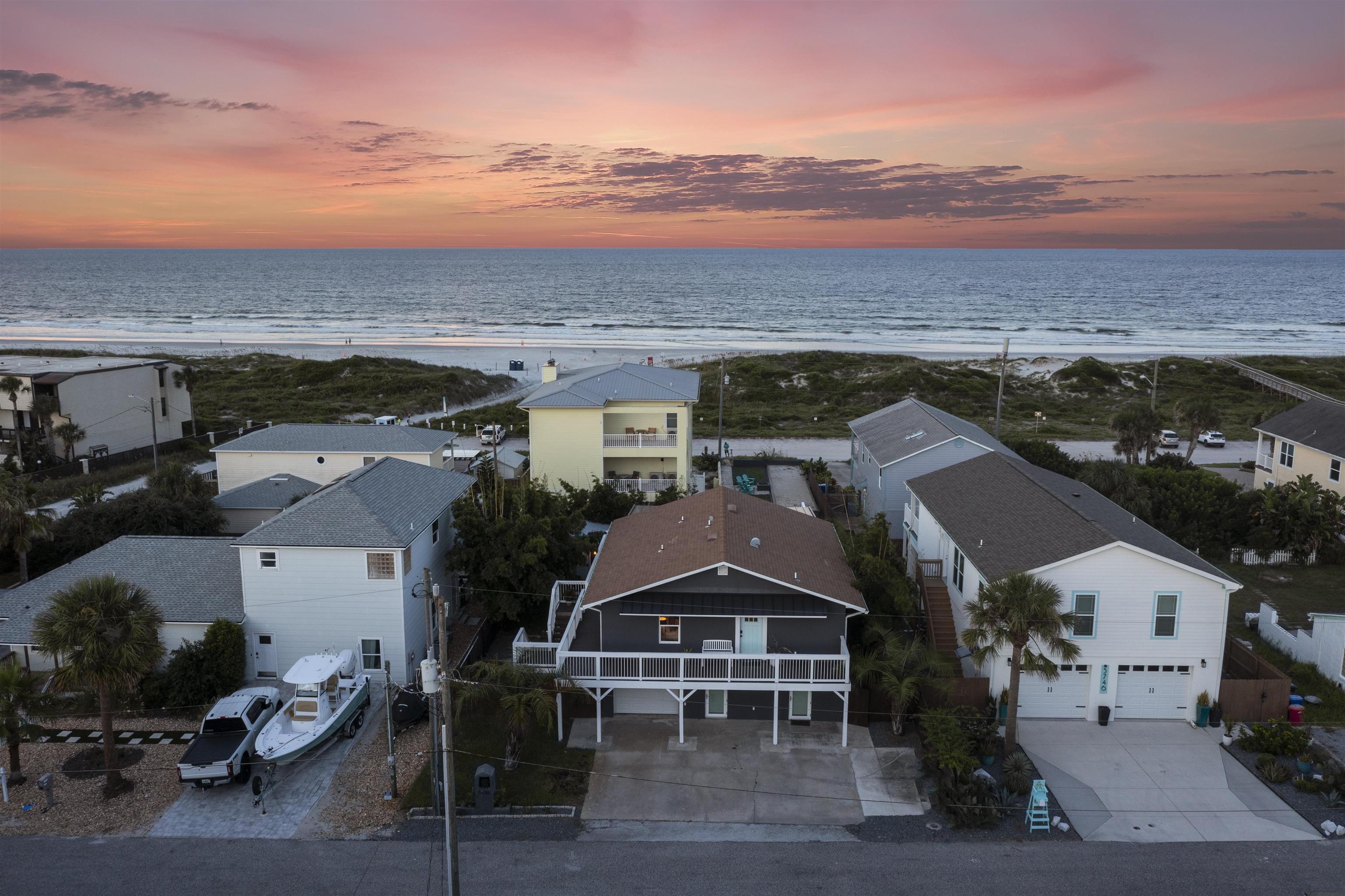 Some properties check a box or two. This one checks every single one. Set on a rare street to street lot running from Rudolph to Gloria on Anastasia Island, this solid concrete block home sits at a high elevation with exceptional dune protection and unobstructed Atlantic views that stop you in your tracks. Two fully independent units, each with two bedrooms and two bathrooms and their own private entrance, make this property equally compelling as a primary residence, a multigenerational compound, a vacation retreat, or a proven income producing investment. The upper level is the crown jewel. An open concept great room flows seamlessly from the gourmet kitchen through the dining and living areas and out to a rear deck where the Atlantic becomes your backdrop. The kitchen is anchored by a large granite island, custom tile work, and premium appliances. Outside, a hot tub, grilling station, and panoramic ocean vistas make the deck an extension of the living space rather than an afterthought. The ocean facing primary bedroom paired with its spa caliber en suite, soaking tub, and double glass enclosed shower is in a category of its own. The current owners use this level as their personal retreat and have rented only one bedroom while keeping the primary bedroom locked off entirely. The upside for a new owner willing to put both bedrooms into rotation is significant. The ground floor unit stands beautifully on its own. Polished concrete floors, an open kitchen and living layout, two well appointed bedrooms, and stylish bathrooms create a space that feels both modern and inviting. It has been a consistent and reliable performer as a short term rental. Beyond the two units, the property includes a regulation bocce ball court, a spacious garage with ample room for vehicles and all your beach gear, and a detached storage unit with its own mini split system that works perfectly as a private home office or climate controlled storage. Two outdoor showers, two private entrances, one extraordinary location. This is Anastasia Island living at its finest. Schedule your private showing today.