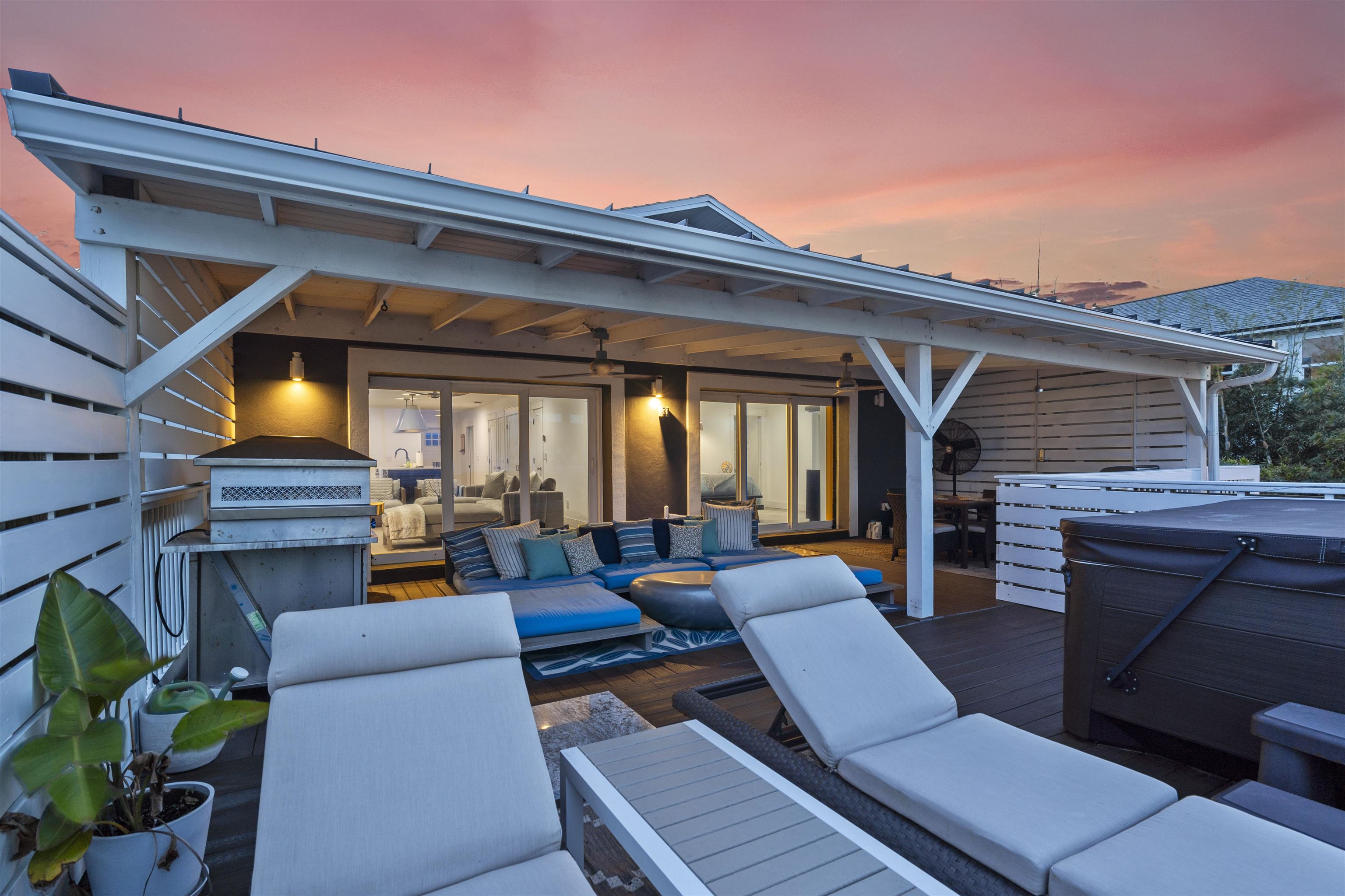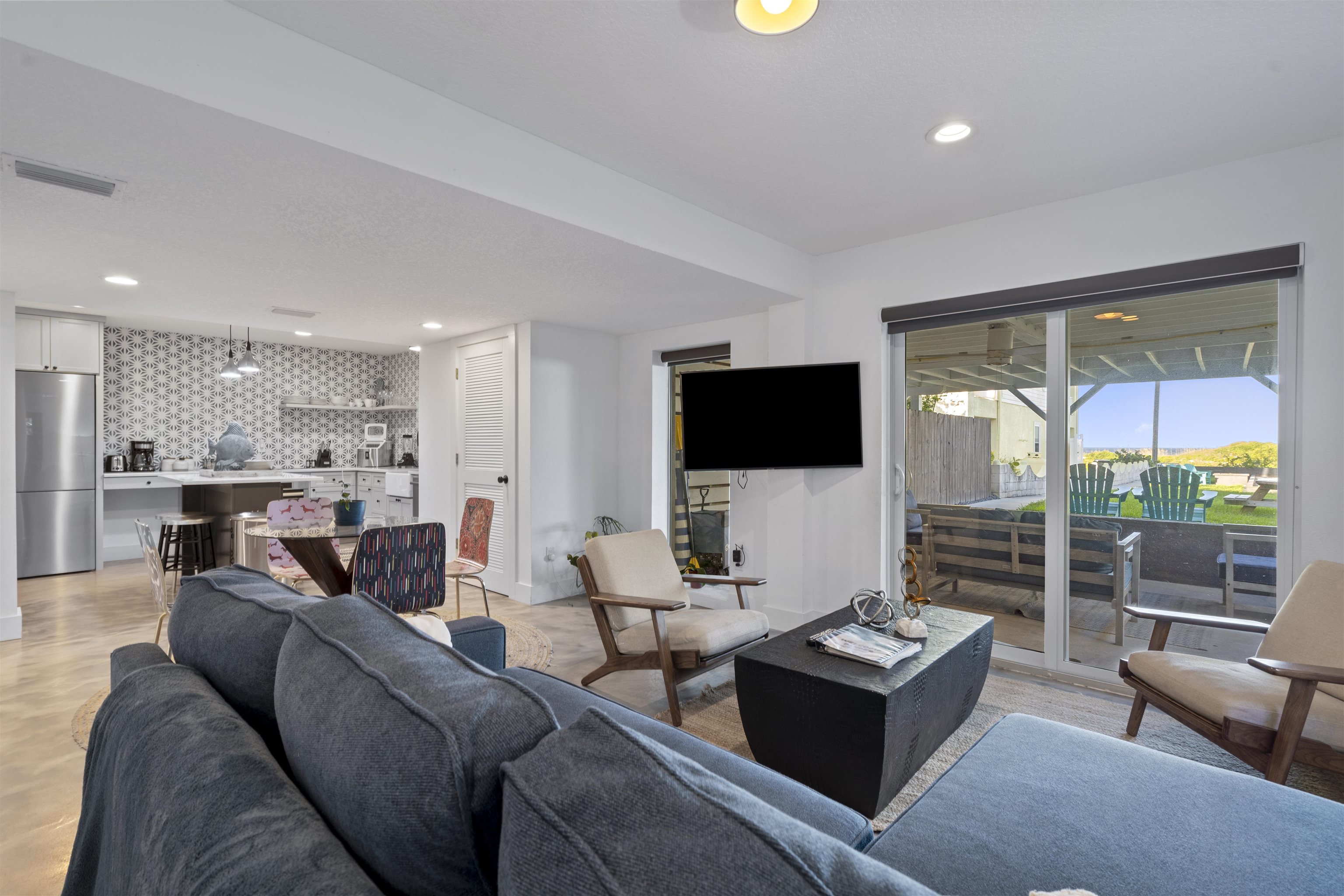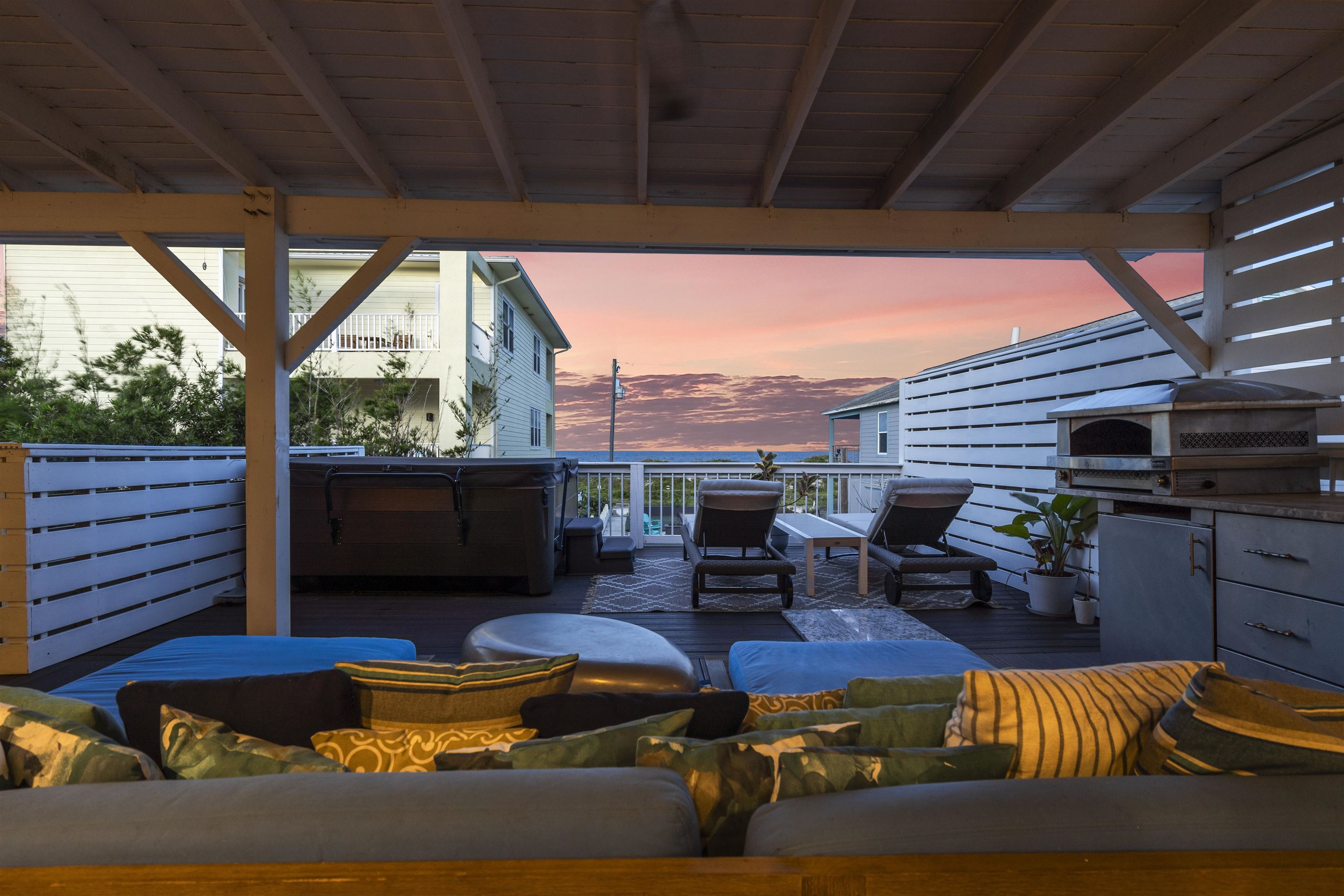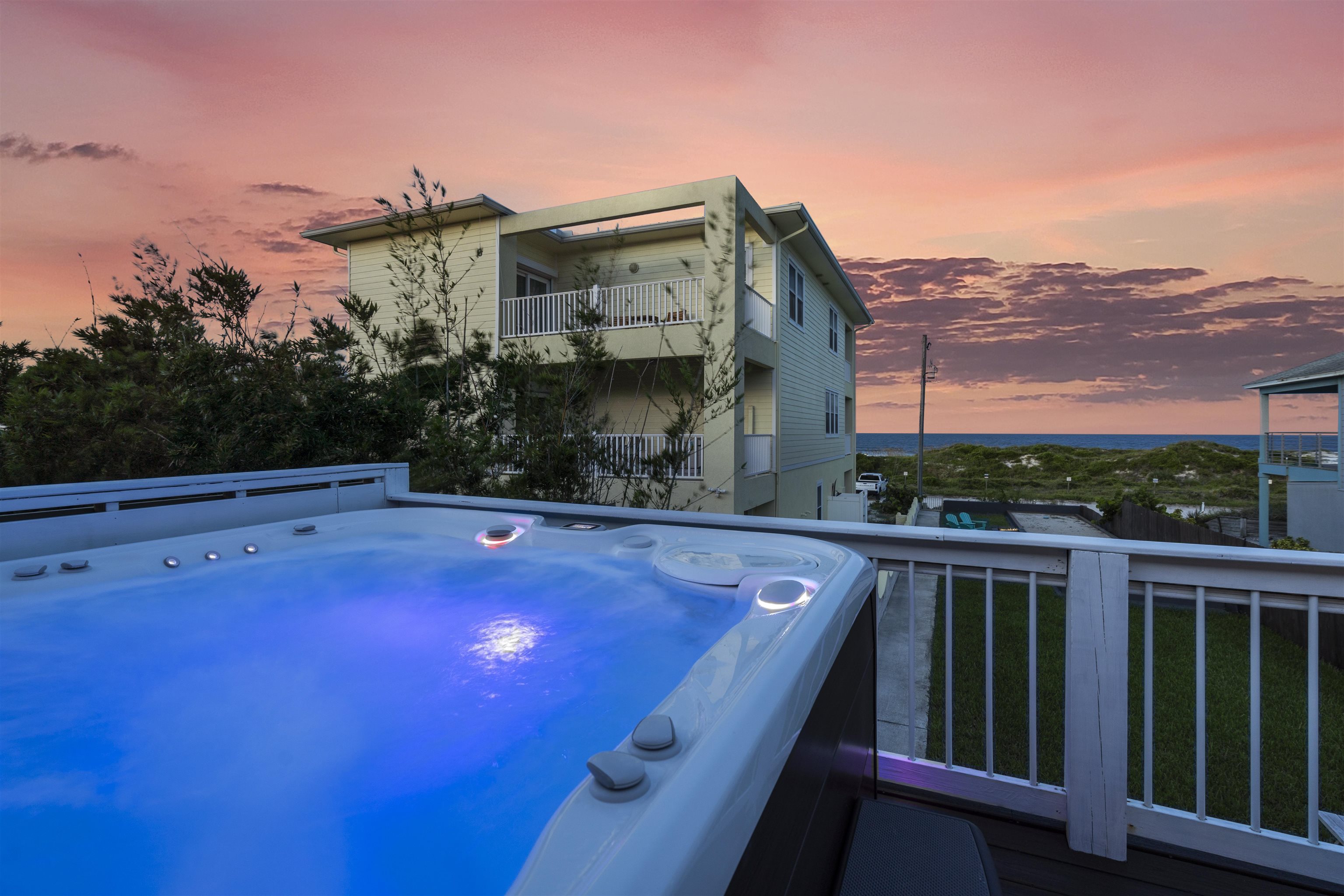 Some properties check a box or two. This one checks every single one. Set on a rare street to street lot running from Rudolph to Gloria on Anastasia Island, this solid concrete block home sits at a high elevation with exceptional dune protection and unobstructed Atlantic views that stop you in your tracks. Two fully independent units, each with two bedrooms and two bathrooms and their own private entrance, make this property equally compelling as a primary residence, a multigenerational compound, a vacation retreat, or a proven income producing investment. The upper level is the crown jewel. An open concept great room flows seamlessly from the gourmet kitchen through the dining and living areas and out to a rear deck where the Atlantic becomes your backdrop. The kitchen is anchored by a large granite island, custom tile work, and premium appliances. Outside, a hot tub, grilling station, and panoramic ocean vistas make the deck an extension of the living space rather than an afterthought. The ocean facing primary bedroom paired with its spa caliber en suite, soaking tub, and double glass enclosed shower is in a category of its own. The current owners use this level as their personal retreat and have rented only one bedroom while keeping the primary bedroom locked off entirely. The upside for a new owner willing to put both bedrooms into rotation is significant. The ground floor unit stands beautifully on its own. Polished concrete floors, an open kitchen and living layout, two well appointed bedrooms, and stylish bathrooms create a space that feels both modern and inviting. It has been a consistent and reliable performer as a short term rental. Beyond the two units, the property includes a regulation bocce ball court, a spacious garage with ample room for vehicles and all your beach gear, and a detached storage unit with its own mini split system that works perfectly as a private home office or climate controlled storage. Two outdoor showers, two private entrances, one extraordinary location. This is Anastasia Island living at its finest. Schedule your private showing today.