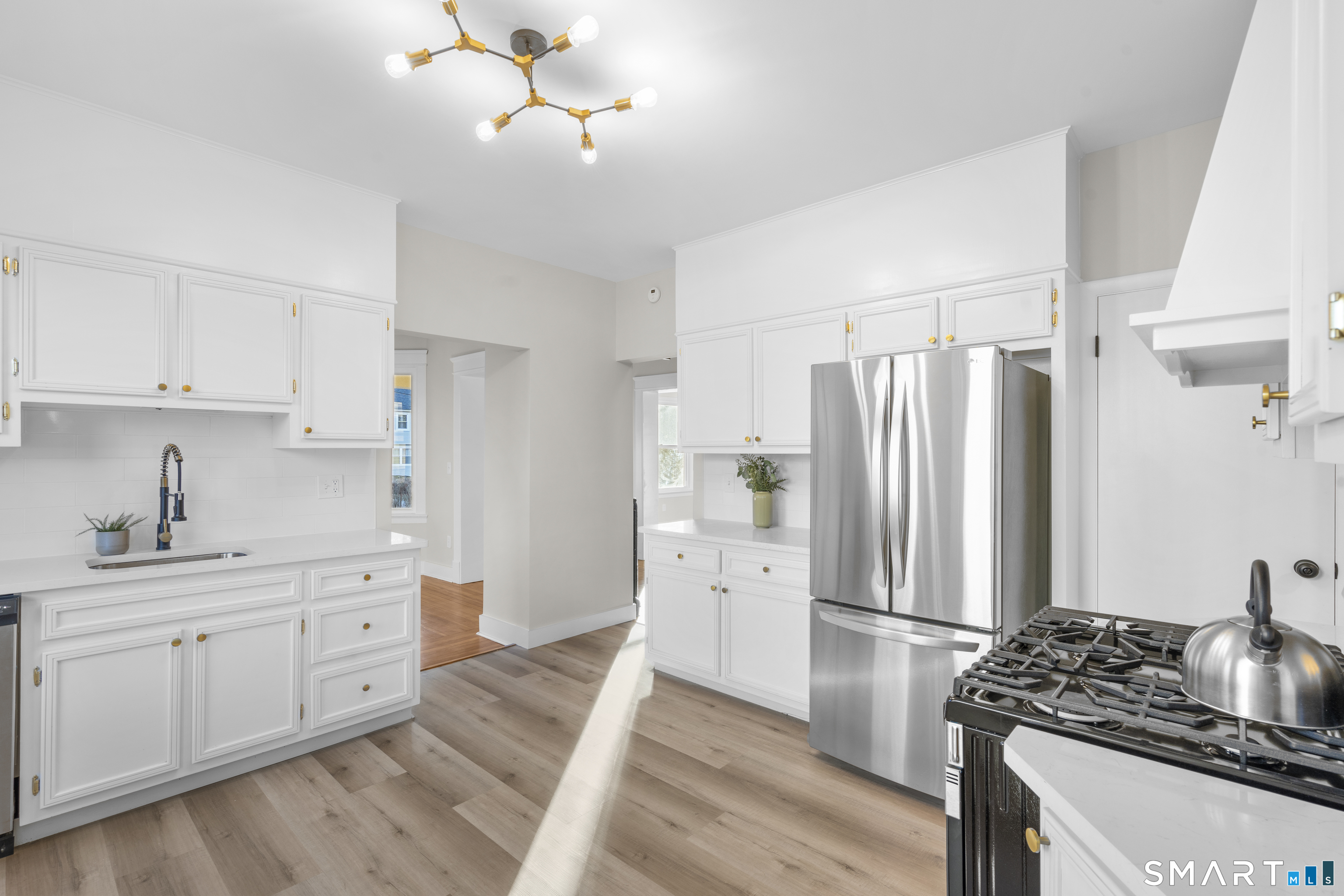 Fully renovated 4 bedroom, 2 bathroom single family offering the perfect blend of space, layout, and modern finishes. This home features a bright and open layout with a spacious living room and dining area, filled with natural light and ideal for both everyday living and entertaining. The kitchen has been beautifully updated with quartz countertops, new appliances, and a clean modern design. The first floor also includes a large fully renovated bathroom along with refinished hardwood flooring throughout. Upstairs, the second floor features brand new LVP flooring and generously sized bedrooms. Multiple bedrooms offer more than one closet, providing exceptional storage space that is rarely found in similar homes. Both bathrooms have been updated with modern finishes, and additional upgrades include stylish light fixtures throughout. The mechanicals have been well maintained, recently serviced, and are in great condition. The home also offers a large unfinished basement, perfect for storage or future potential. Move in ready and thoughtfully renovated throughout, this is a great opportunity in Watertown for someone looking for space, updates, and long term value.