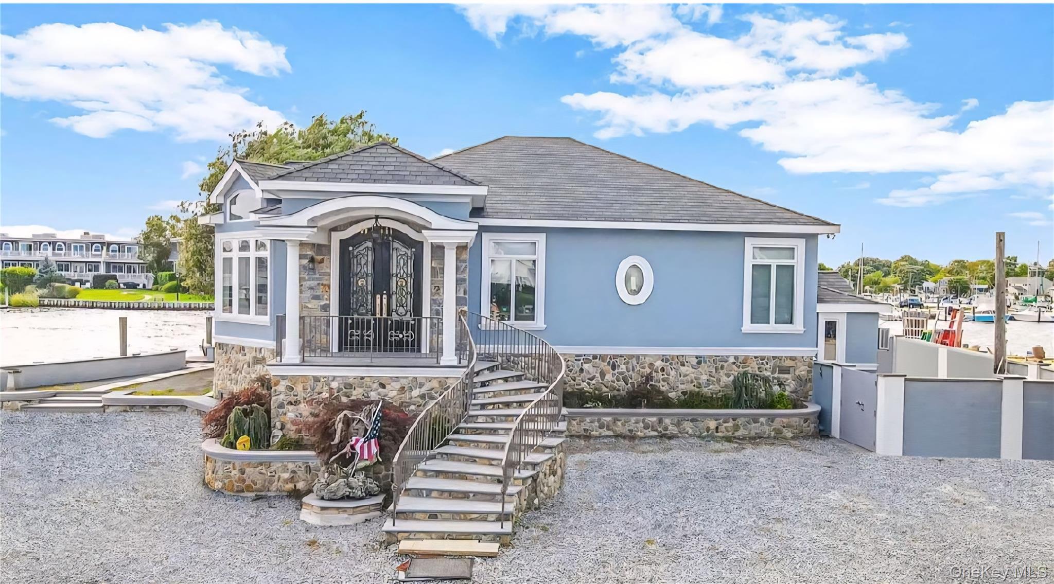 Wake up to beautiful waterfront views in this custom-built European-style home located in desirable West Islip. This elegant 3-bedroom, 2-bath residence offers approximately 2, 000 sq ft of thoughtfully designed living space featuring radiant heated floors and light-filled interiors with water views from multiple rooms. The property features a multi-level backyard setting ideal for outdoor enjoyment, entertaining, or relaxing while taking in scenic sunsets. Boating enthusiasts will appreciate the opportunity for private dockage with access to the Great South Bay and convenient boating routes toward Fire Island. Blending timeless architectural character with modern comfort, this home offers a unique coastal lifestyle experience while remaining conveniently located near shopping, dining, transportation options, and other local amenities. This waterfront residence presents an excellent opportunity for year-round living or a weekend retreat.