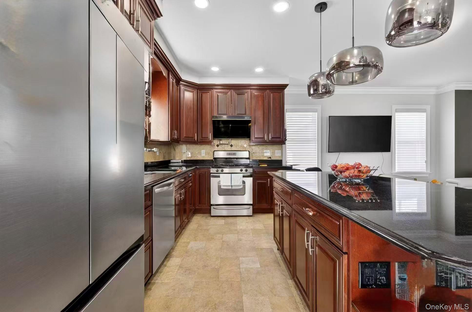 location! location! location! Stately & Spacious Colonial in Prime North Flushing! Nestled on a quiet residential block, this impressive home offers 5 oversized bedrooms and 4. 5 baths, 2-car detached garage and Features a 10-foot-wide private driveway — completely independent, not shared. featuring a gracious formal living room, elegant formal dining room, grand entry foyer, and a beautifully designed kitchen with a large granite island. Dark hardwood floors and a stunning wrought iron staircase complete the home’s sophisticated interior. Separated entry to full finished basement. Additional highlights include upgraded 200-amp electrical service, 4-zone heat, central vacuum, home EV charging, irrigation system, beautifully landscaped backyard, Cambridge pavers, gas heat, a new roof with solar panels, 2 sets of washer and dryer. Ideally located just moments from Northern Blvd, shopping, restaurants, Q12/Q13 buses, and the LIRR for an easy commute to Manhattan.