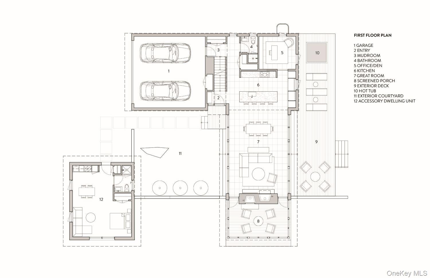 Welcome to The Oakley. Tucked along a quiet bend in one of Accord's most picturesque country roads, this newly built residence feels like stepping into another era, one defined by timeless beauty, quietude, and a deep connection to the land. Sited on four private acres that blend open meadow and mature forest, the home is introduced by a long driveway that winds through grassland and past a serene pond bordering the property. Inside, the home is a masterclass in high-performance luxury, with every material, finish, and mechanical system carefully chosen for both form and function. The main level offers a seamless flow of living spaces anchored by a sleek, design-forward kitchen featuring custom white oak cabinetry, Ceppo Di Gre stone countertops, and integrated Miele appliances, including a coveted speed oven. A central wood-burning fireplace adds warmth and texture, while Belgian bluestone floors span the entire level. A versatile first-floor flex room with access to a full bathroom offers flexibility as a guest suite, office, or scullery, allowing the home to adapt to a variety of living styles. Upstairs, seven-inch-wide Mirage engineered oak flooring runs throughout. Three light-filled bedrooms, each with its own en suite bath, offer both privacy and comfort. The primary suite is particularly well-appointed, featuring an oversized bath and a generous walk-in closet. A conveniently located laundry room and ample storage complete the upper level. Outdoor living is equally considered. A cedar screened porch with a second wood-burning fireplace extends the living space into the landscape, while a six-seat Jacuzzi offers year-round relaxation in a private, natural setting. Just beyond the main residence, a fully entitled accessory dwelling unit provides a private one-bedroom suite with a kitchenette, bathroom, and its own GE appliances, ideal for guests, rental income, or studio use. Sustainable, stylish, and rooted in place, the home is built to exceed expectations. A high-performance building envelope with R35. 5 walls and an R60 roof, standing-seam metal roofing, cedar siding and decking, and a ground-source heat pump system by Dandelion Energy ensures efficiency without compromise. Additional features include a two-car garage, an unfinished basement that can be finished as a den, gym, or theater, and an enclosed courtyard that completes the offering. Framed by classic red barns, rolling farmland, and orchards, the surrounding landscape evokes a pastoral elegance rarely found in modern life. Moments from Inness, Arrowood Farms Brewery, and the creative communities of Accord and Stone Ridge, this property represents a rare convergence of modern design, rural tranquility, and cultural richness.