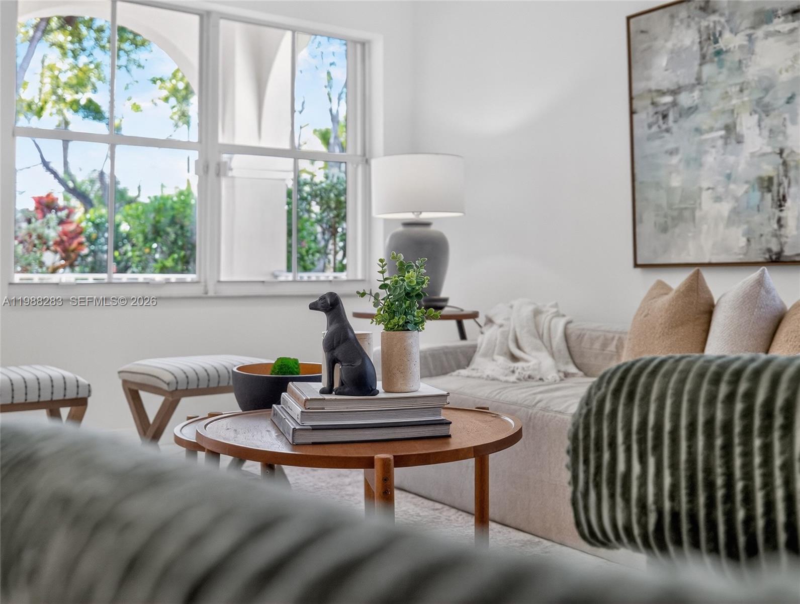 This move-in-ready home feature tile in the main area and laminate in the BRs, recently renovated bathrooms, fresh interior paint, new appliances, and a screened-in patio that provides a comfortable space for outdoor dining and entertaining.