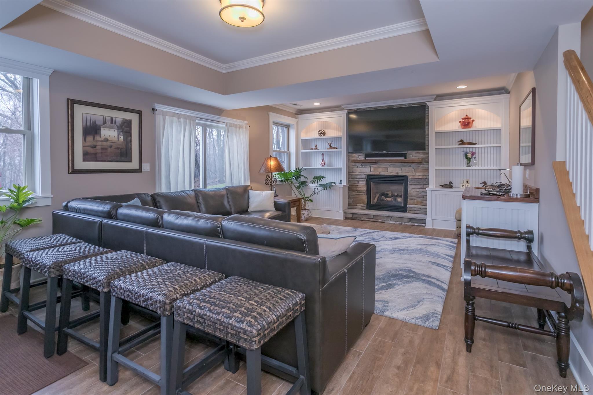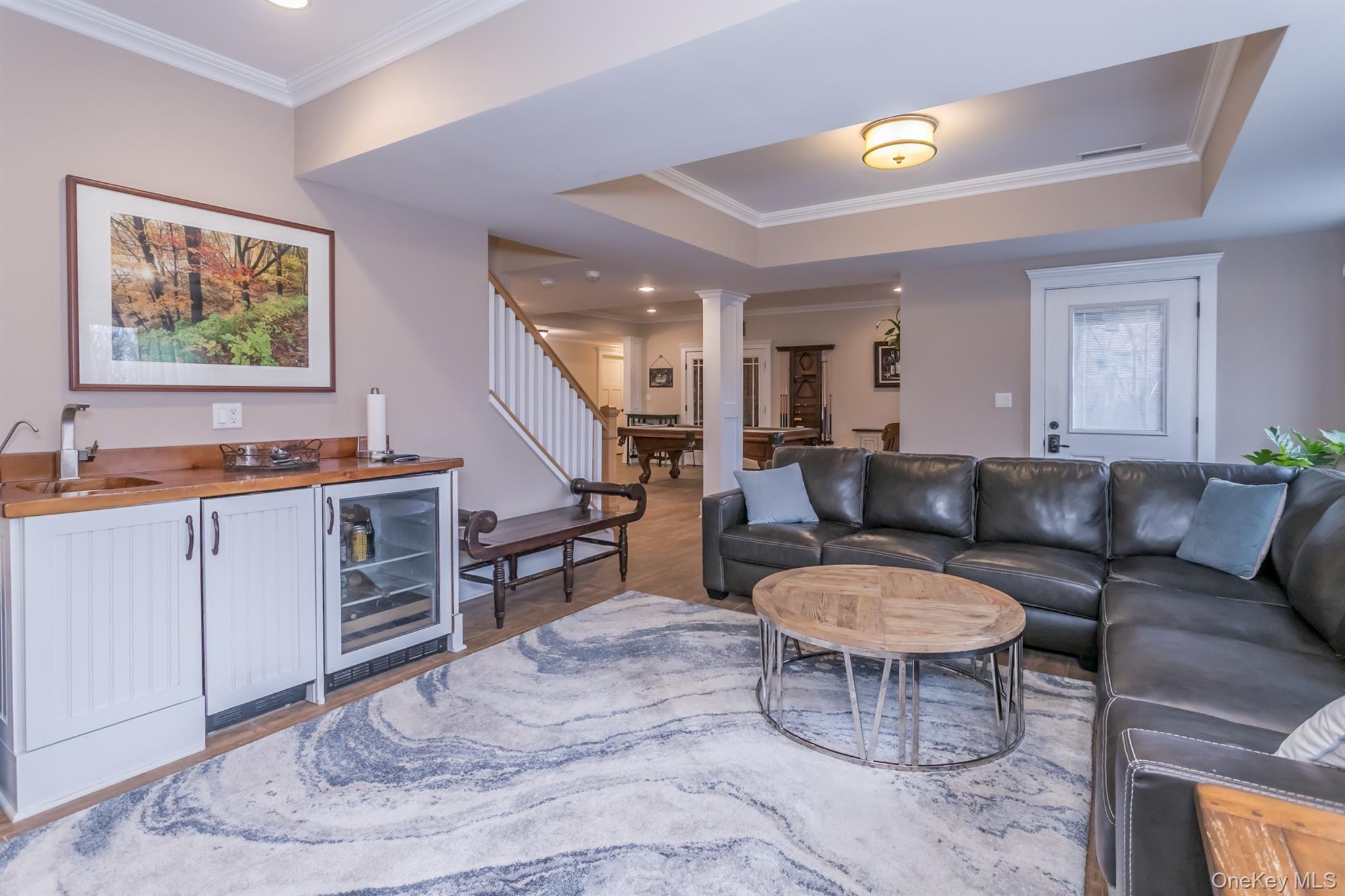 Updated elegance and modern technology merge in this one of a kind home that will fit any lifestyle you wish for. Wide open porch welcomes you into the formal entry with sitting room, open to family room warmed by a gas fireplace, each with custom walnut inlay floors and coffered 10' ceilings. The chef's kitchen is complete and then some with Dacor dual fuel 6 burner range, Viking microwave, stainless steel refrigerator, large island with wine refrigerator, and counter seating. Dining area with built in connects seamlessly to a large covered back deck, perfect for entertaining or enjoying a quiet cup of coffee looking over your property. First floor master suite continues the refined feel large bedroom connects to the spa-like en-suite with two separate vanities, soaking tub and walk in shower. A walk in closet and in-wall safe complete the sanctuary. Opposite wing of the first floor has a bedroom, bright office and full bath, making endless options for in-laws, nanny, or guest wing. On the second level, there is a loft and the third large L shaped bedroom with its own private en-suite. Down the custom hall, with more closets than you can imagine, is the fourth bedroom, flex space, and another full bathroom. The lower level is an entertainers dream. A gas fireplace, built ins, a wet bar and full sized windows fill the family room that has access to the outdoor living room and private oasis. Continue through the french doors to the warm wine cellar. A private large office with separate entrance gives many work from home possibilities. A fifth full bath and half bath finish out this well thought out lower living level. The attention to exquisite detail continues. Cozy up to the firepit, or relax in the freeform heated salt water pool. Thoughtfully placed lighting guides you through your oasis. The energy upgrades and technology additions are too many to list and will be in a separate document in the listing.