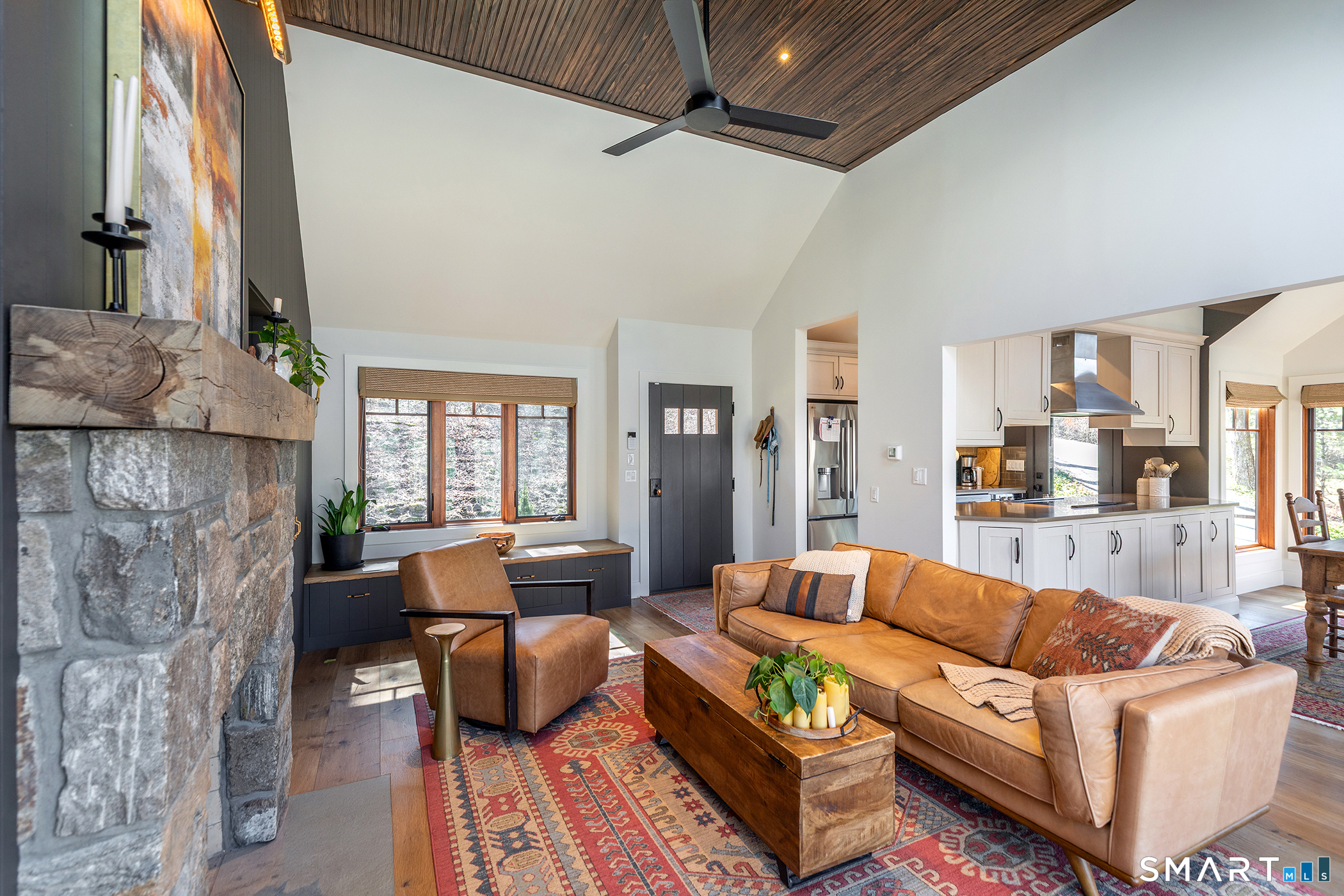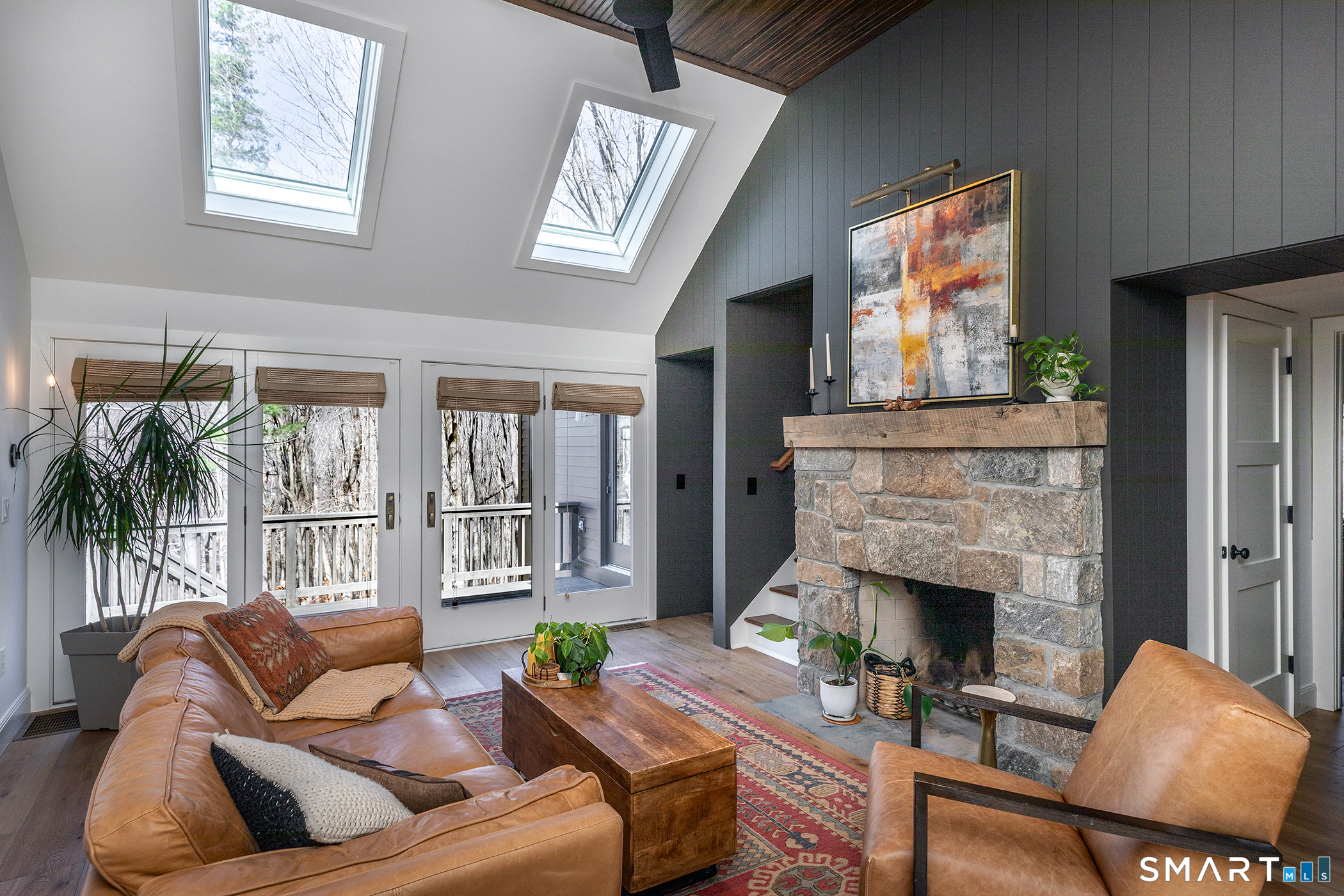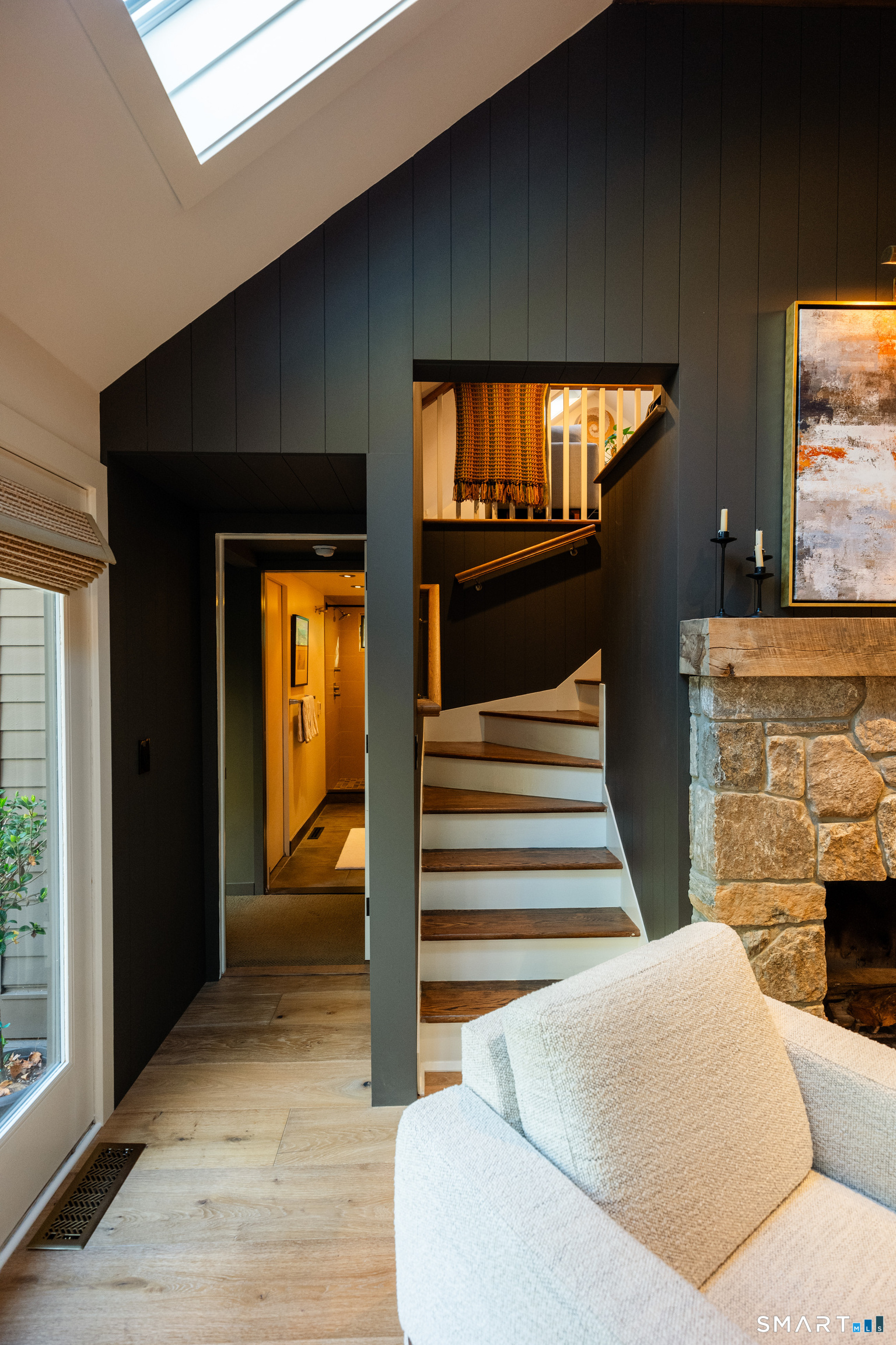 Welcome to this impeccably remodeled, three-bedroom, three-bath turn-key home, boasting architectural spaces, trendy colors and sophisticated finishes. Custom millwork and wide plank hardwood floors add tons of style throughout. Designed with a flexible layout and generous entertaining spaces featuring walls of windows, vaulted ceilings and a wood burning stone fireplace in the living room. The kitchen is a chef's dream, with high end appliances and opens directly to the dining area. A bonus loft space is 'cute perfection' and could easily be used for guests / home office / den / arts & crafts. Each of the 3 bathrooms have been thoughtfully and meticulously presented with gorgeous, stylish tiling. The 3 bedrooms have generous closets, naturally. A huge deck is perfect for al fresco dining overlooking a serene, nature-filled yard filled with landscaped plantings. The garage is connected to the basement with ample storage. Nestled close to the tranquil Timber Trails and offering access to Sherman's town beach on Candlewood Lake, this home is a perfect escape. Sherman's quaint town center is nearby with shops, sports fields, tennis courts etc. Commuting is a breeze with easy access to Rte 37 placing you just 90 minutes from Manhattan or 20 mins to Metro North Trains. This is a MUST SEE property! Important note for buyers: The existing septic system has been approved by the health department for three bedrooms and three baths.