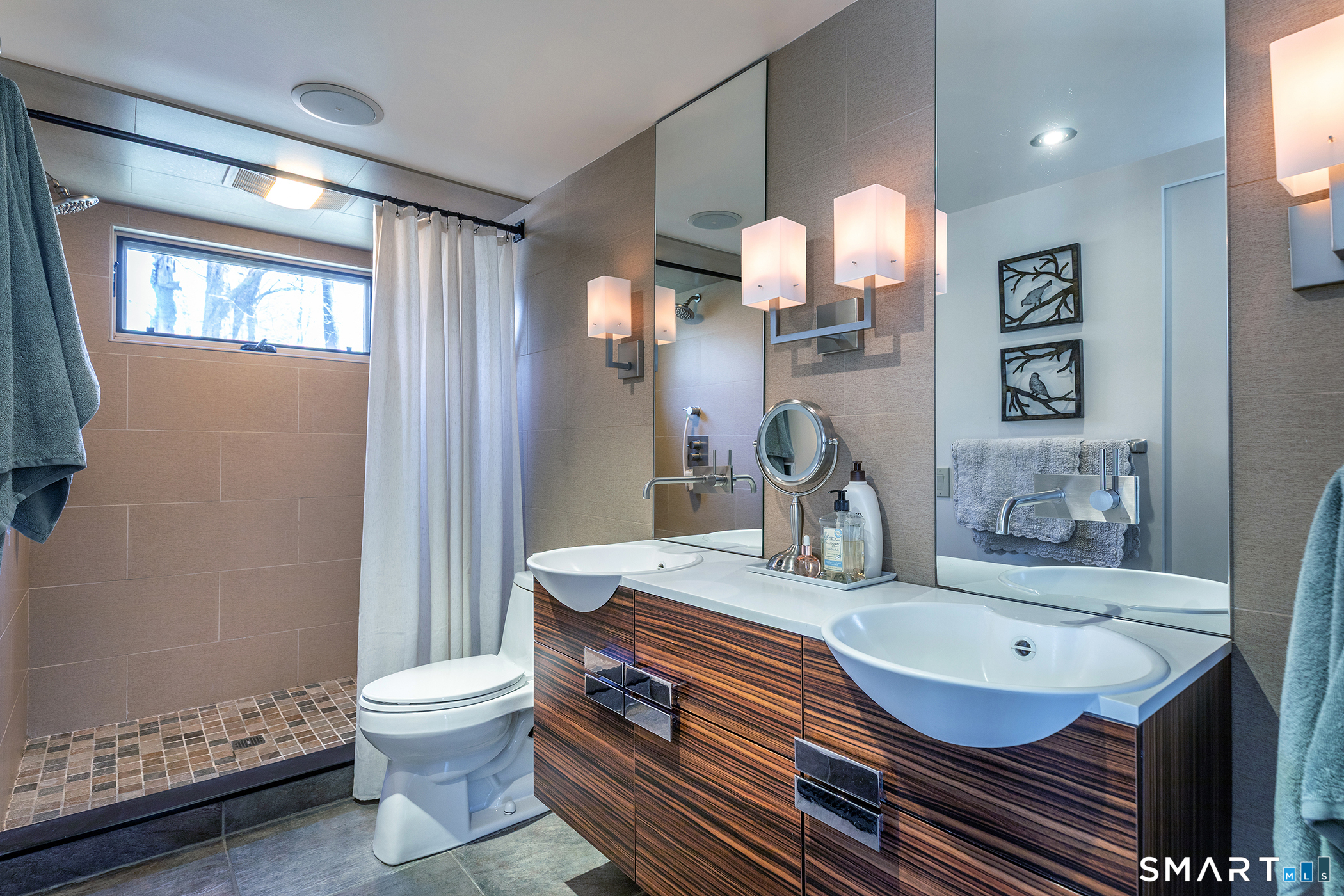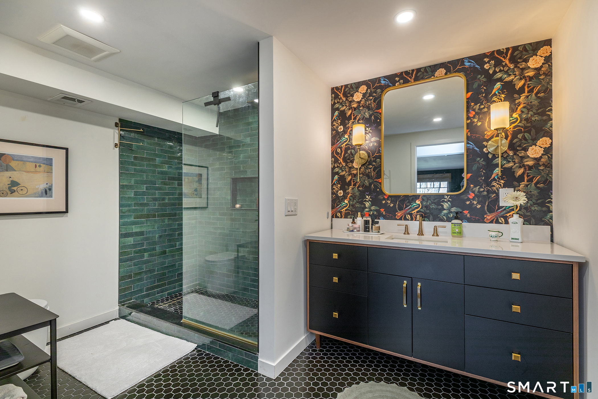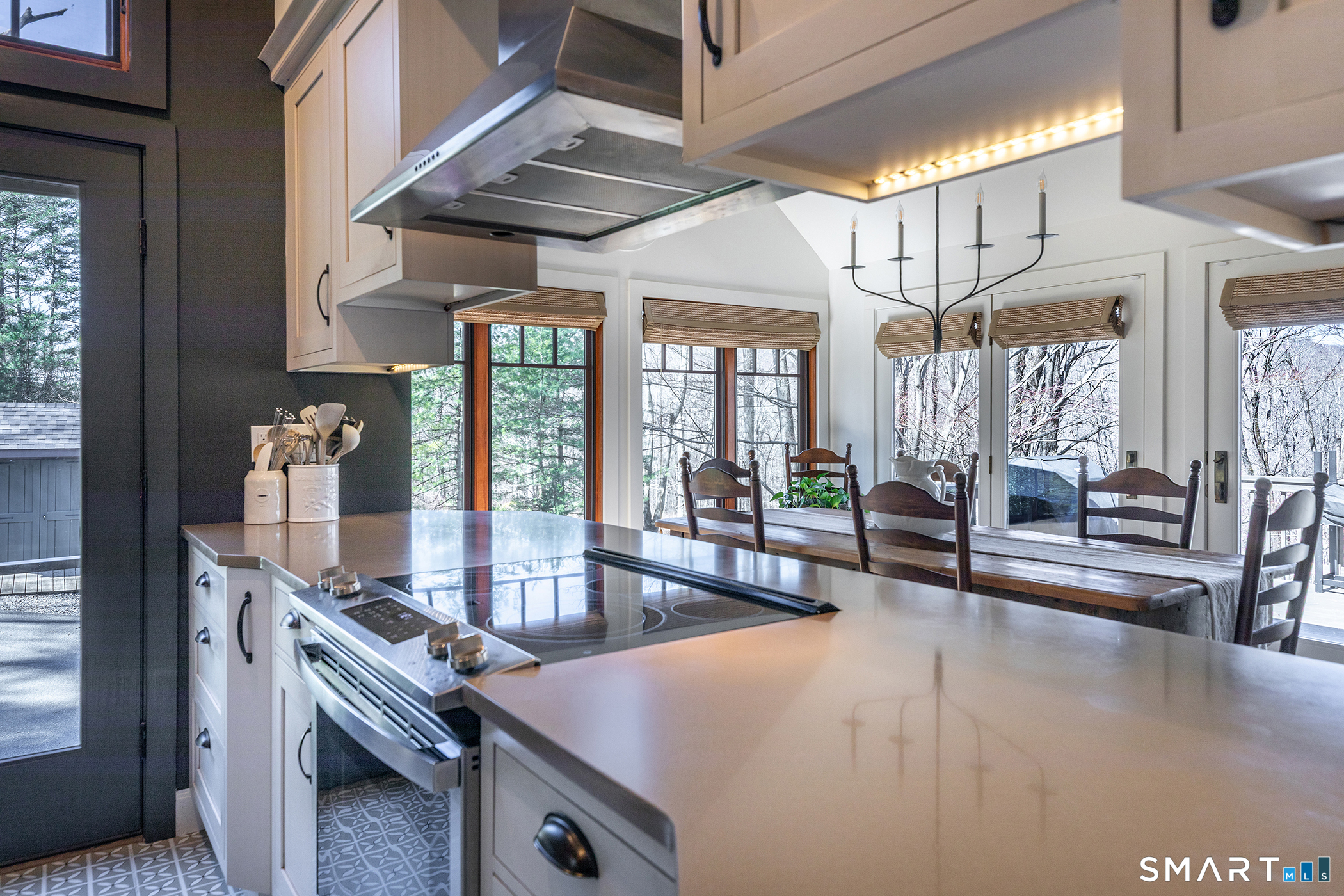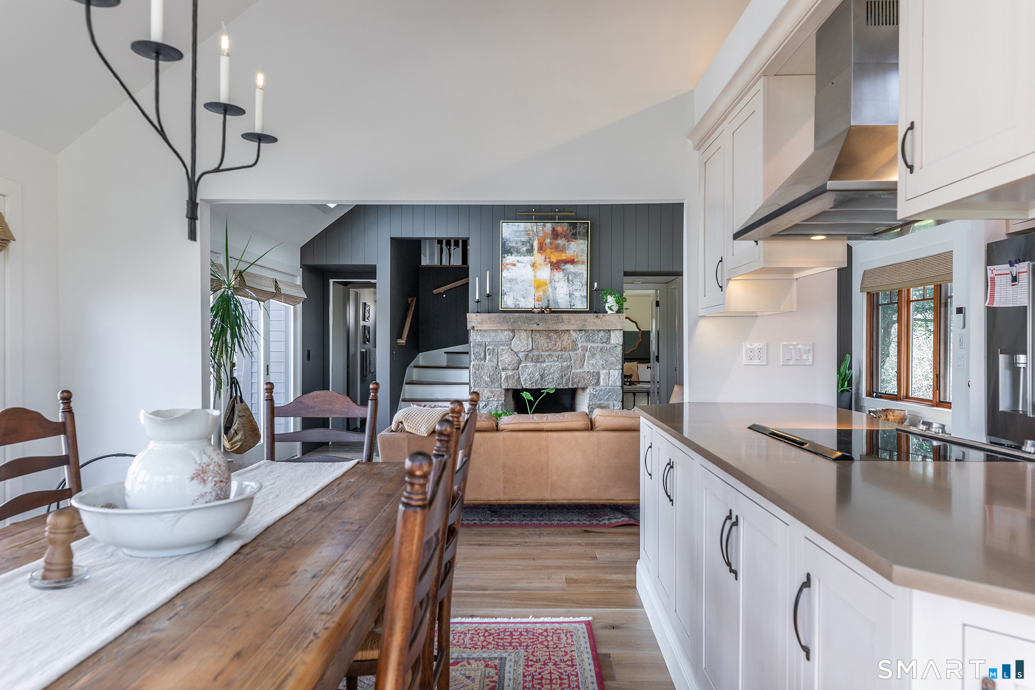 Welcome to this impeccably remodeled, three-bedroom, three-bath turn-key home, boasting architectural spaces, trendy colors and sophisticated finishes. Custom millwork and wide plank hardwood floors add tons of style throughout. Designed with a flexible layout and generous entertaining spaces featuring walls of windows, vaulted ceilings and a wood burning stone fireplace in the living room. The kitchen is a chef's dream, with high end appliances and opens directly to the dining area. A bonus loft space is 'cute perfection' and could easily be used for guests / home office / den / arts & crafts. Each of the 3 bathrooms have been thoughtfully and meticulously presented with gorgeous, stylish tiling. The 3 bedrooms have generous closets, naturally. A huge deck is perfect for al fresco dining overlooking a serene, nature-filled yard filled with landscaped plantings. The garage is connected to the basement with ample storage. Nestled close to the tranquil Timber Trails and offering access to Sherman's town beach on Candlewood Lake, this home is a perfect escape. Sherman's quaint town center is nearby with shops, sports fields, tennis courts etc. Commuting is a breeze with easy access to Rte 37 placing you just 90 minutes from Manhattan or 20 mins to Metro North Trains. This is a MUST SEE property! Important note for buyers: The existing septic system has been approved by the health department for three bedrooms and three baths.