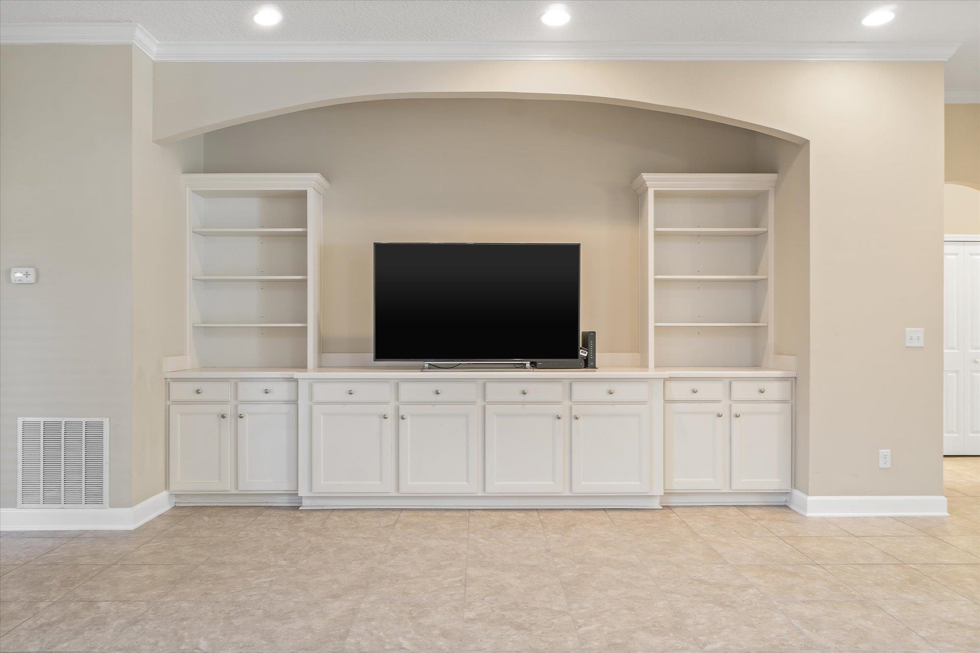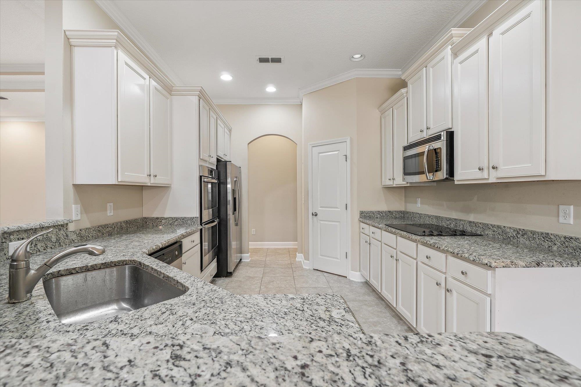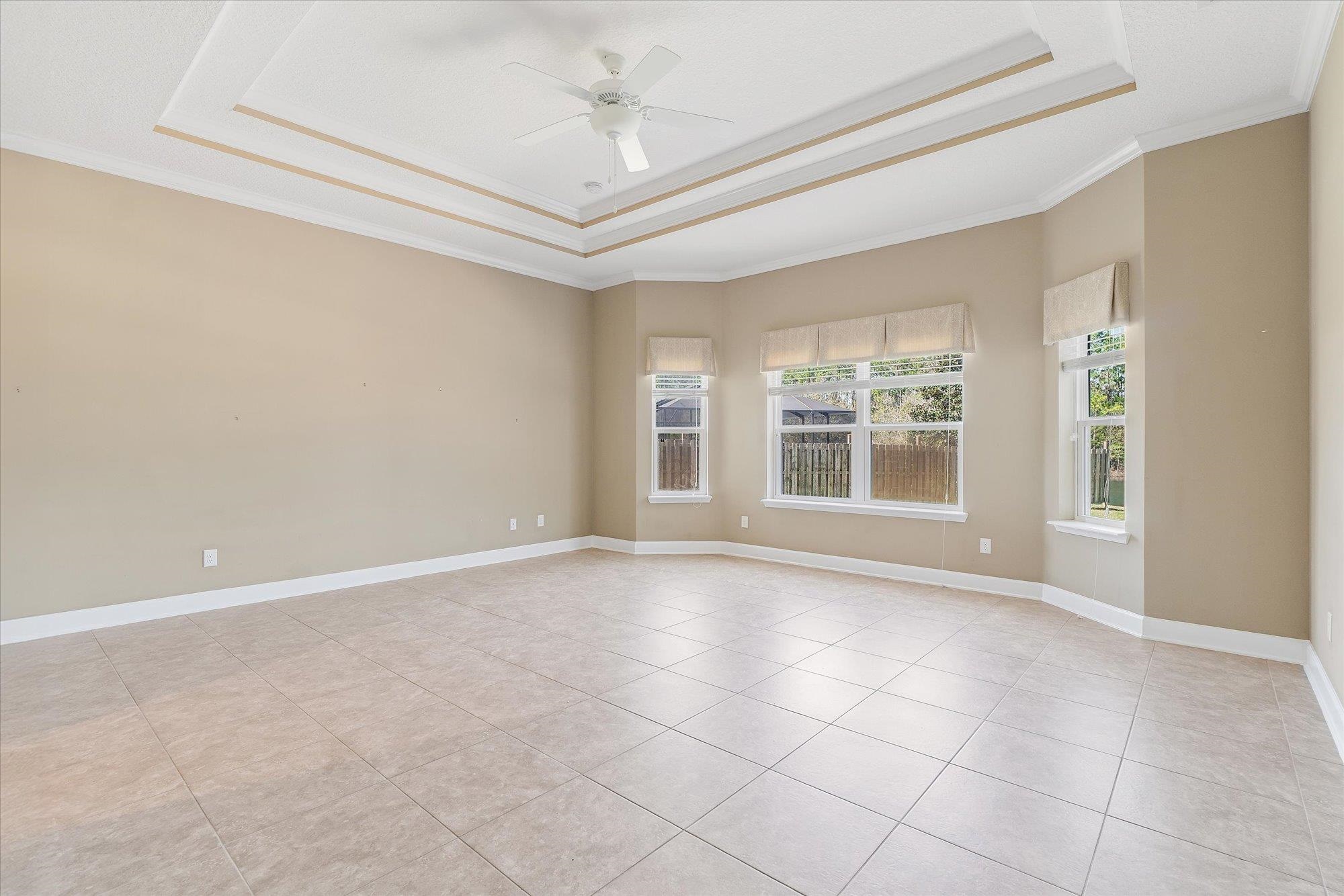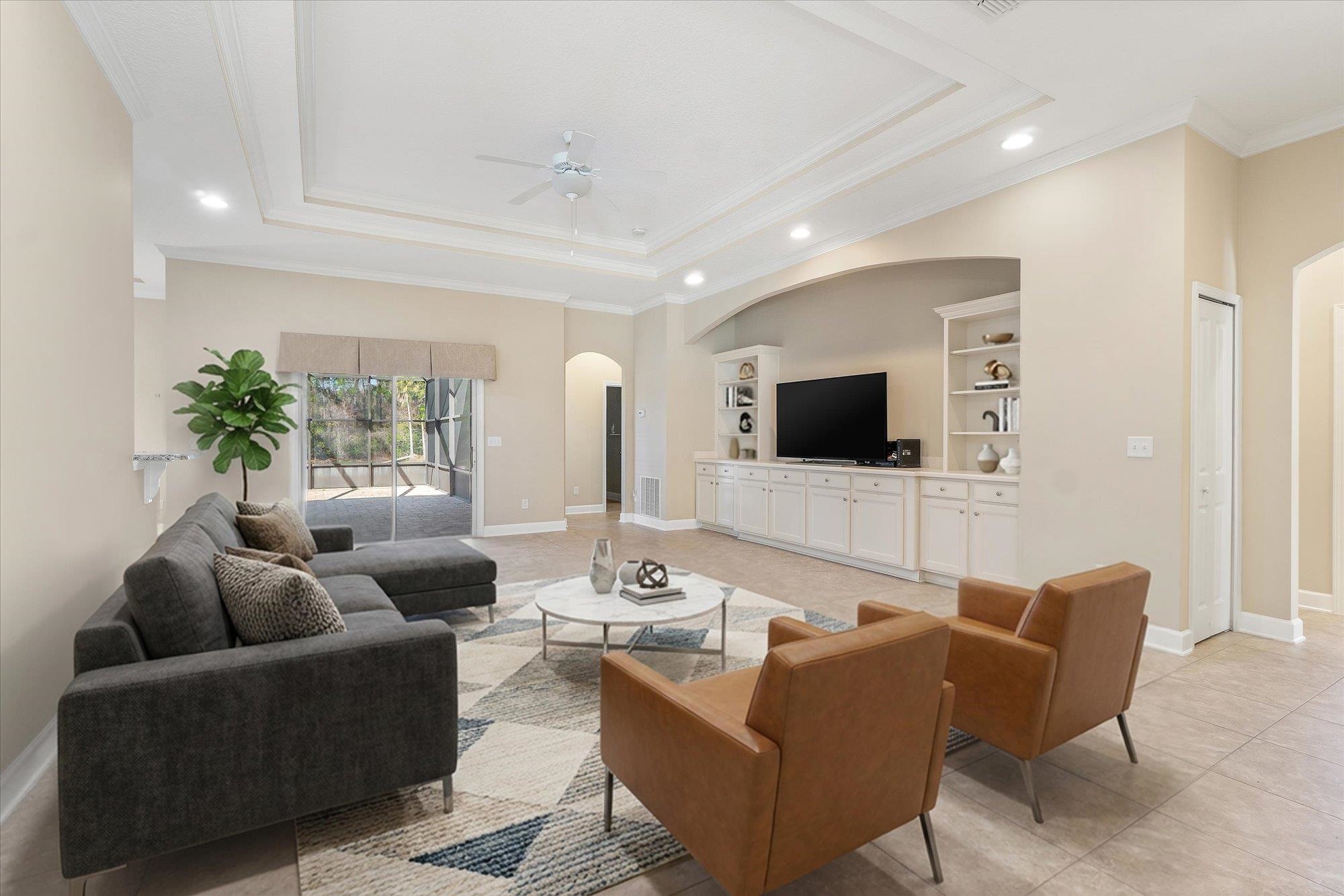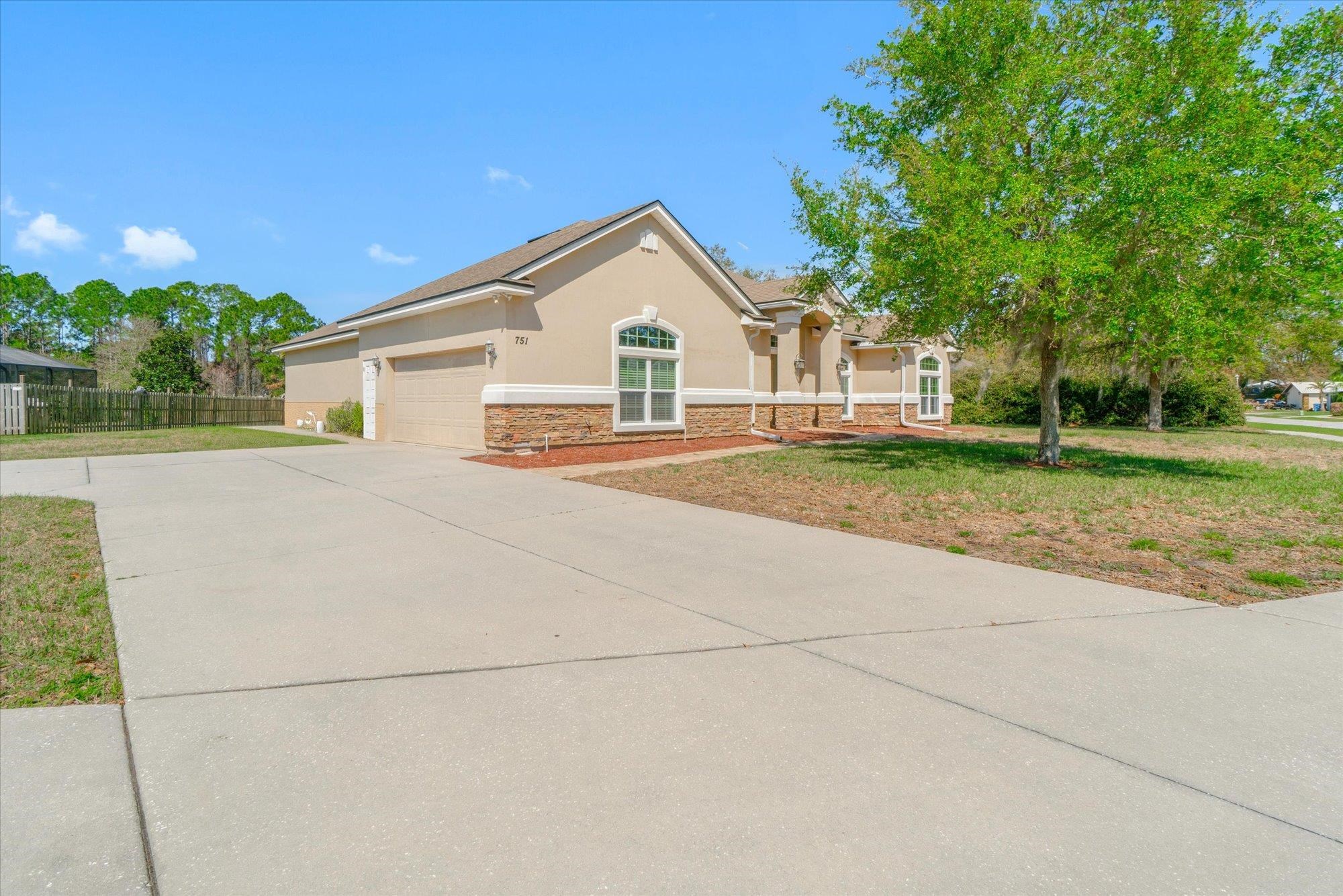 Welcome to 751 Viscaya Blvd, a refined residence in St. Augustine offering expansive living and tranquil pondfront views. Encompassing 2, 693 square feet, this 4-bedroom, 3-bathroom home is thoughtfully designed to blend open, light-filled living spaces with private retreats for everyday comfort. The main living areas feature tile flooring and flow effortlessly, creating an inviting environment ideal for both relaxed living and entertaining. At the heart of the home, the kitchen is beautifully appointed with white cabinetry, granite countertops, bar-top seating, stainless steel appliances, and in-wall double ovens—overlooking the living and dining spaces while maintaining a bright, connected feel. The living room is enhanced by custom built-ins with cabinet storage and a dedicated inset for an entertainment system, adding both function and style. Generously proportioned bedrooms offer versatility for guests, a home office, or additional living space, while the primary suite provides a peaceful retreat designed for rest and relaxation. Outdoors, a screened and covered lanai with paver flooring extends the living experience, complemented by a separate paver patio overlooking the pond. A conveniently located third full bath provides direct access to the lanai, creating an ideal setup for indoor-outdoor living and entertaining. Whether enjoying quiet mornings or hosting evening gatherings, this setting offers a sense of calm and connection to the surrounding landscape. With its spacious design, thoughtful upgrades, and serene water views, this residence presents an exceptional opportunity to enjoy refined comfort in a convenient St. Augustine location.
